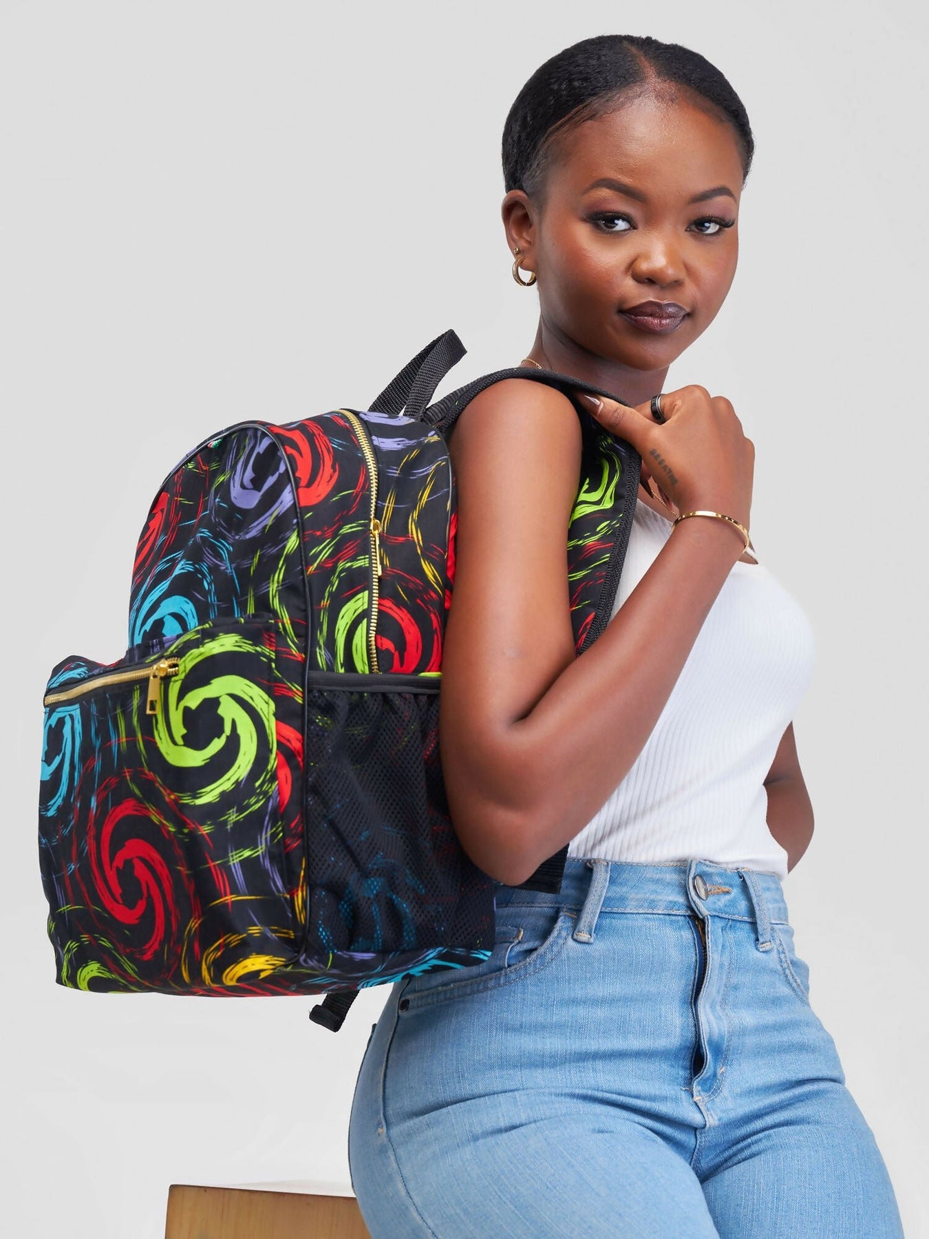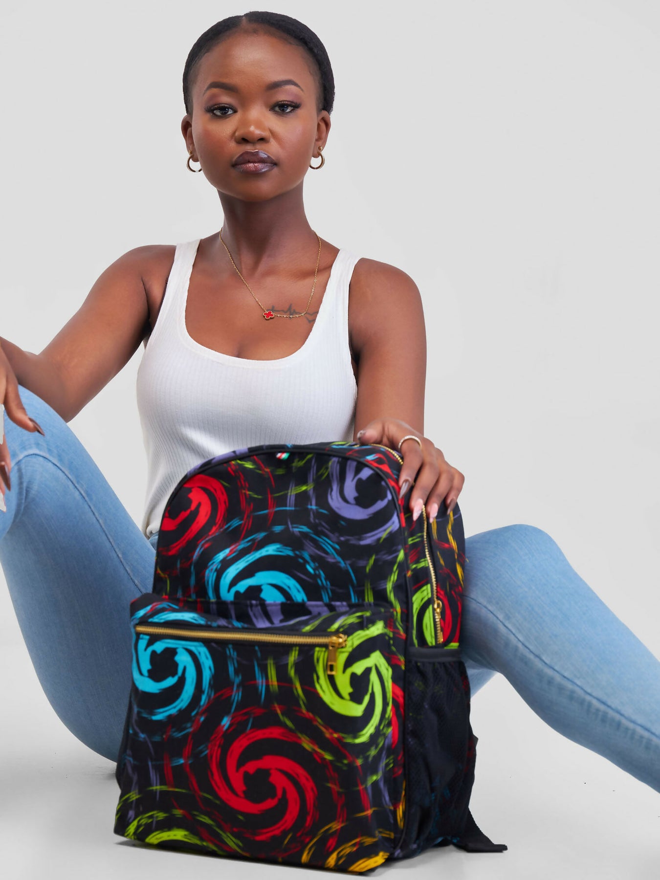 Meet Original Thandi backpack, a vibrant fusion of style and functionality. Crafted with this colorful Ankara print, this backpack measures Height – 14”, Length – 11”, Width – 5”, offering ample space for your essentials. Features include;