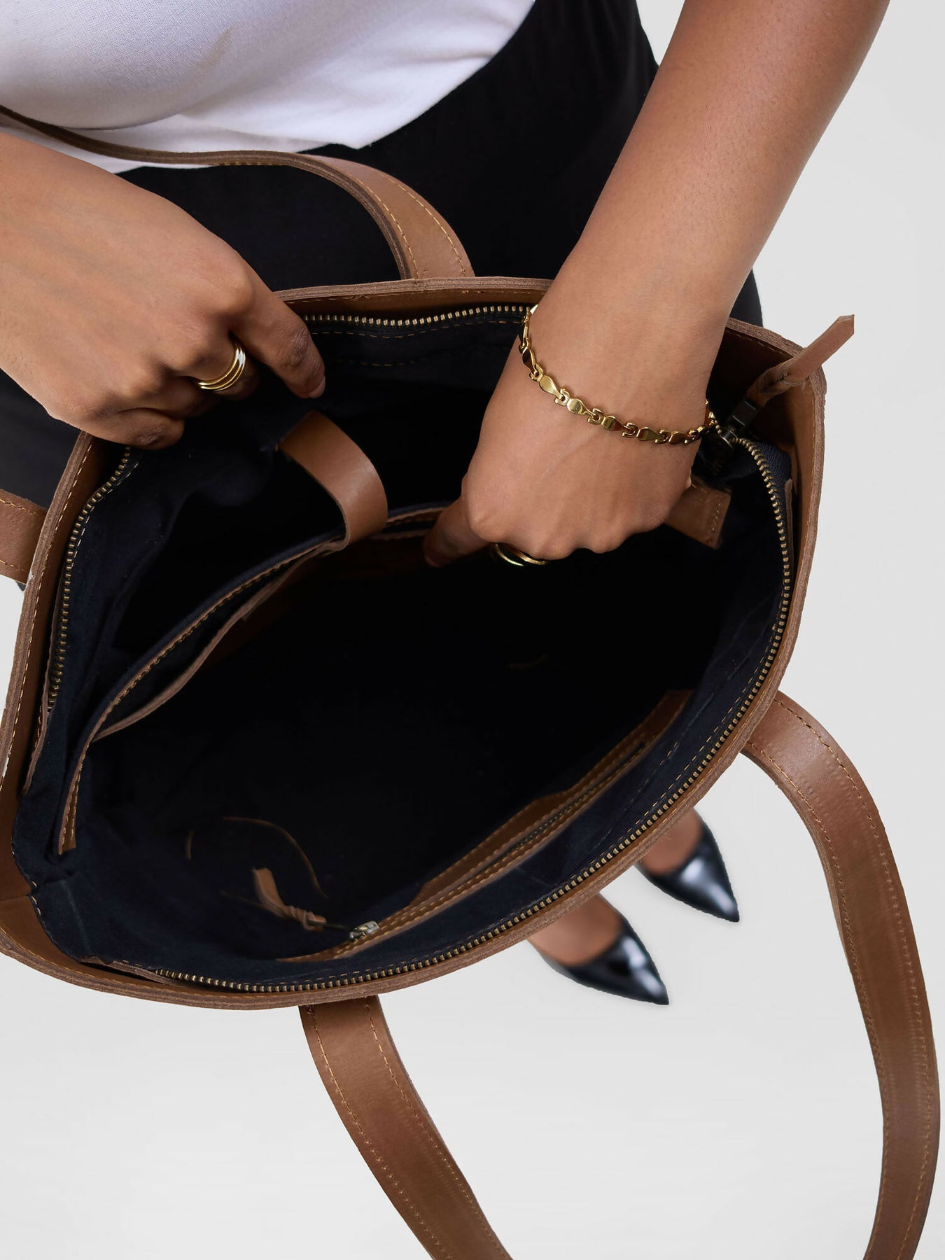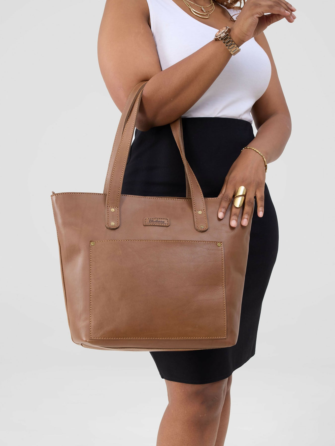 Blueberry Leather Tote Bag - Brown - Shopzetu