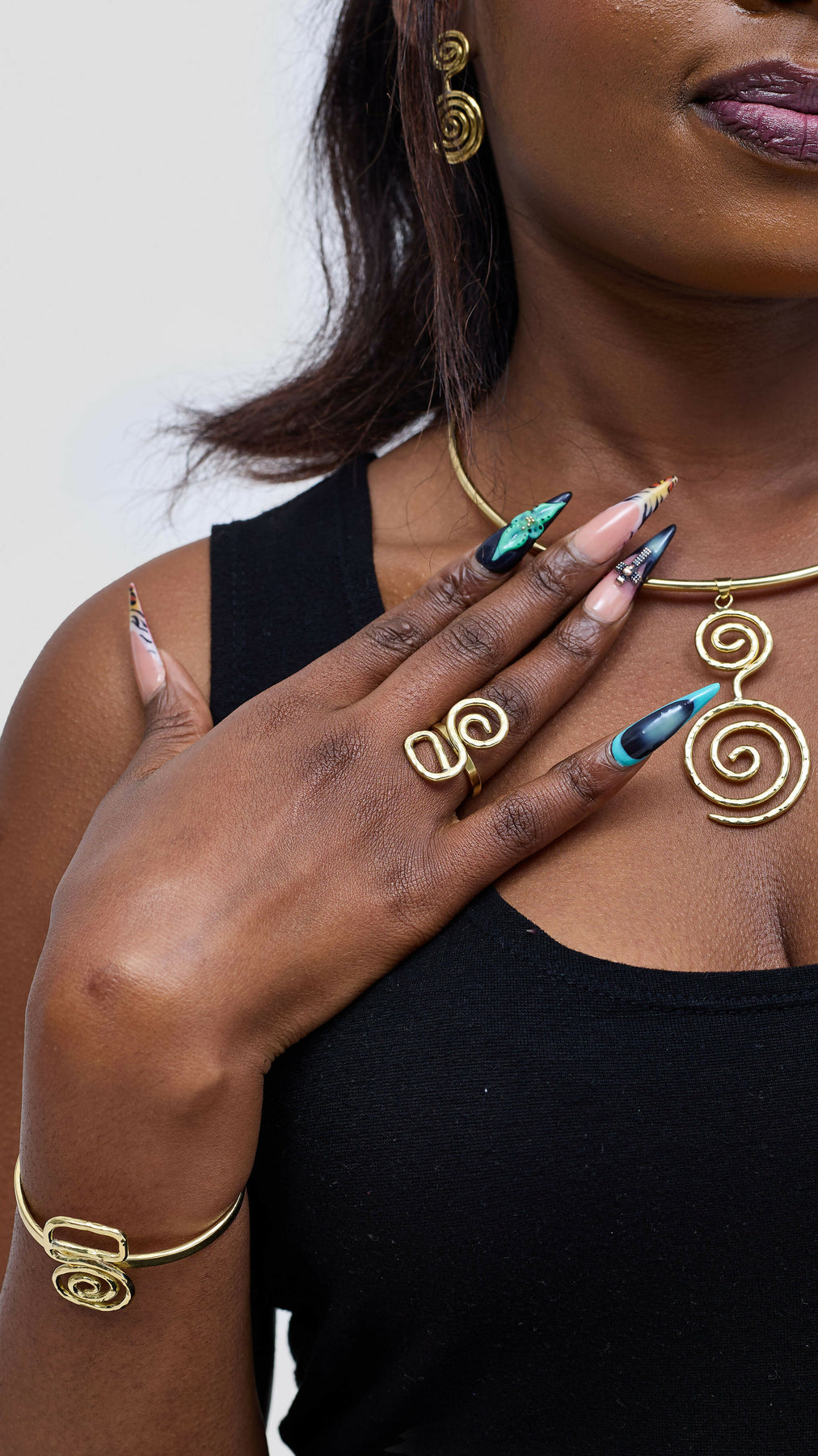 Featuring the iconic African map, this set is a tribute to heritage and pride. It’s a symbol of belonging, culture, and unity. The set comes with choker, ring, bracelet and Earrings. Each piece is a celebration of both artistry and environmental responsibility turning old brass into stunning designs that embody the spirit of renewal. Join us in making conscious choices that shine brightly for both you and the Earth.