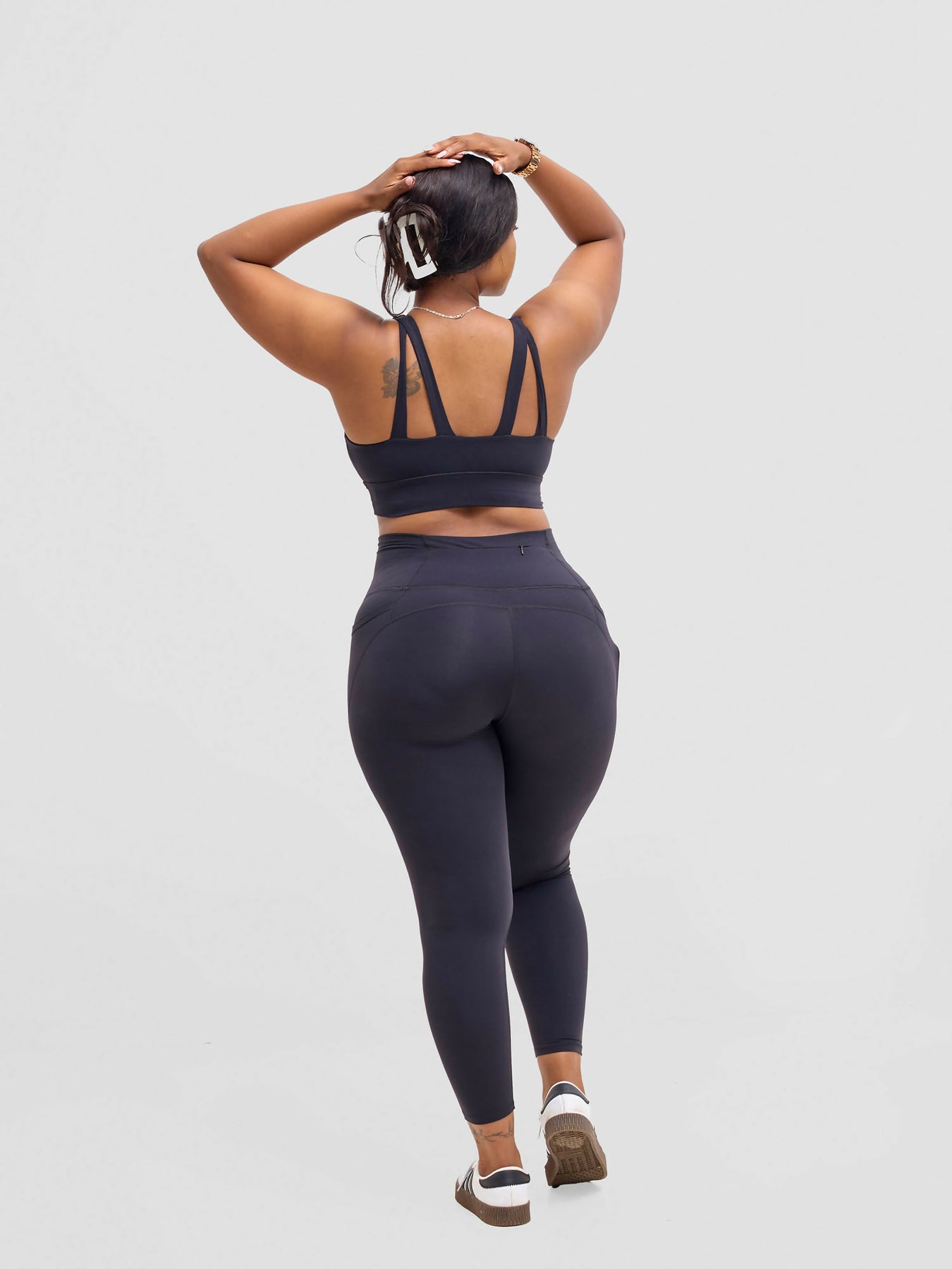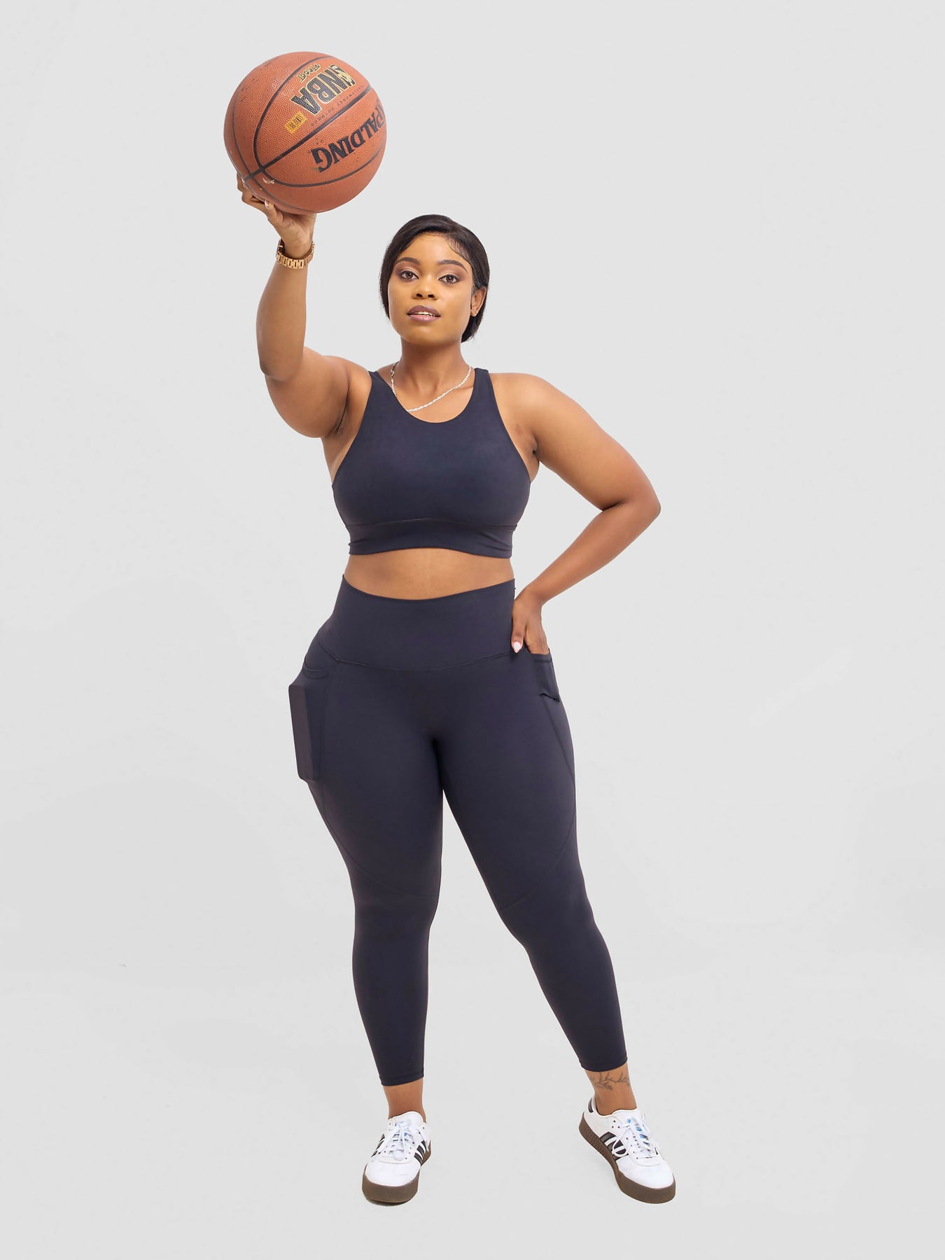 Flen Store With Pockets Leggings & Sports Bra Set - Black