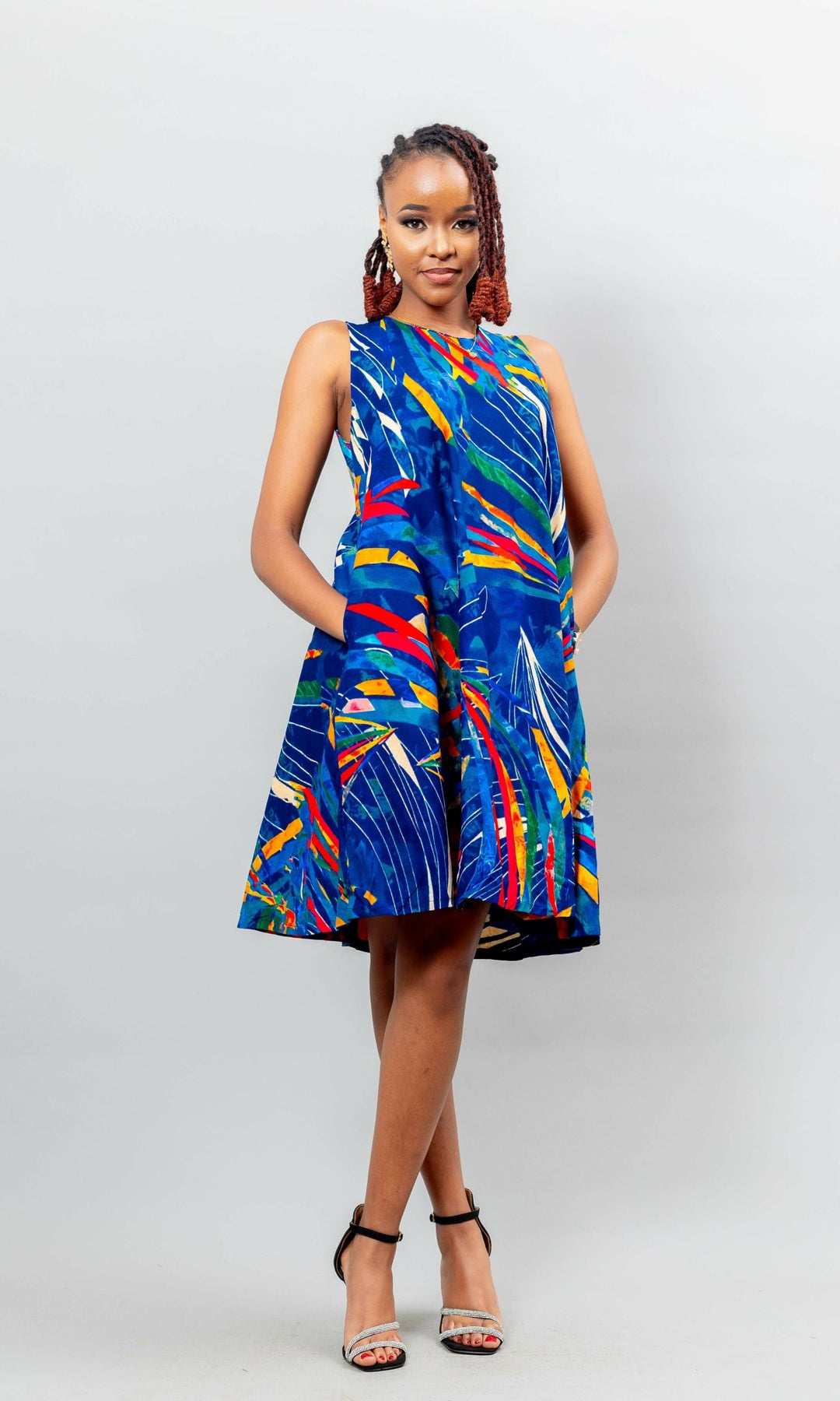 Afriwia Hazel Mini Dress - Ankara Print - Shopzetu