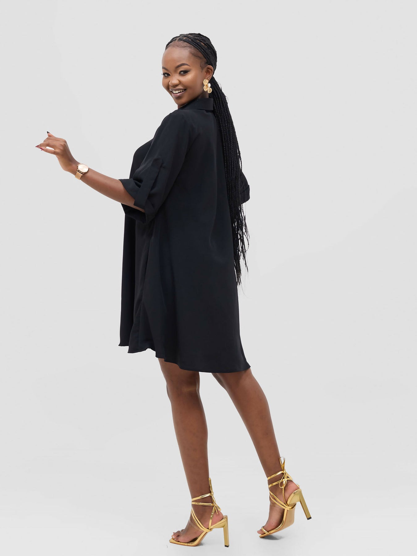 Elevate your basics wardrobe with this versatile black shift dress, designed to blend timeless style with effortless functionality. Perfect for any occasion, this dress is your go-to choice for chic, comfortable fashion.
