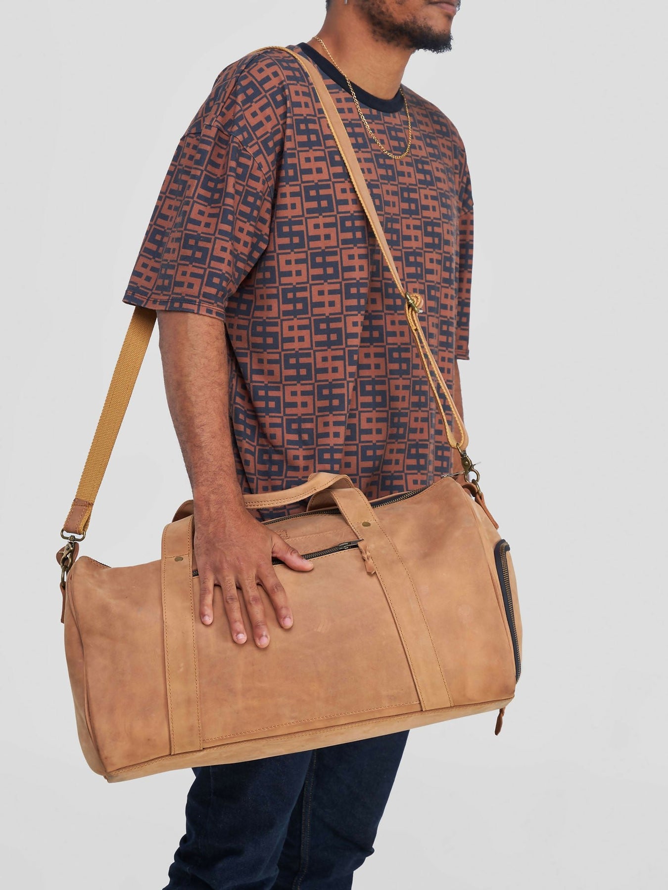Blueberry Leather Duffle Bag - Brown - Shopzetu
