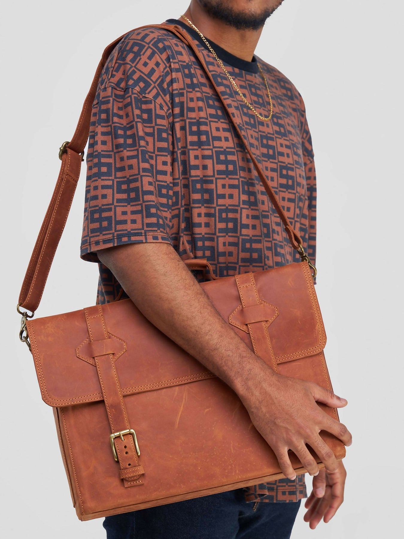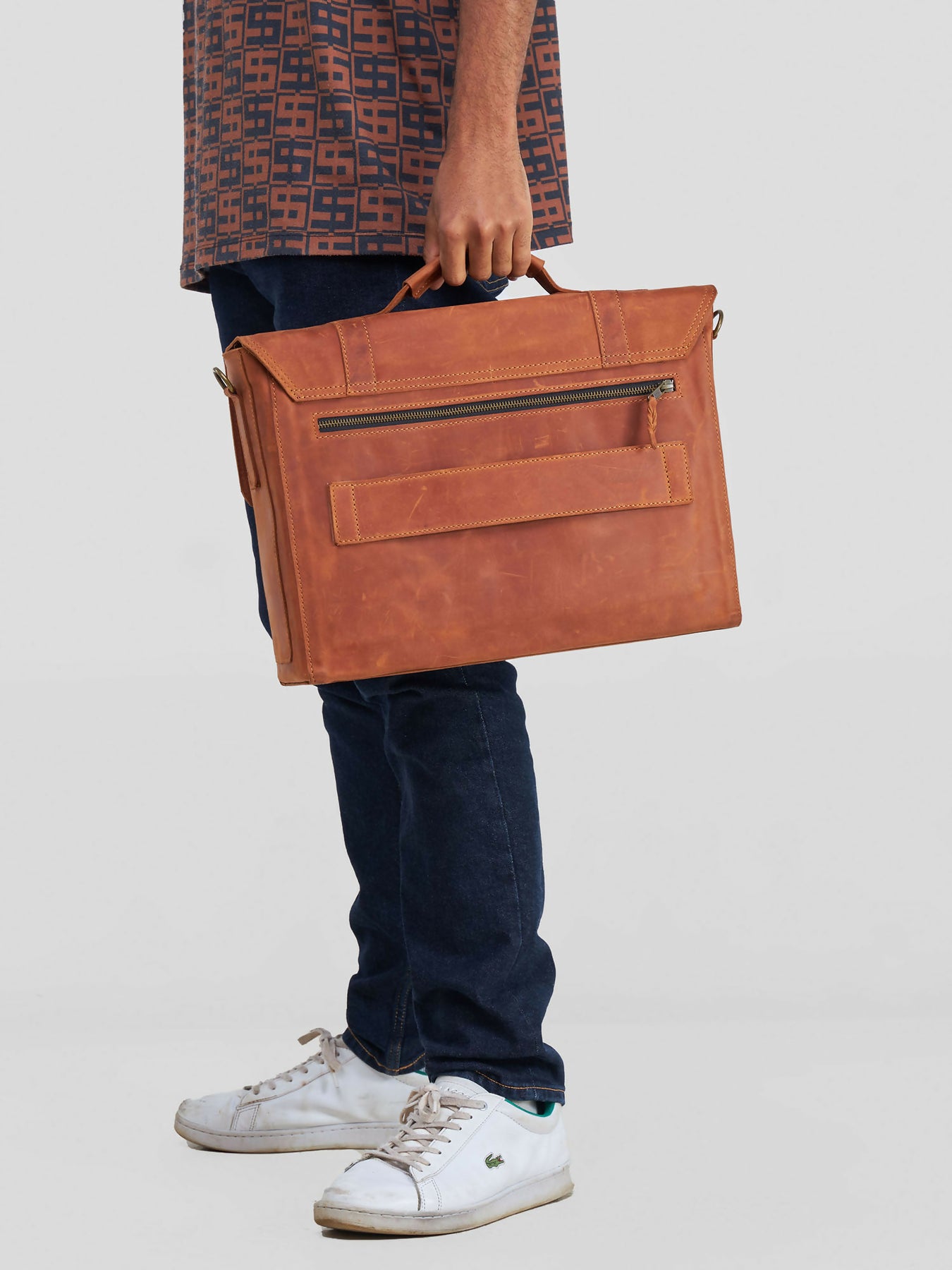 Blueberry Leather Executive Bag - Tan - Shopzetu