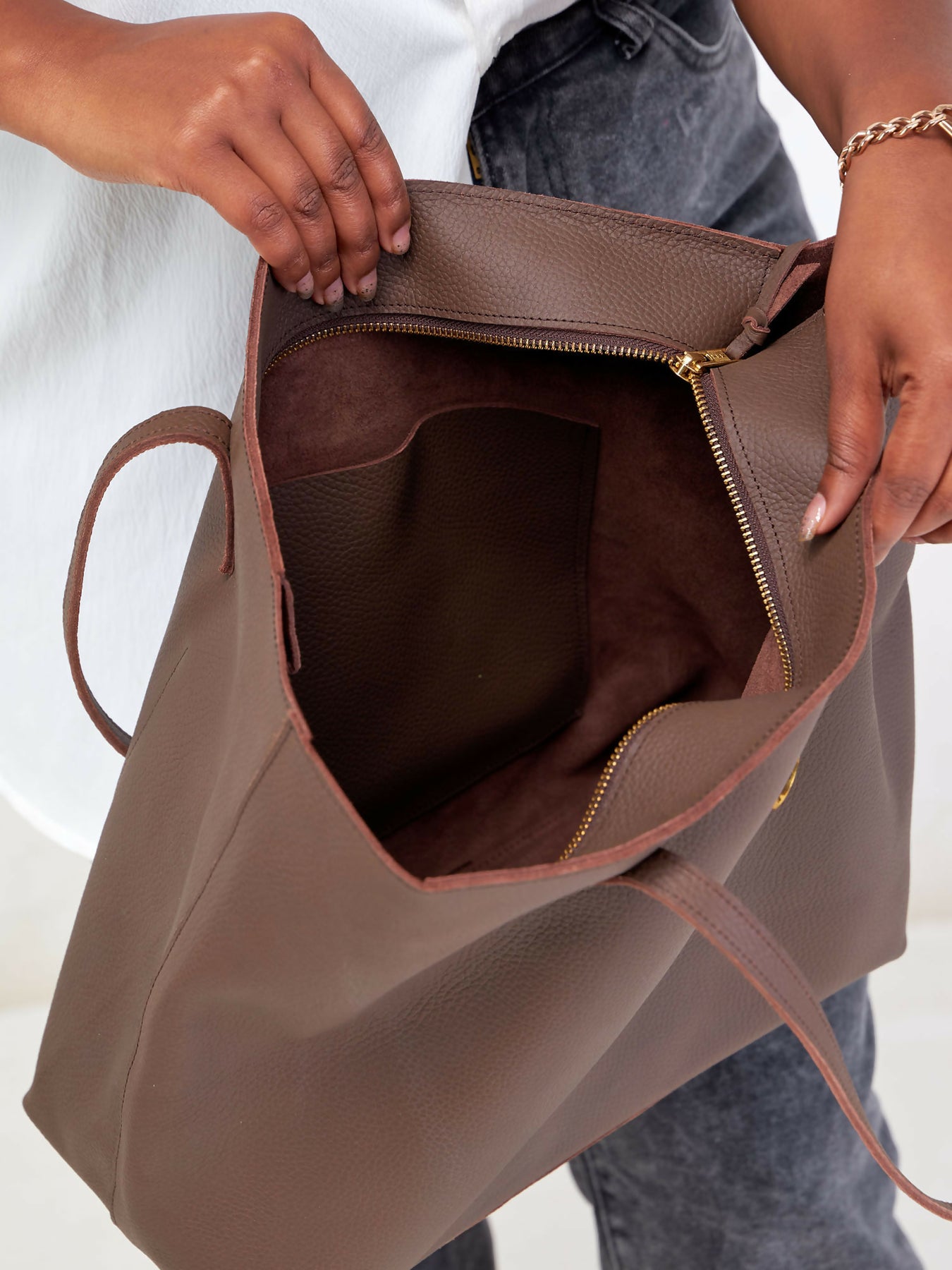 This stylish and functional Marula tote bag is perfect for carrying all your essentials with ease and elegance.