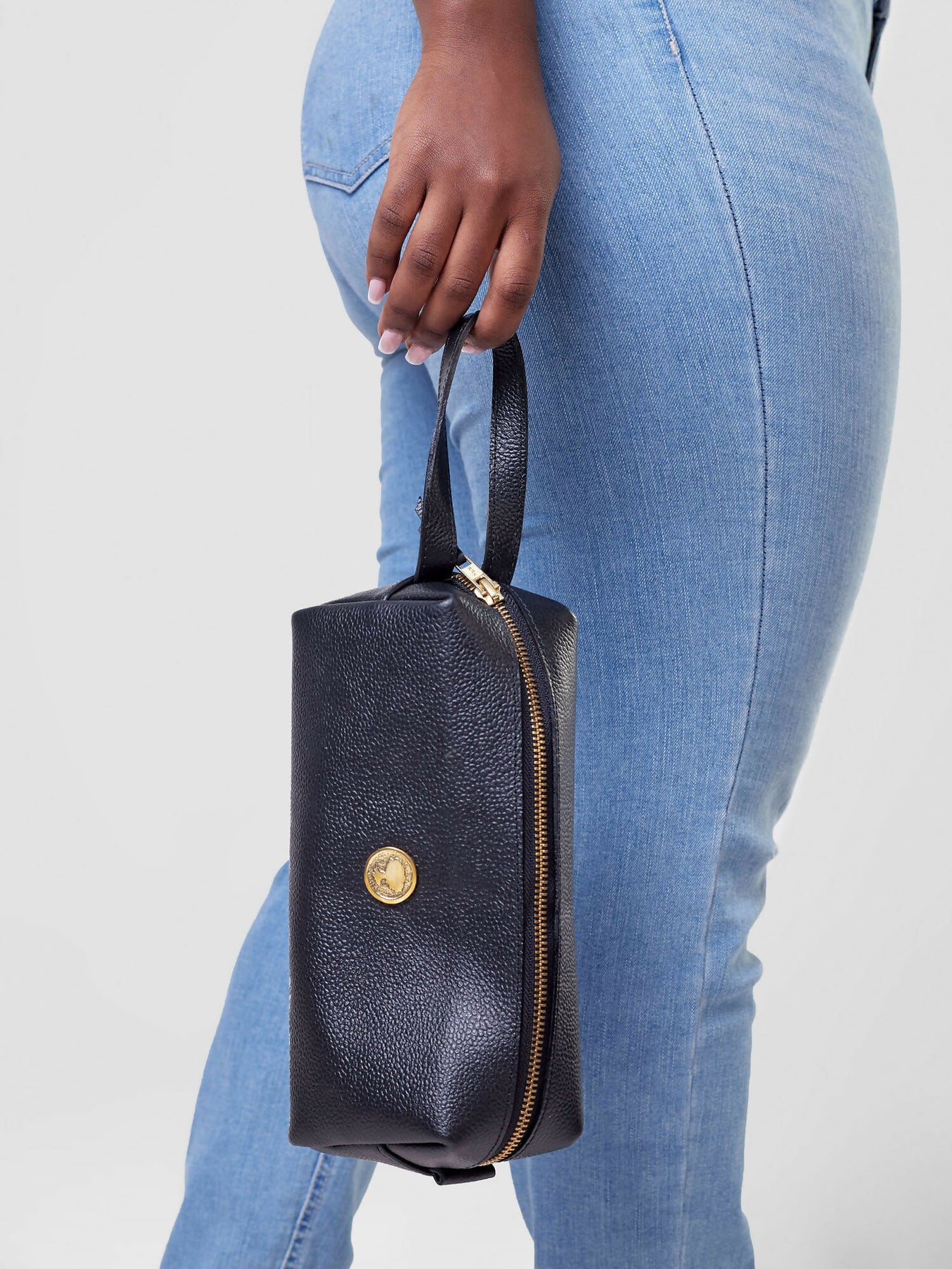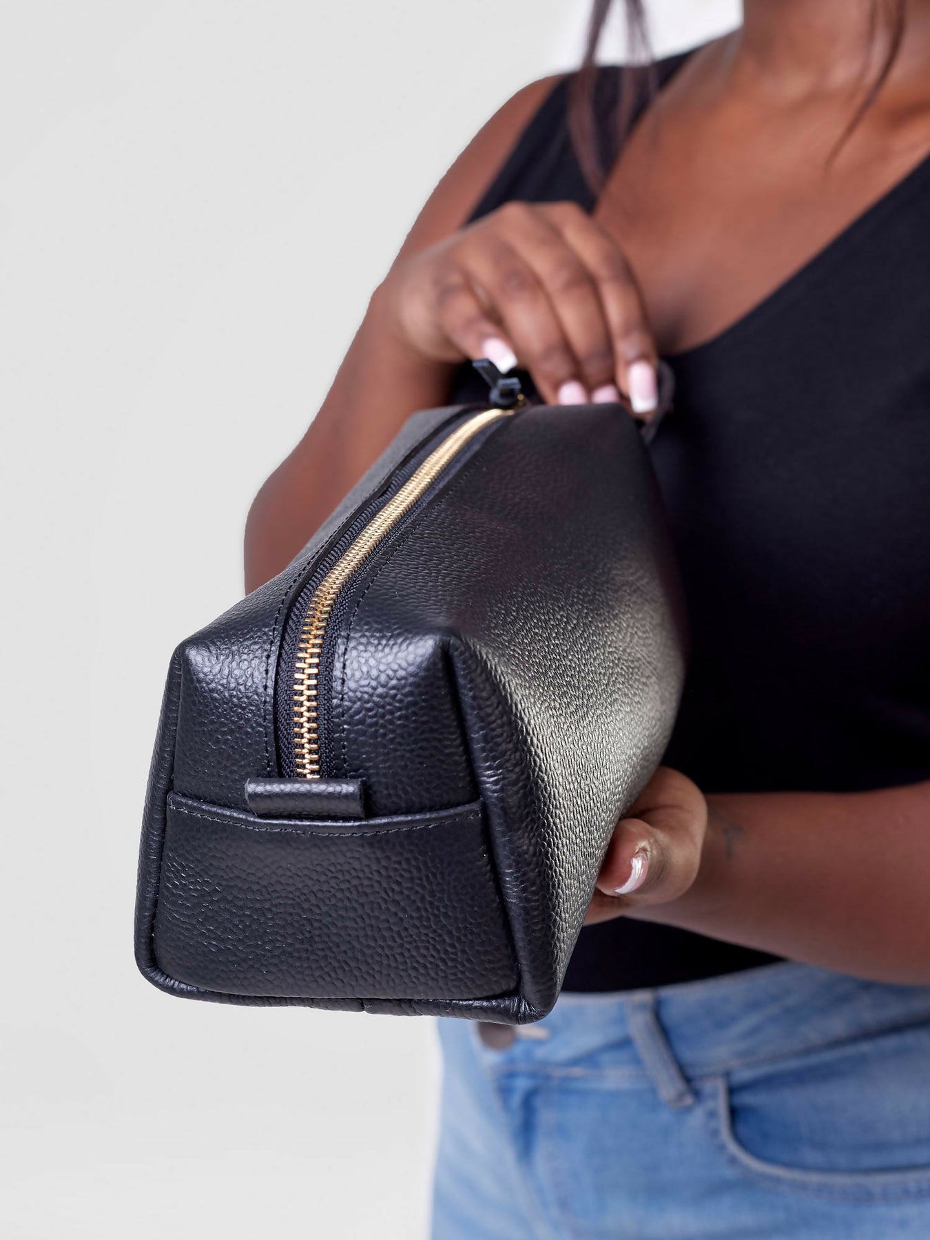 Perfect for the discerning traveler, this toiletry bag combines luxury and practicality in one sleek package.
