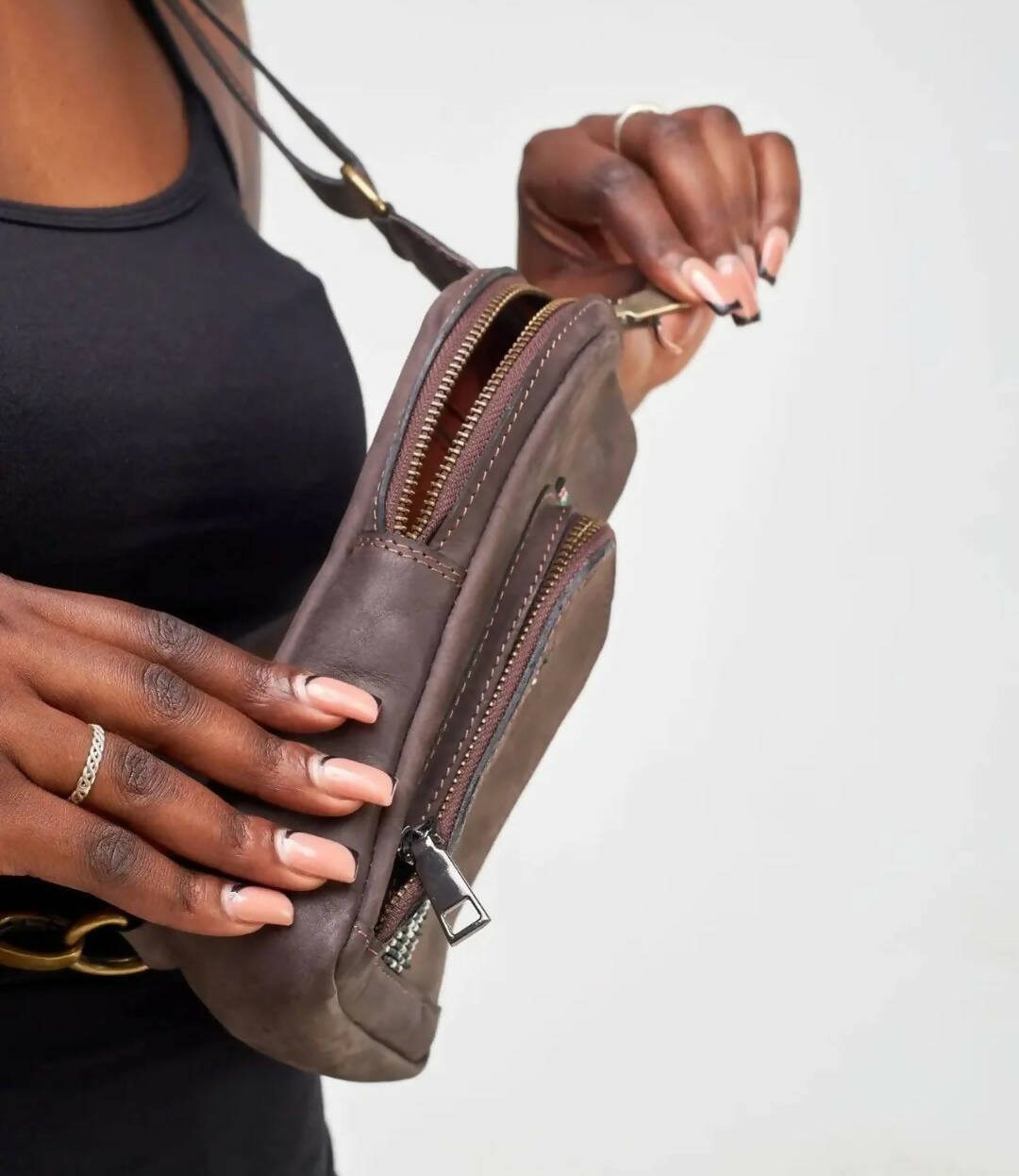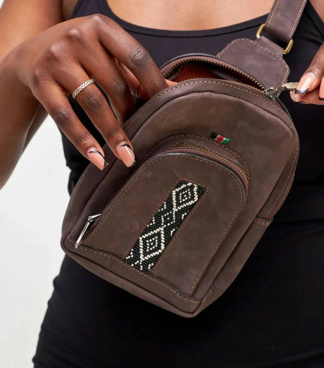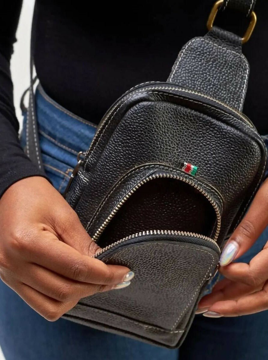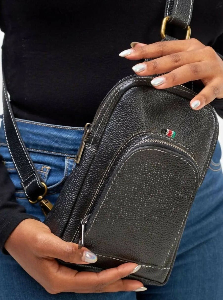 Mubi Leather Mtindo Crossbody Bag - Black - Shopzetu