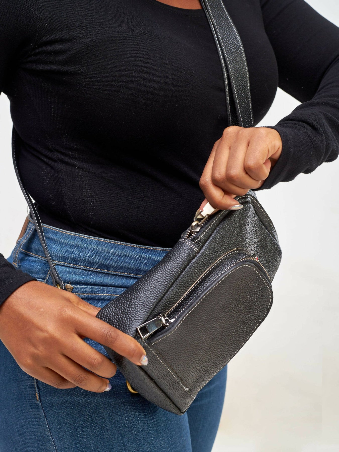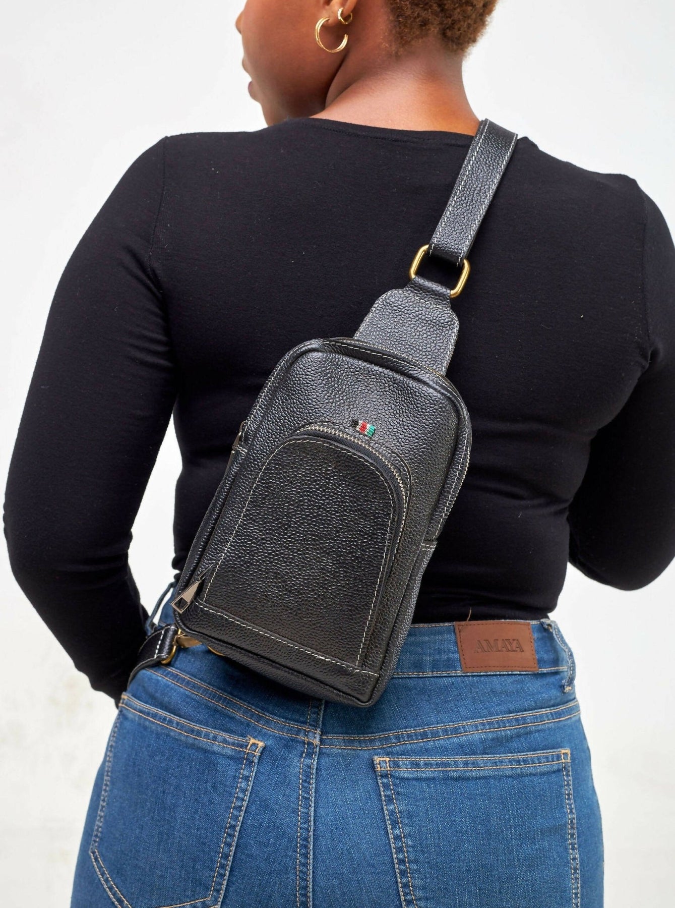 Mubi Leather Mtindo Crossbody Bag - Black