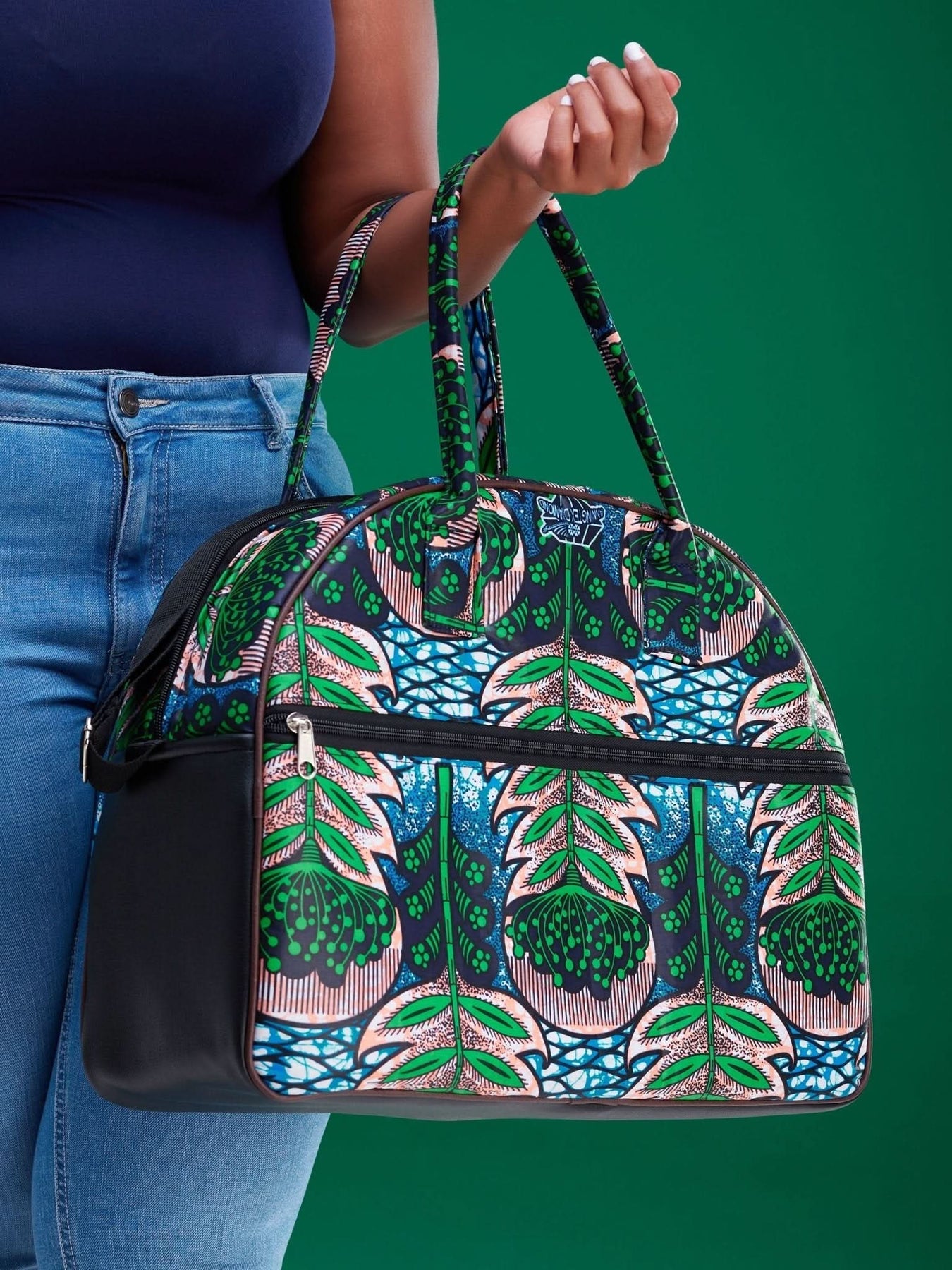 Vintara Duffel Bag - Green / Light Blue Print - Shopzetu