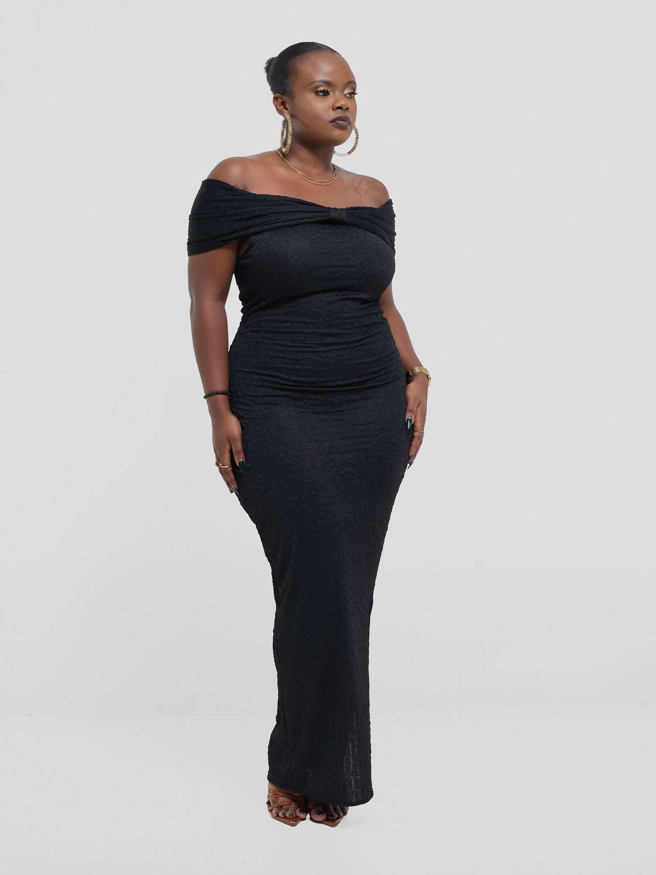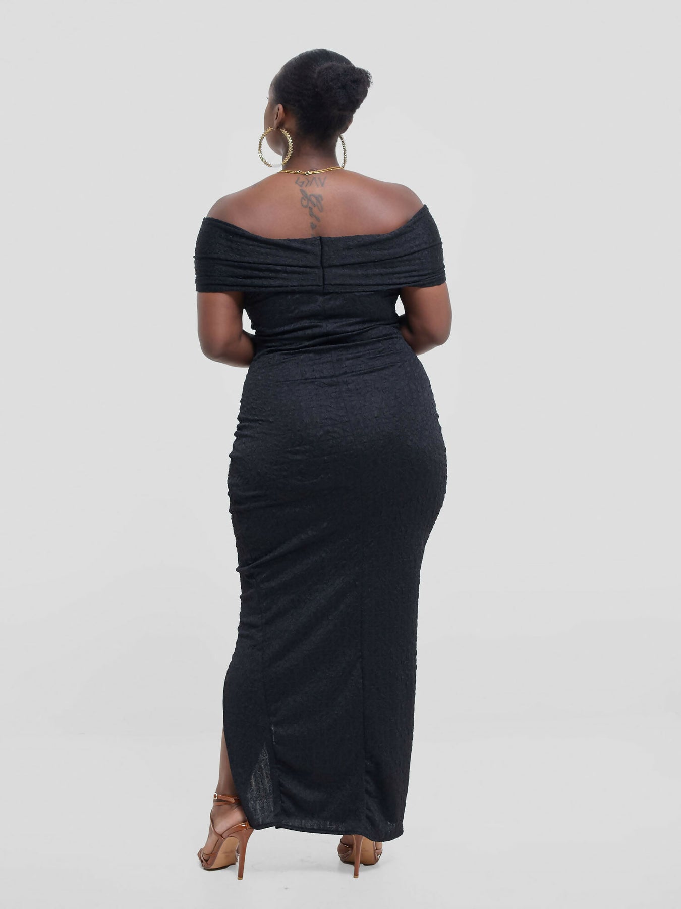 The off-shoulder neckline frames your collarbone with a flirty elegance, while the front slit adds just the right touch of drama to create a striking, feminine silhouette. Whether paired with heels for a romantic dinner or dressed down with sneakers for a chic, playful vibe, Elora promises to make you feel confident, stylish, and unforgettable.