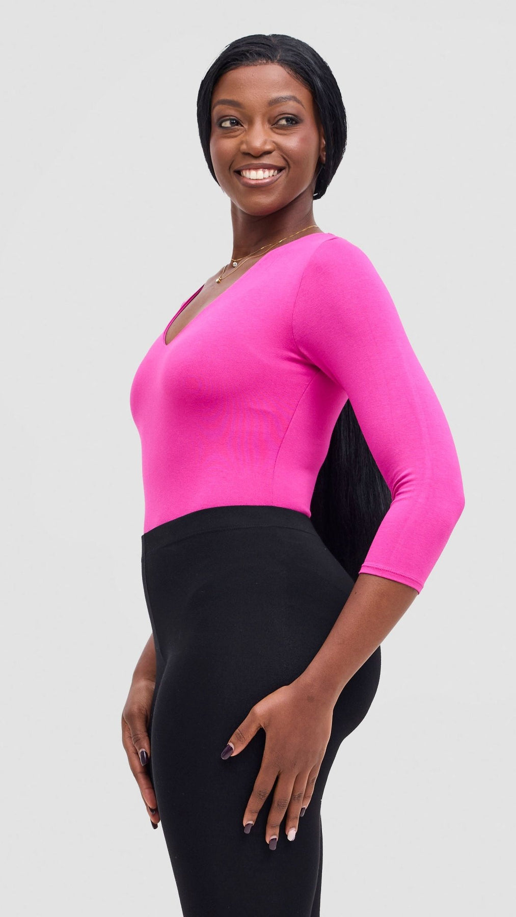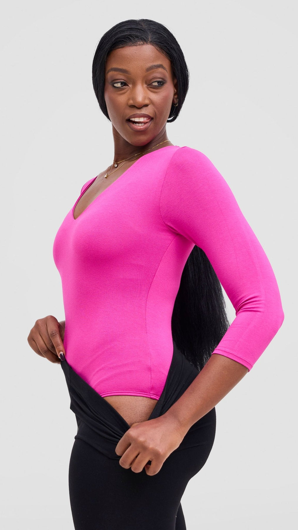 A quality bodysuit that will serve you well for your Monday through Friday and still be an option for your weekend fits. Get two or three in different colours and you're good to go for most of the week.