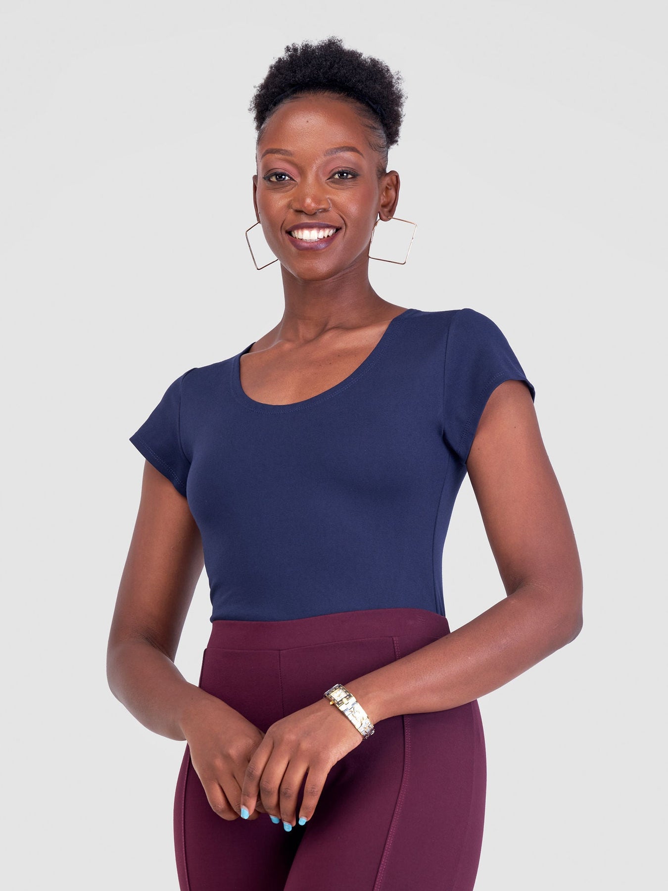 Vivo Basic Cap Sleeved Bodysuit - Navy Blue