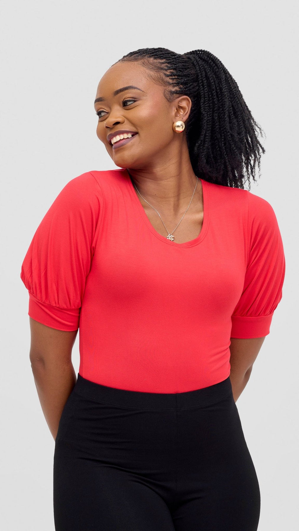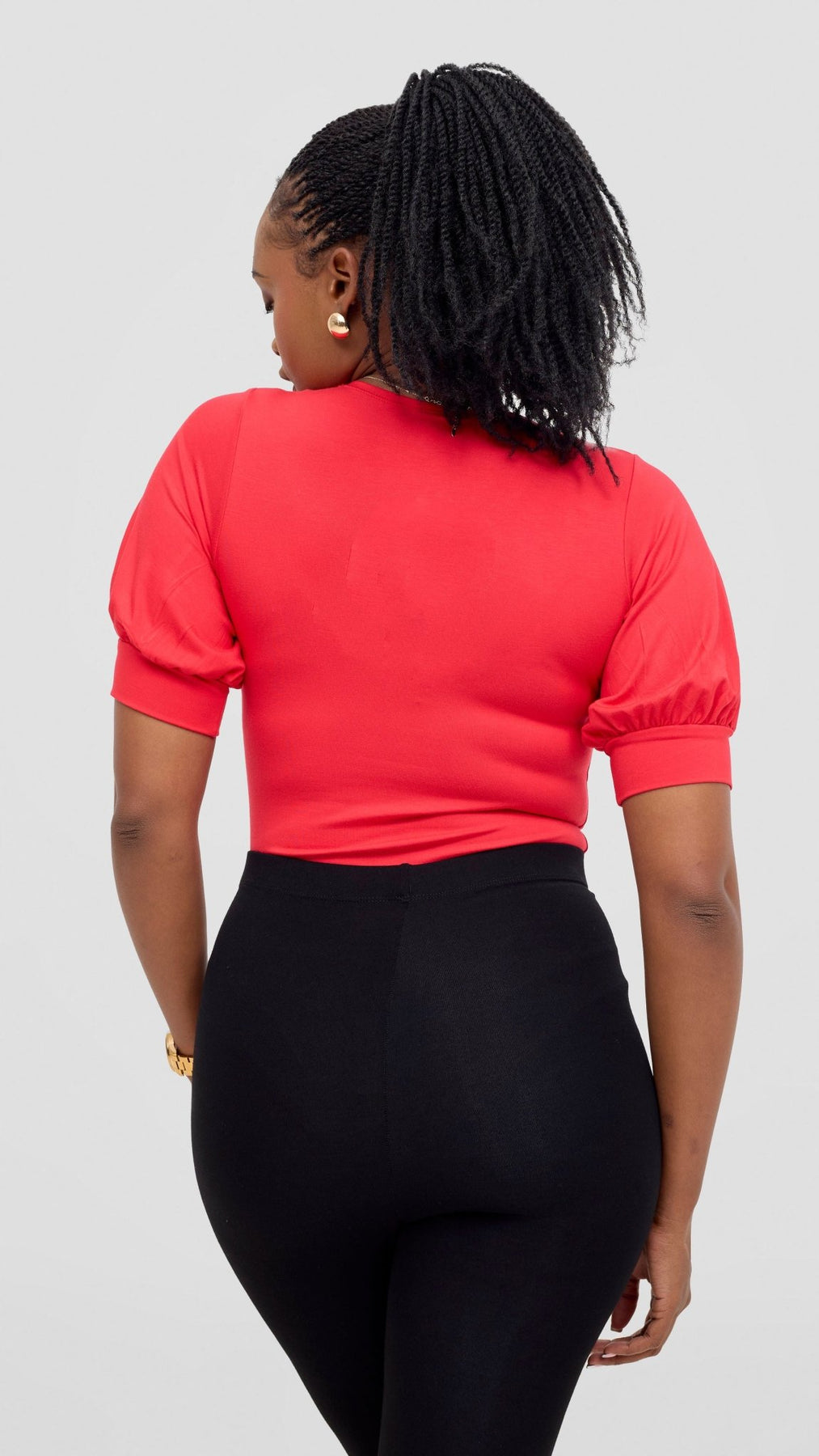 Vivo Tana Puff Sleeve Bodysuit - Red