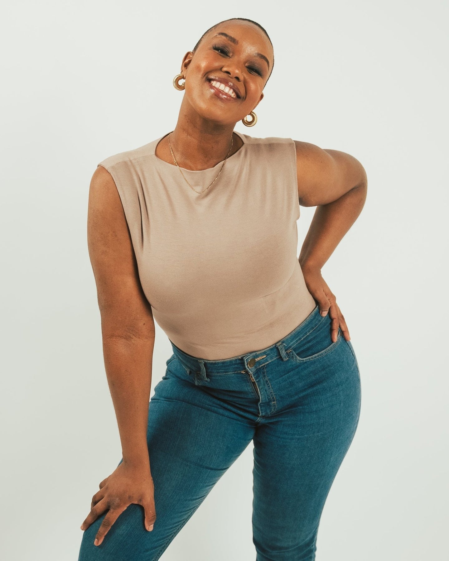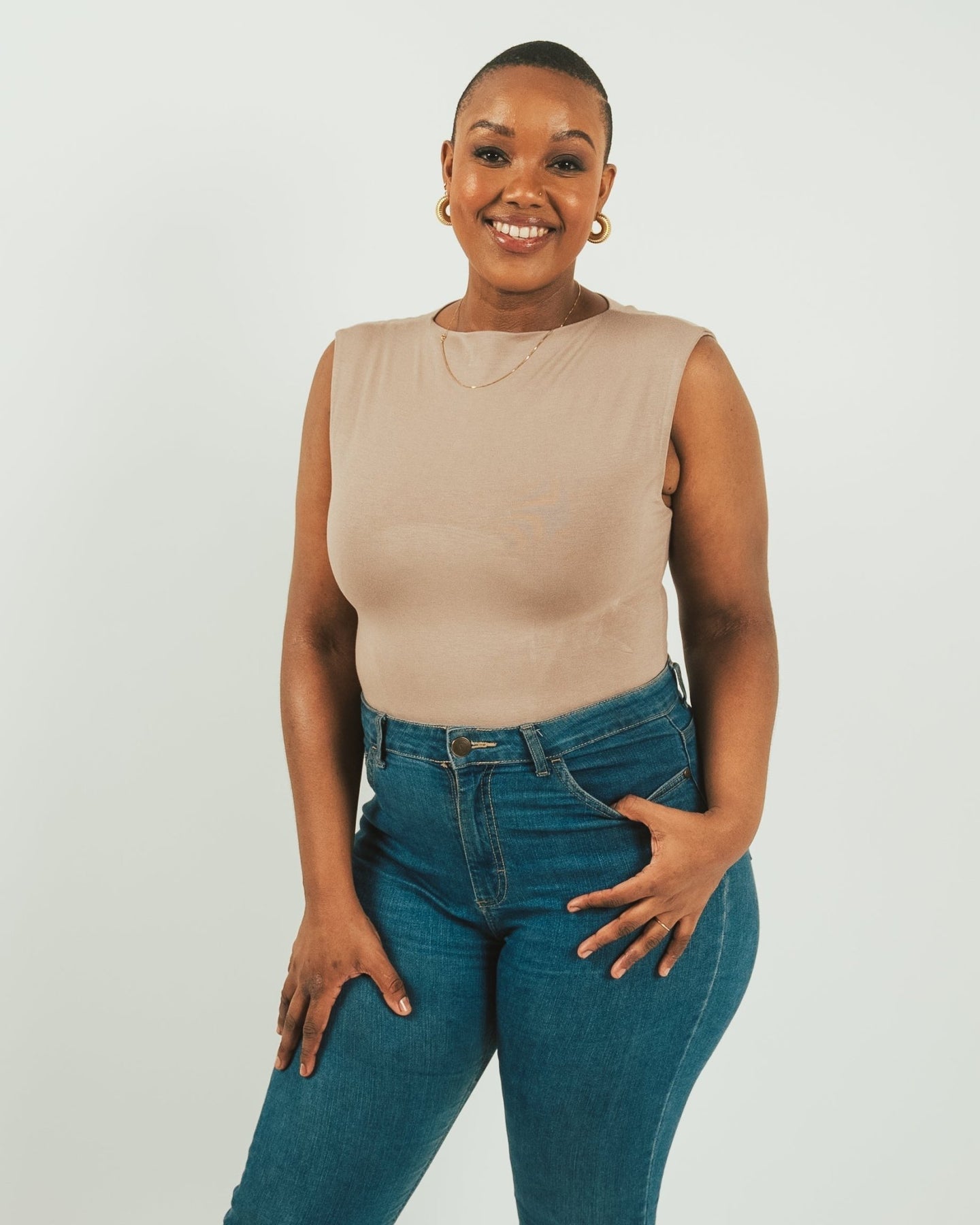 Vivo X This Is Essential Sleeveless Boat Neck Bodysuit - Taupe