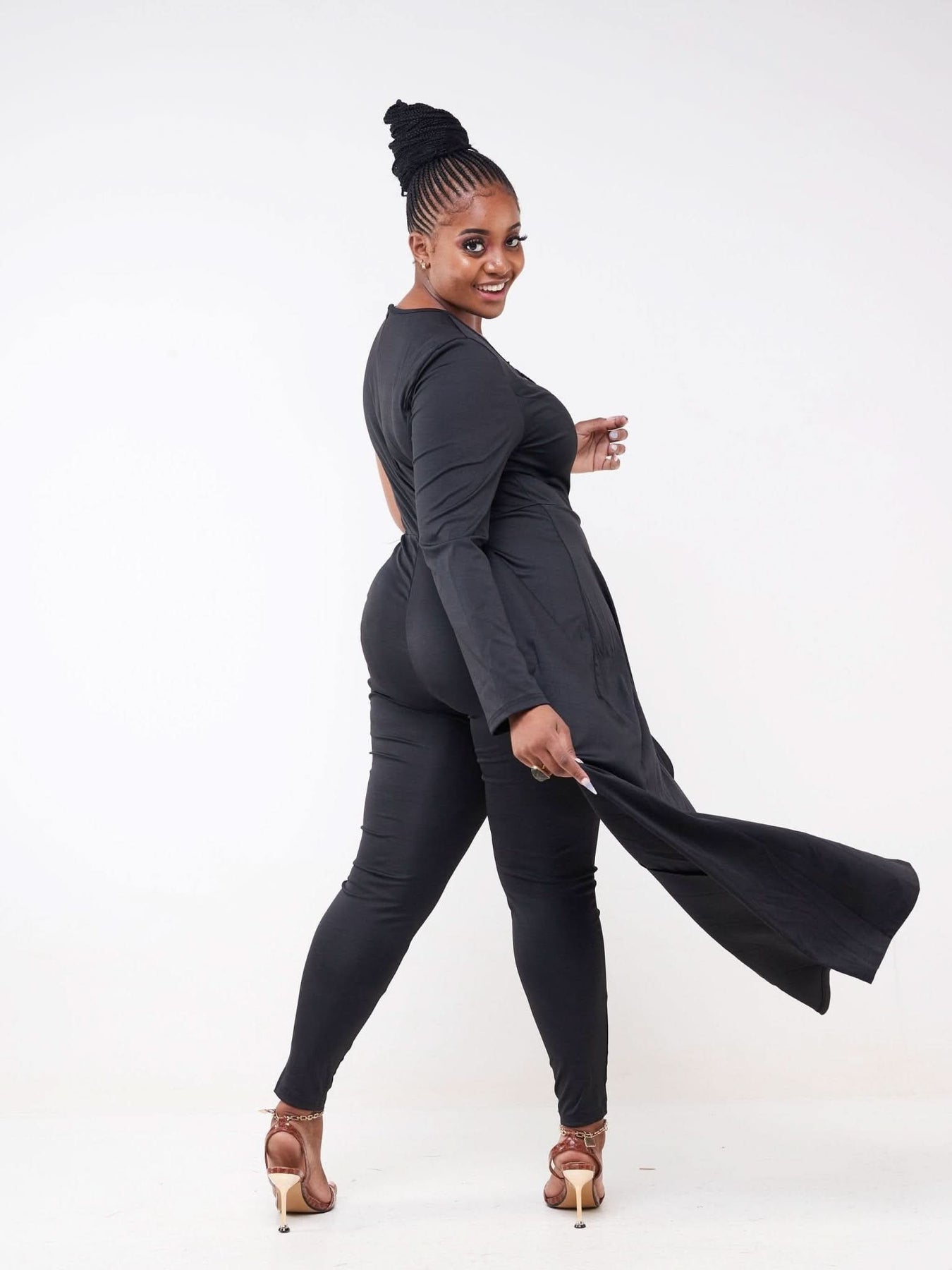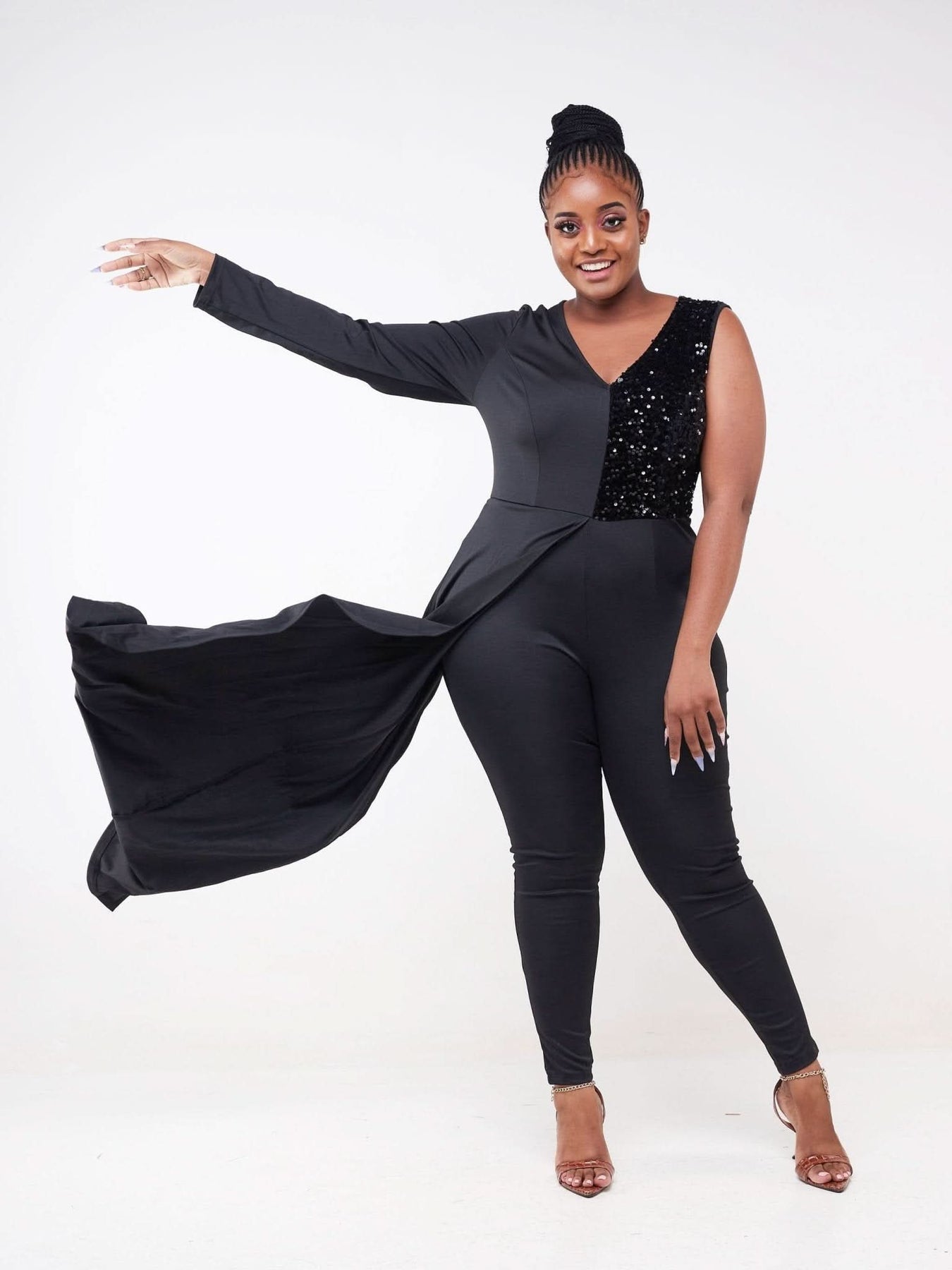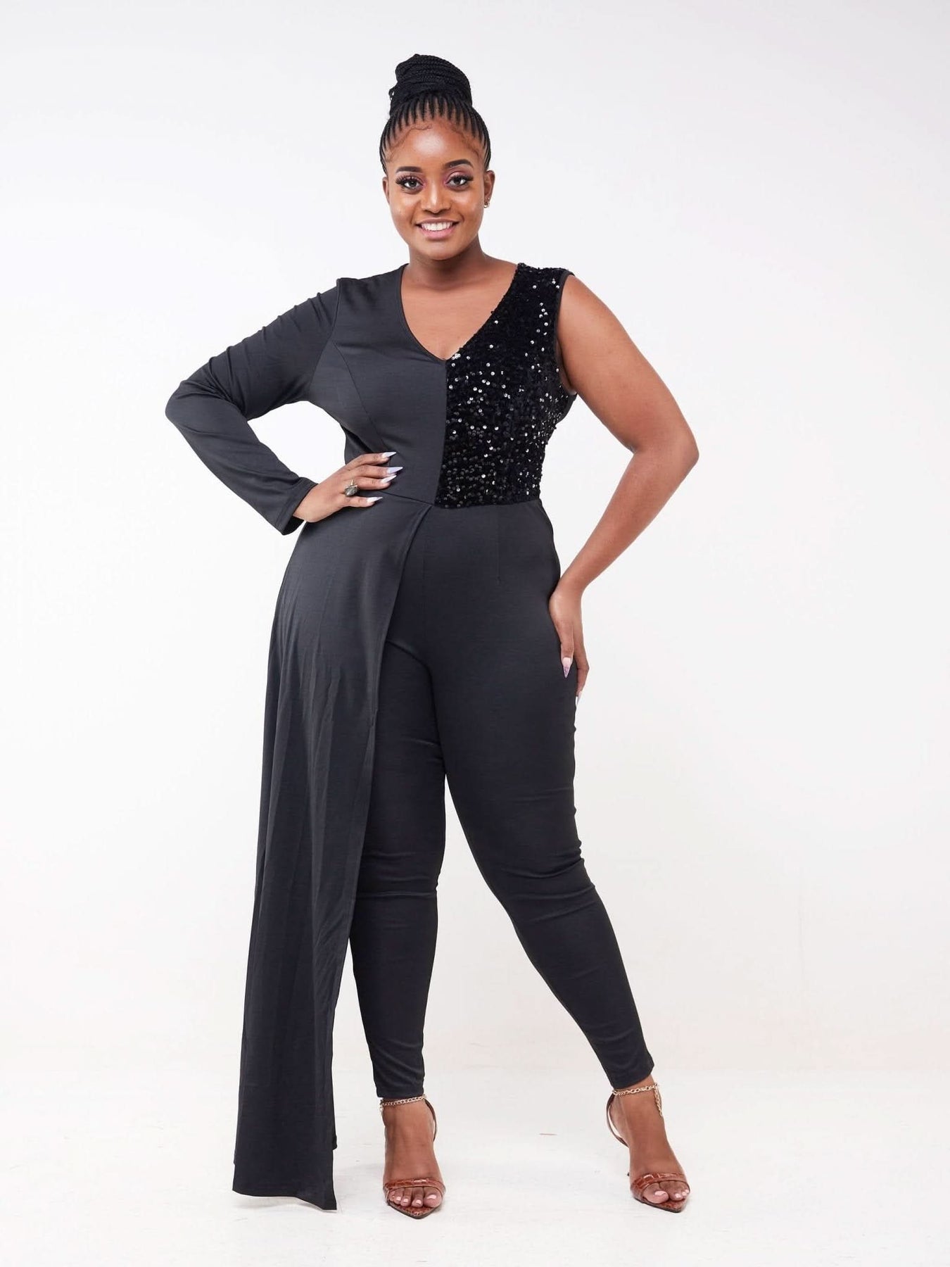 Bold N Chic Sequin Jumpsuit With Trail - Black - Shopzetu