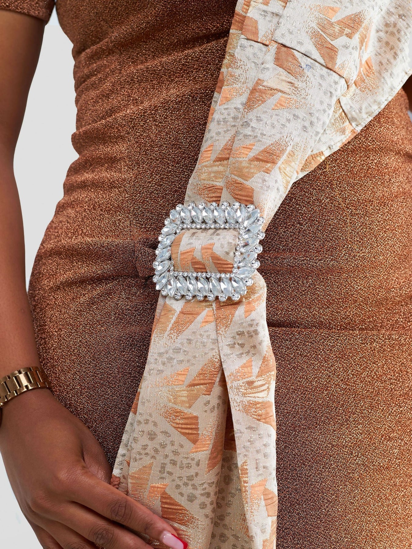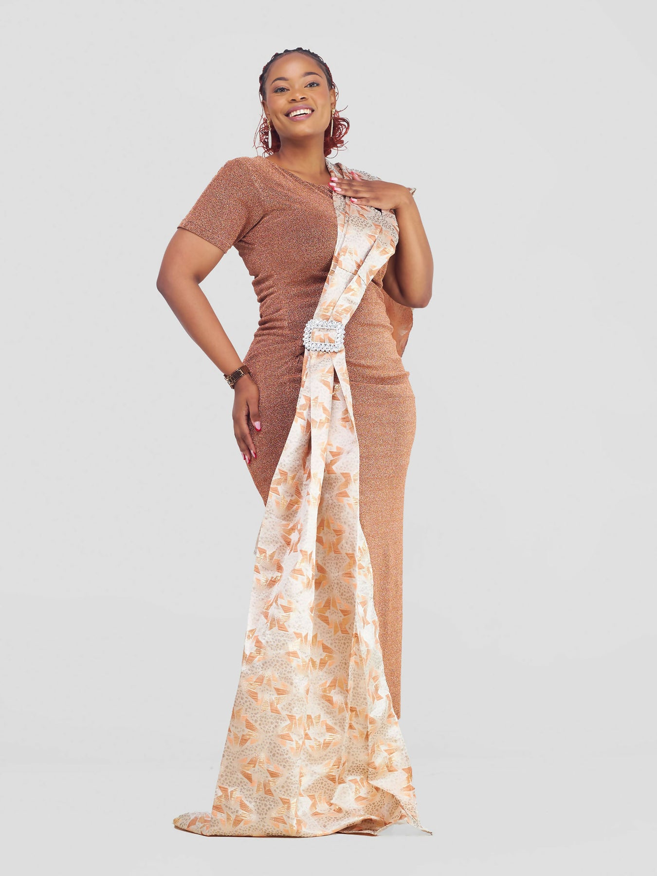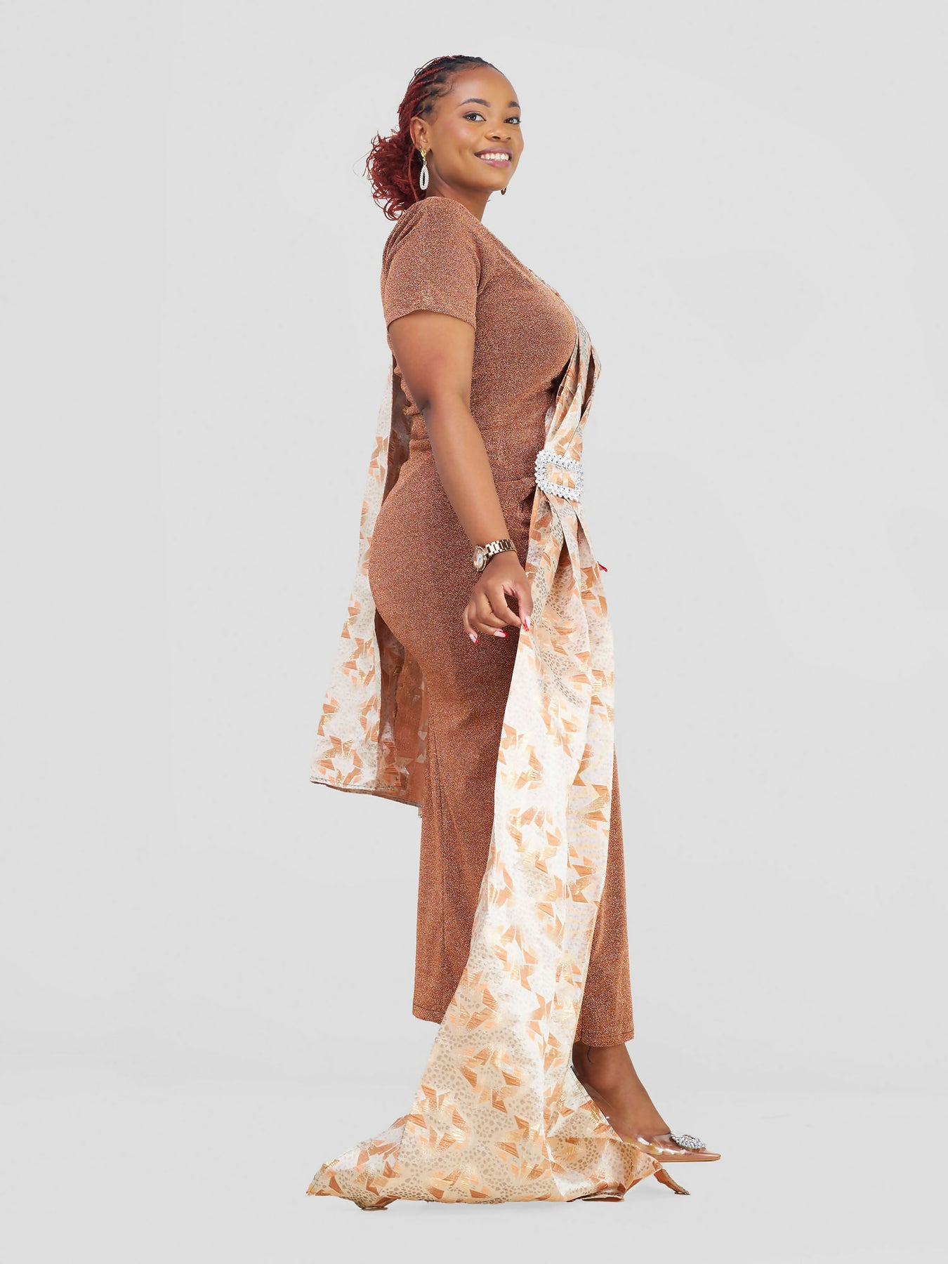 Bold N chic Shimmer Dress With Brocade Tail - Brown - Shopzetu