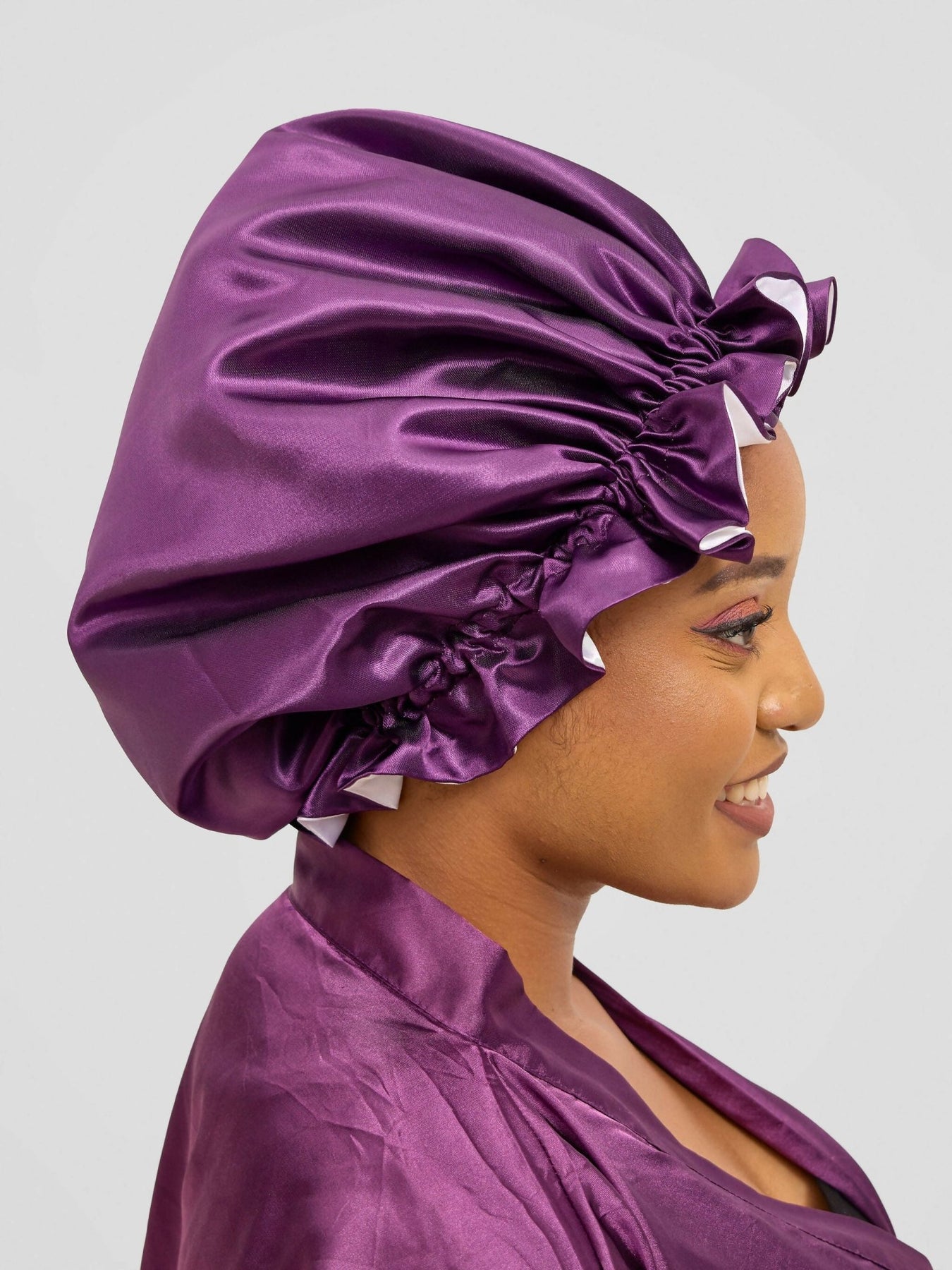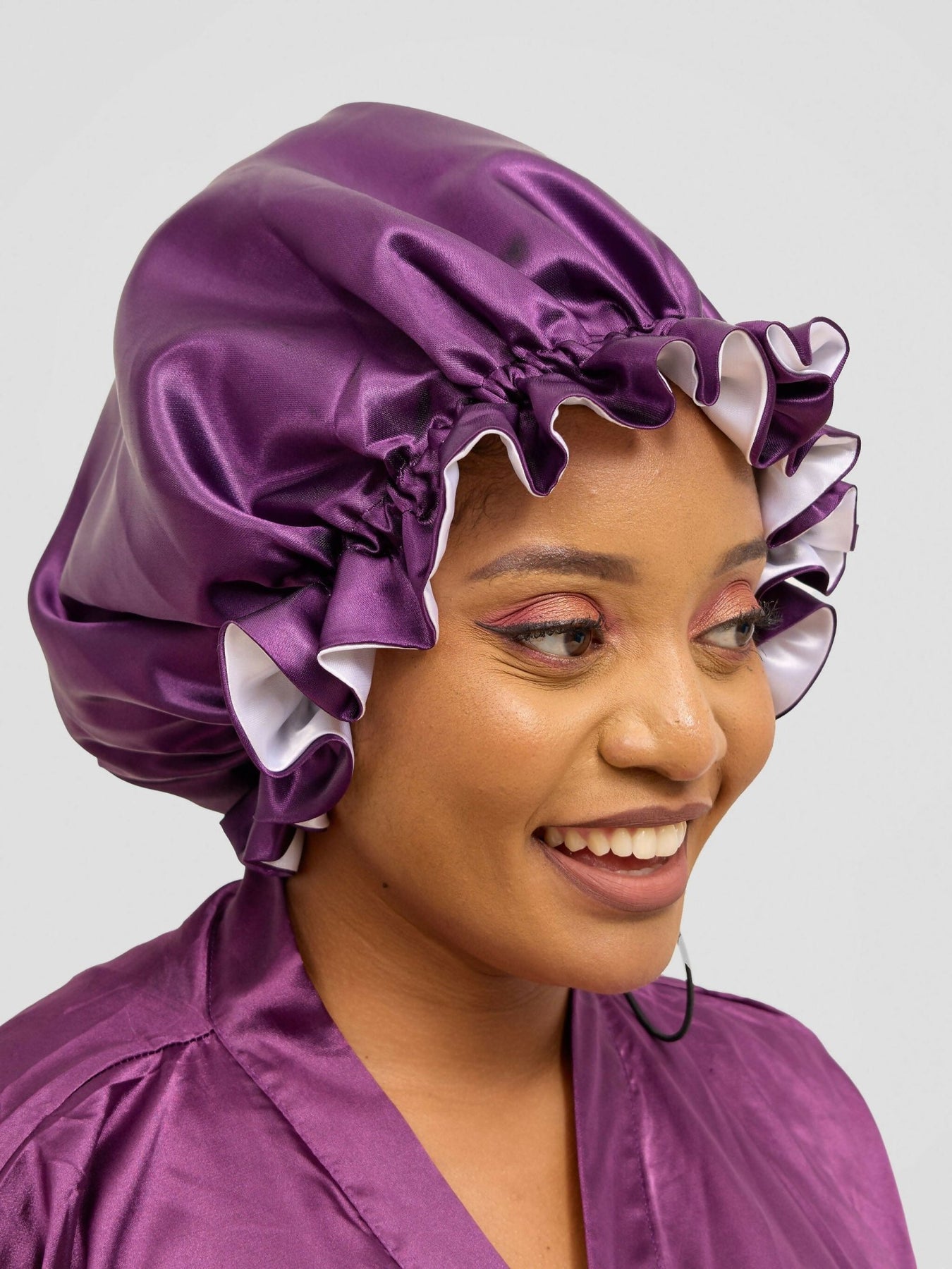 Satin Luxe Ruffle Bonnet - Black Currant / White - Shopzetu