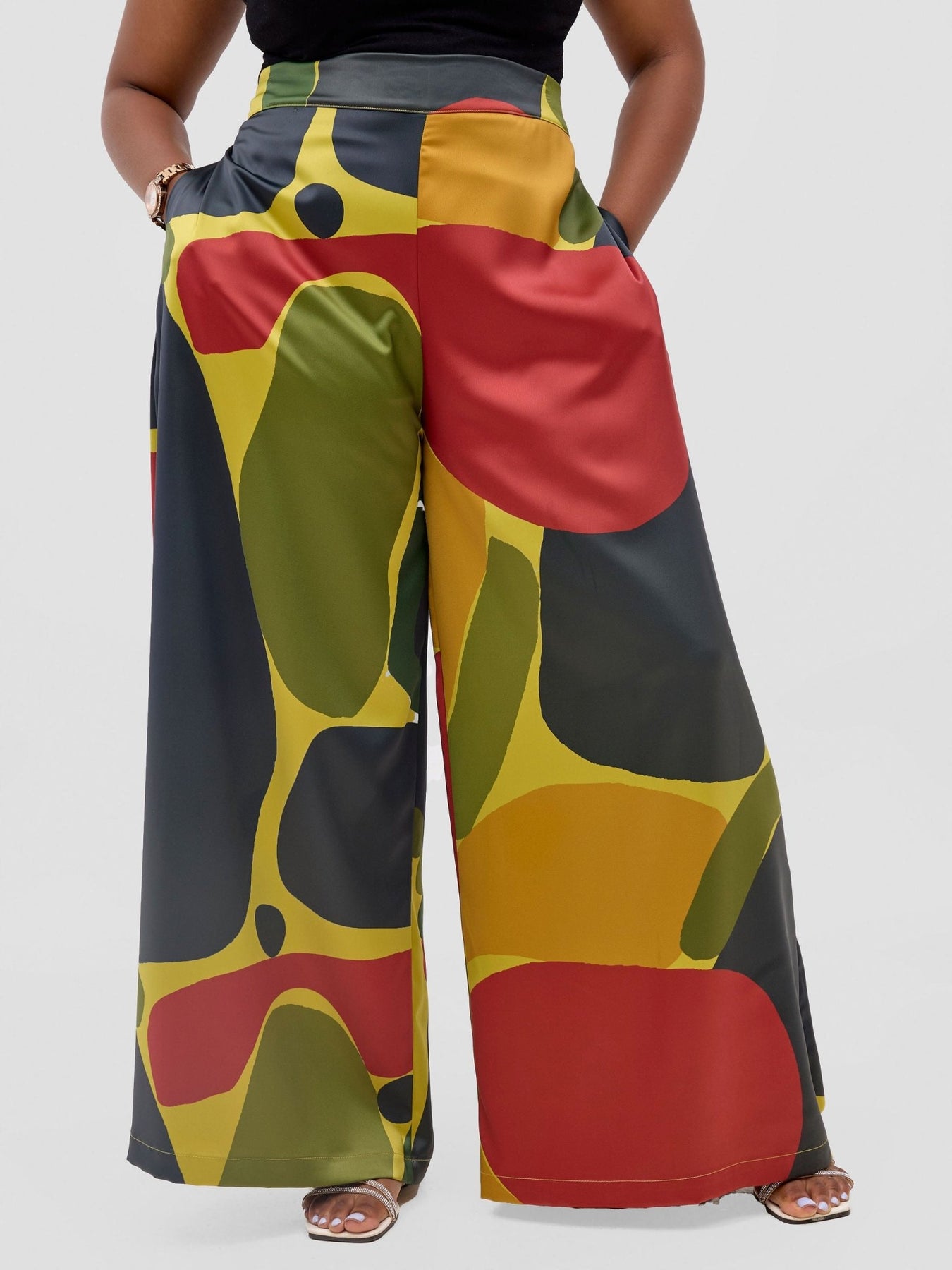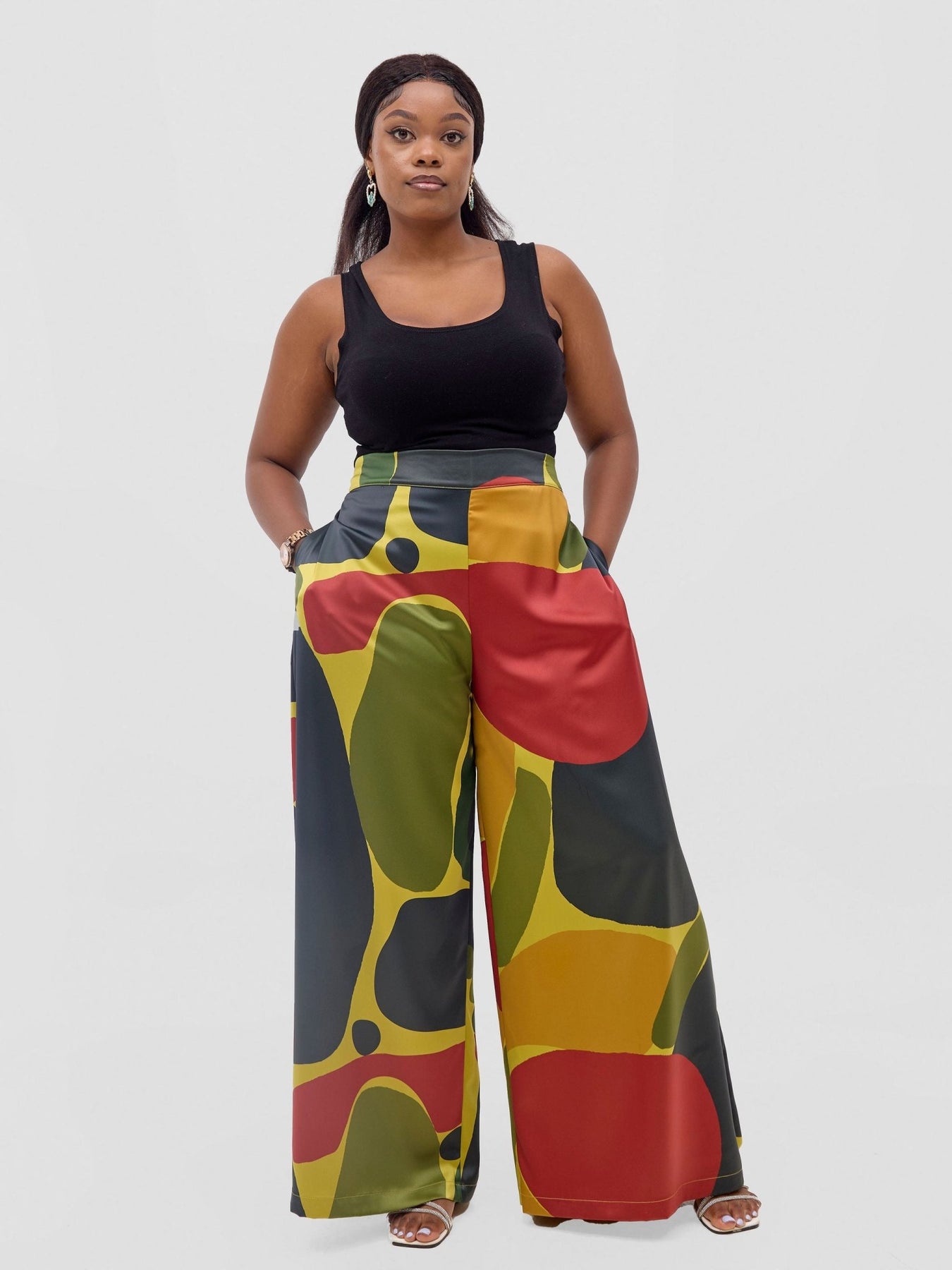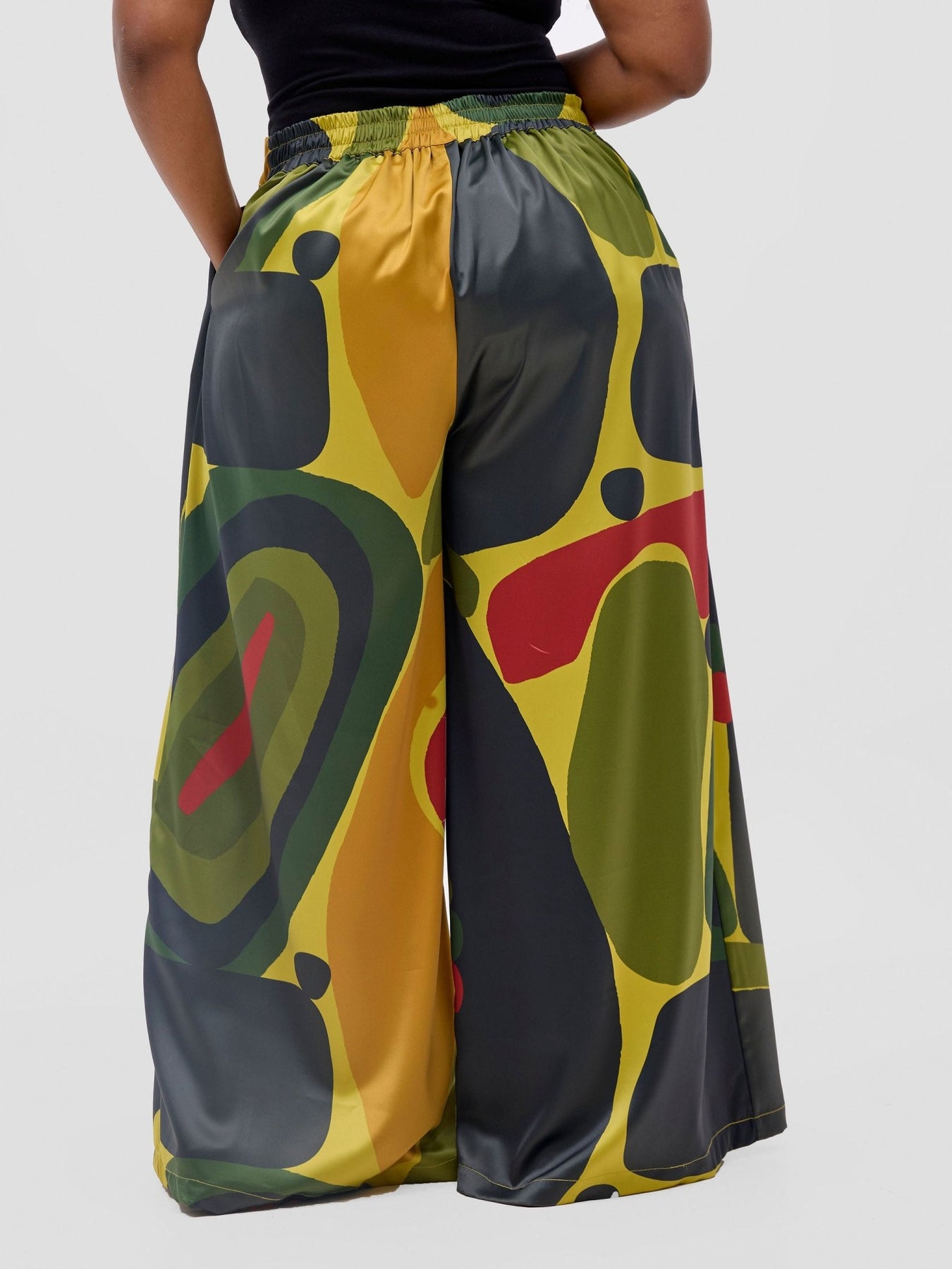 Vivo Kelemi Satin Pants - Lime / Red Waso Print - Shopzetu