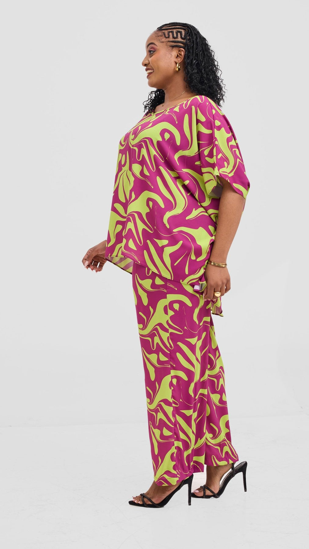 Vivo Maisha Top & Pant Set - Burgundy / Lime Print - Shopzetu