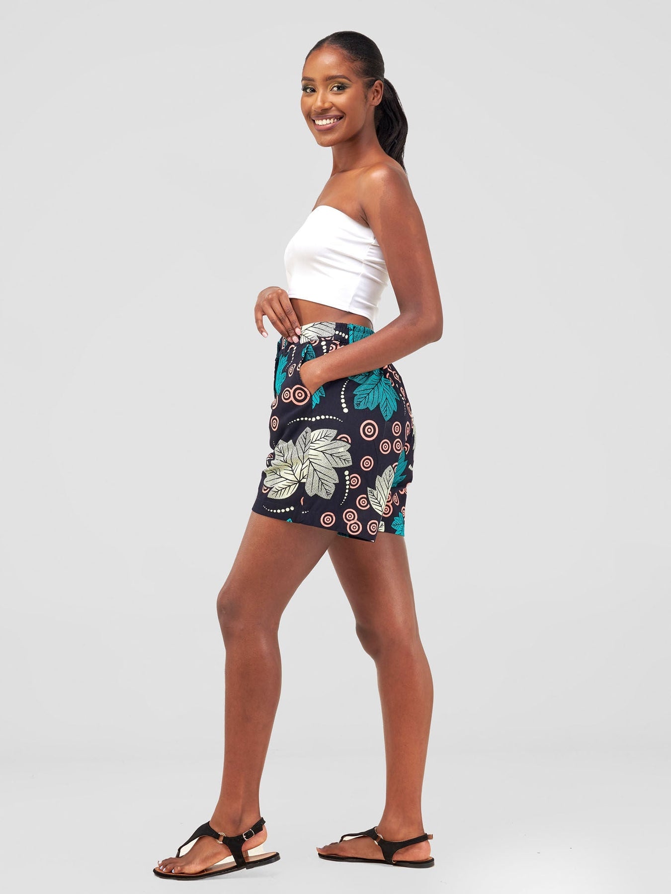 These shorts are the perfect way to stay cool and comfortable all season long. The elastic waistband at the back ensures a comfortable, flattering fit, while the two side pockets provide a convenient place to store your essentials. These shorts are perfect for running errands, night out or hitting the beach.