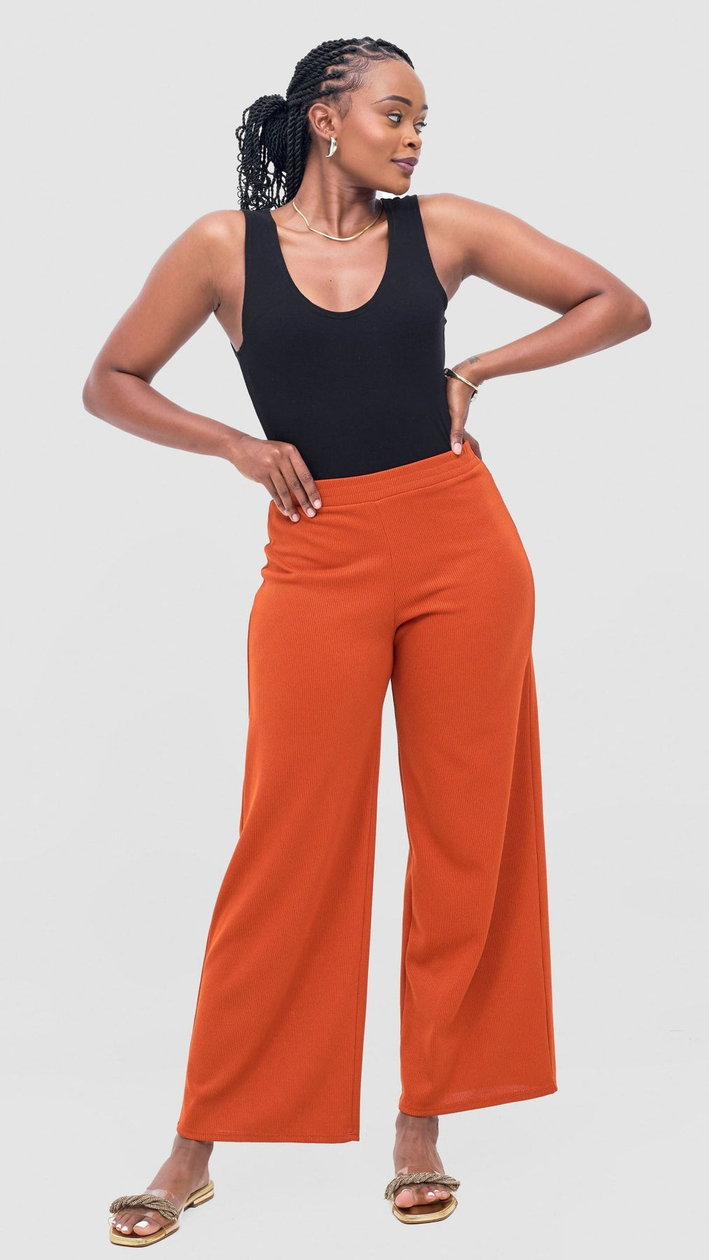 Vivo Rema Straight Leg Pants - Burnt Orange - Shopzetu