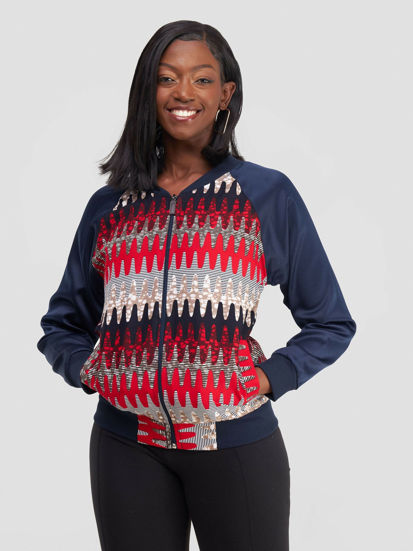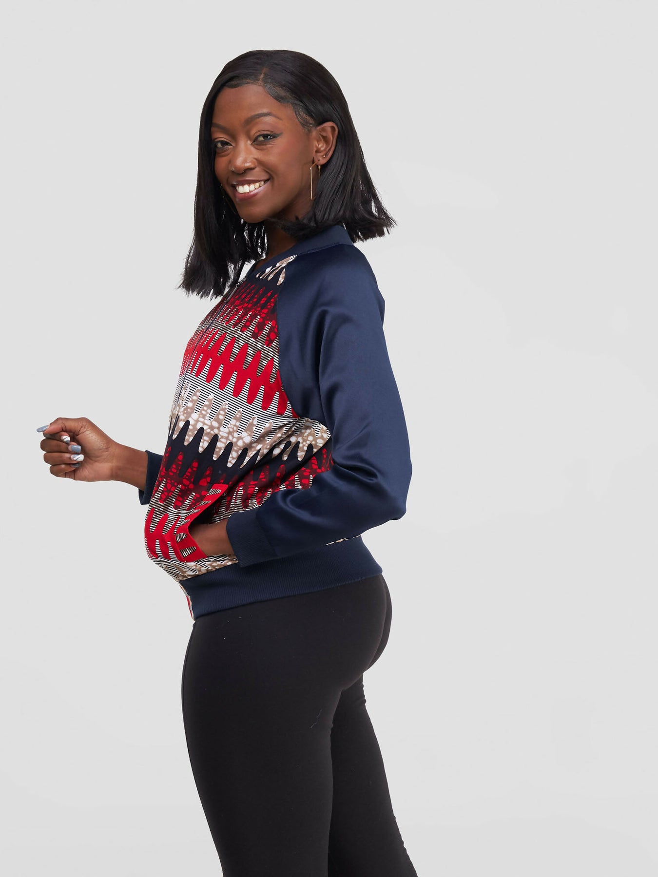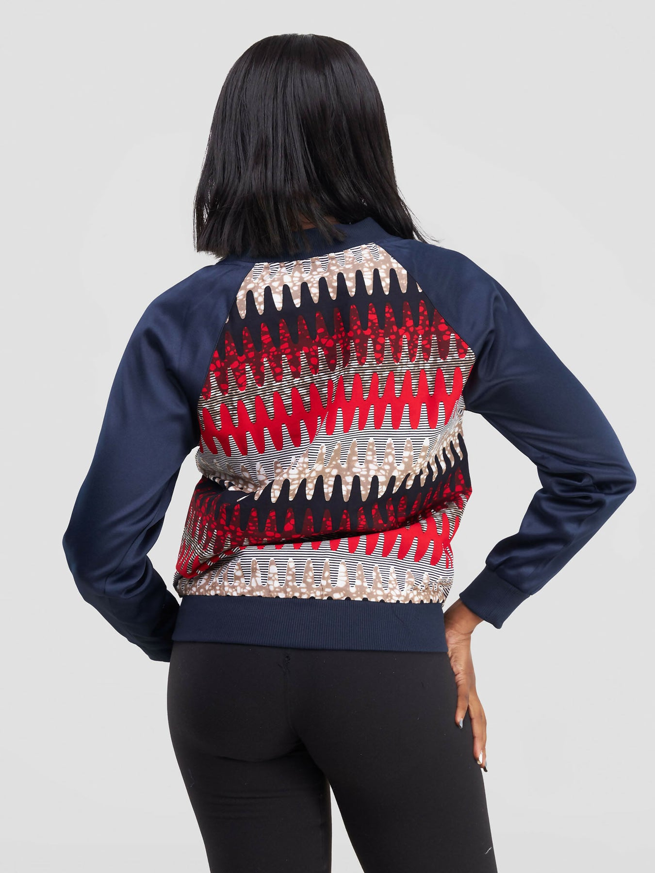 This is a high quality, well finished bomber jacket that will be a valuable addition to your outerwear collection. It is such a fun piece that brings together the vibrancy of Ankara on the main body of the jacket and the elegant feel of a contemporary fabric on the sleeves.