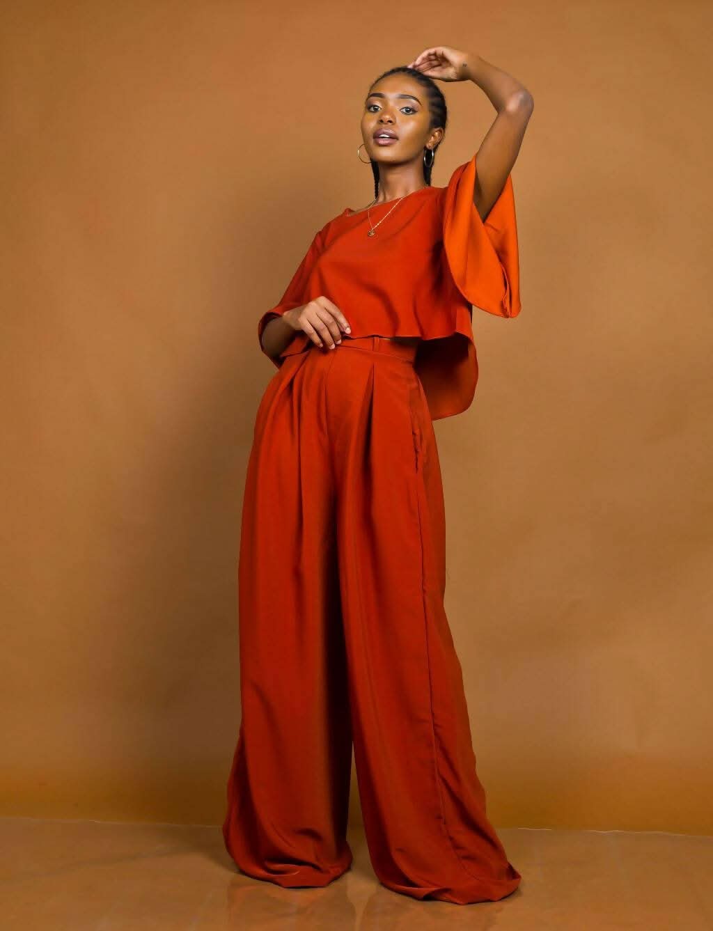 • The top can be paired with the Rust Tulips Palazzo Pants to achieve this monochrome look.