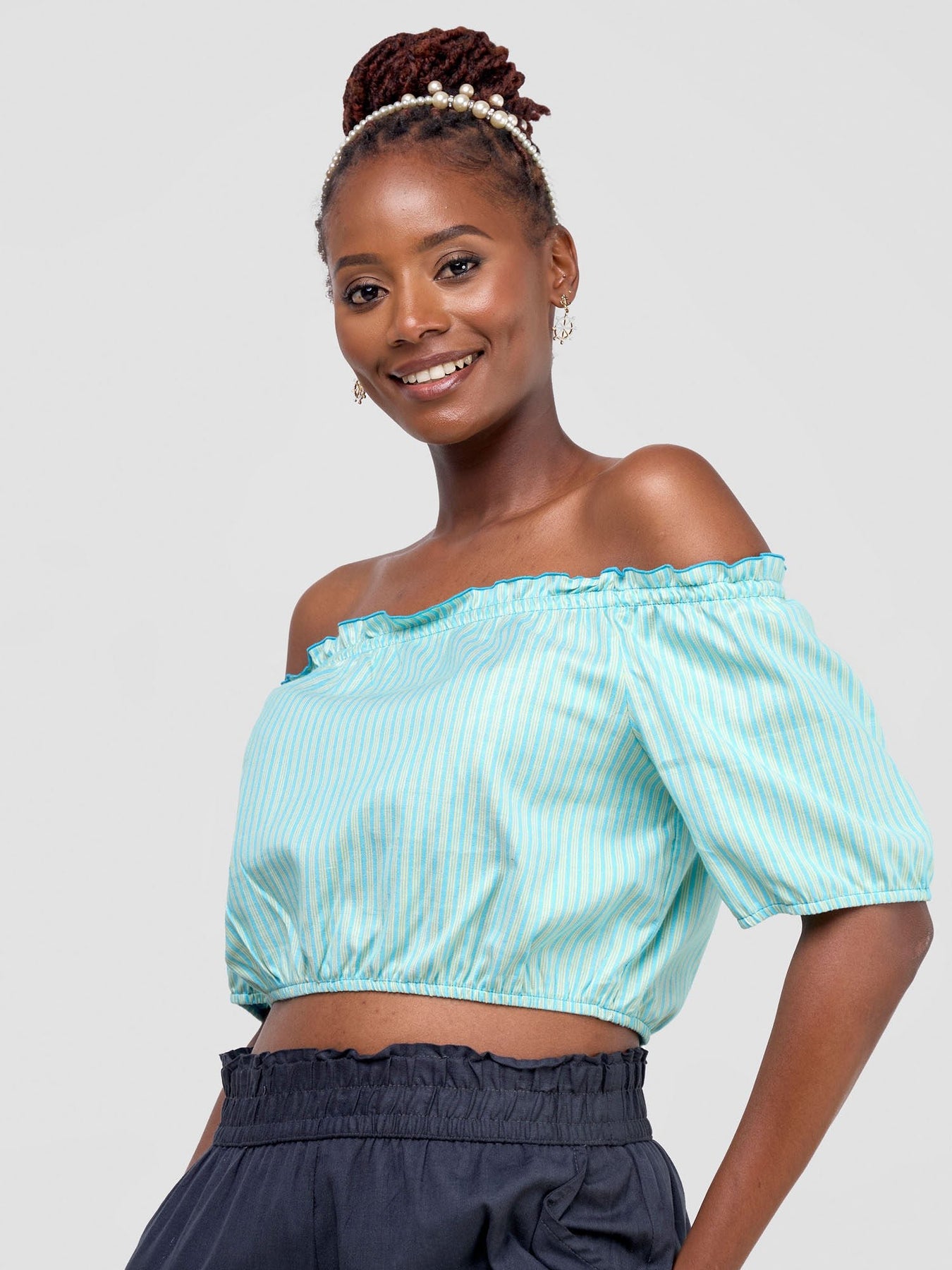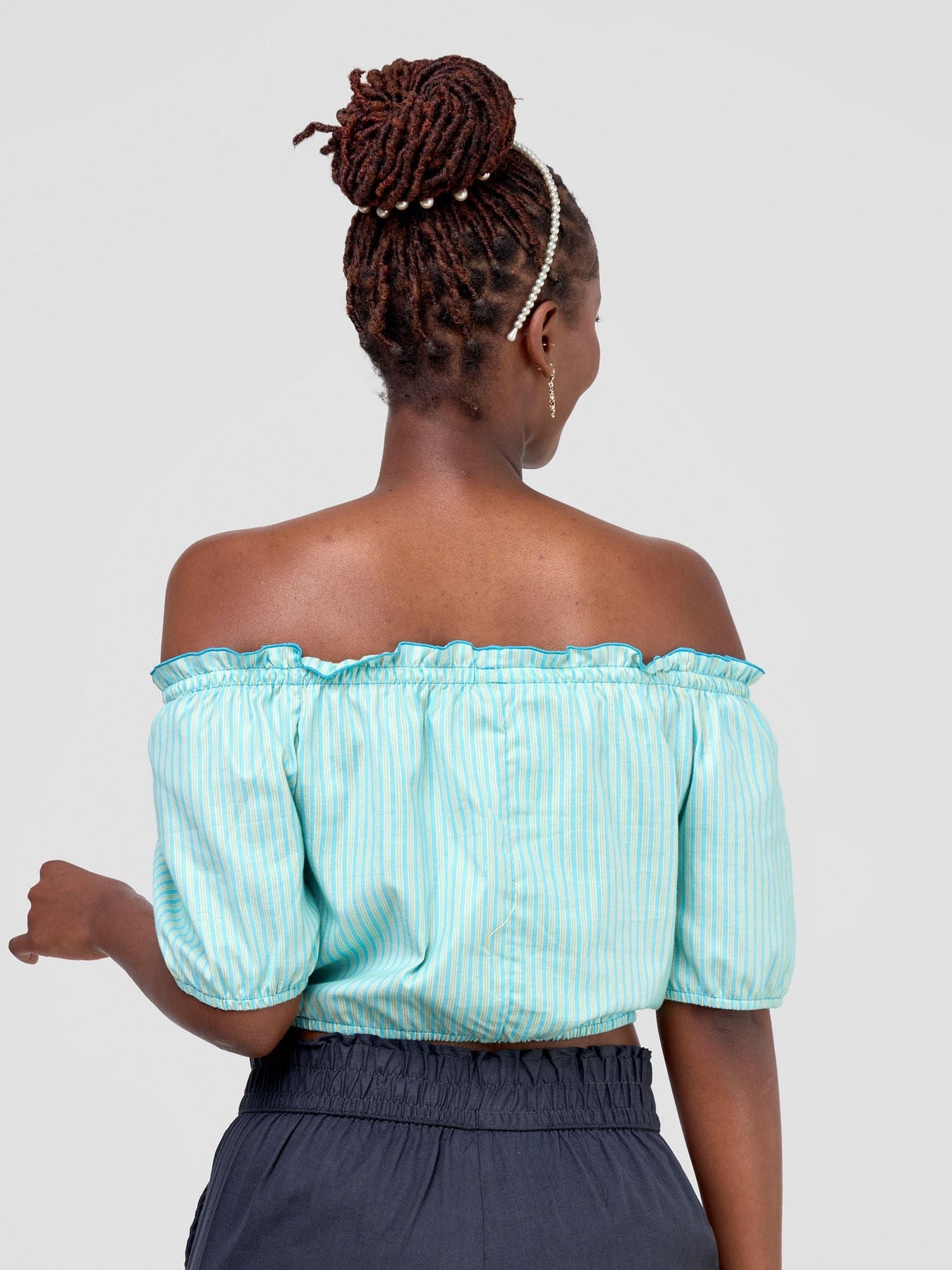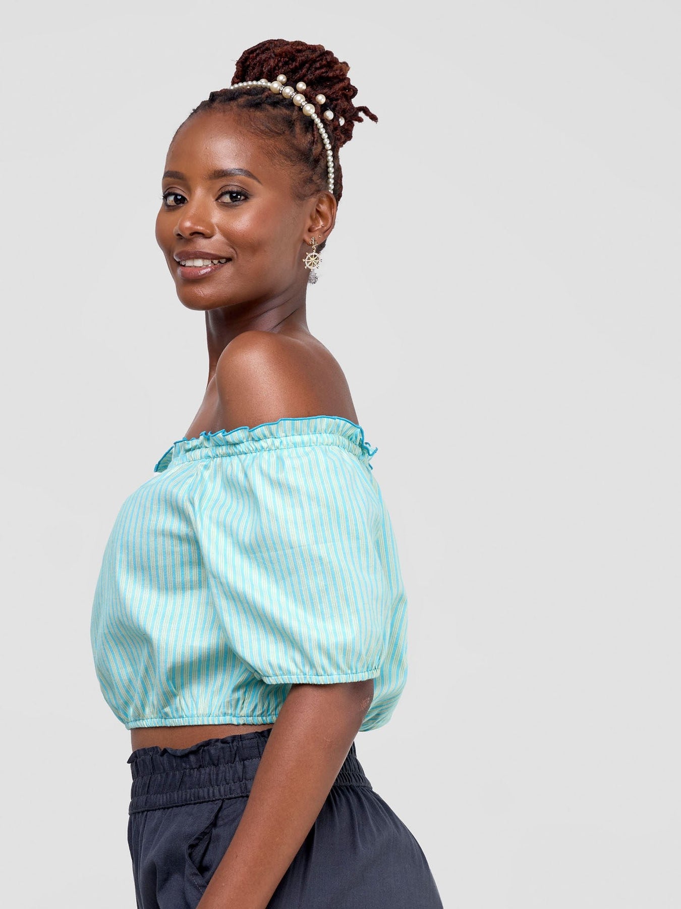 Safari Kikoy Off Shoulder Crop Top - Light Blue Print - Shopzetu