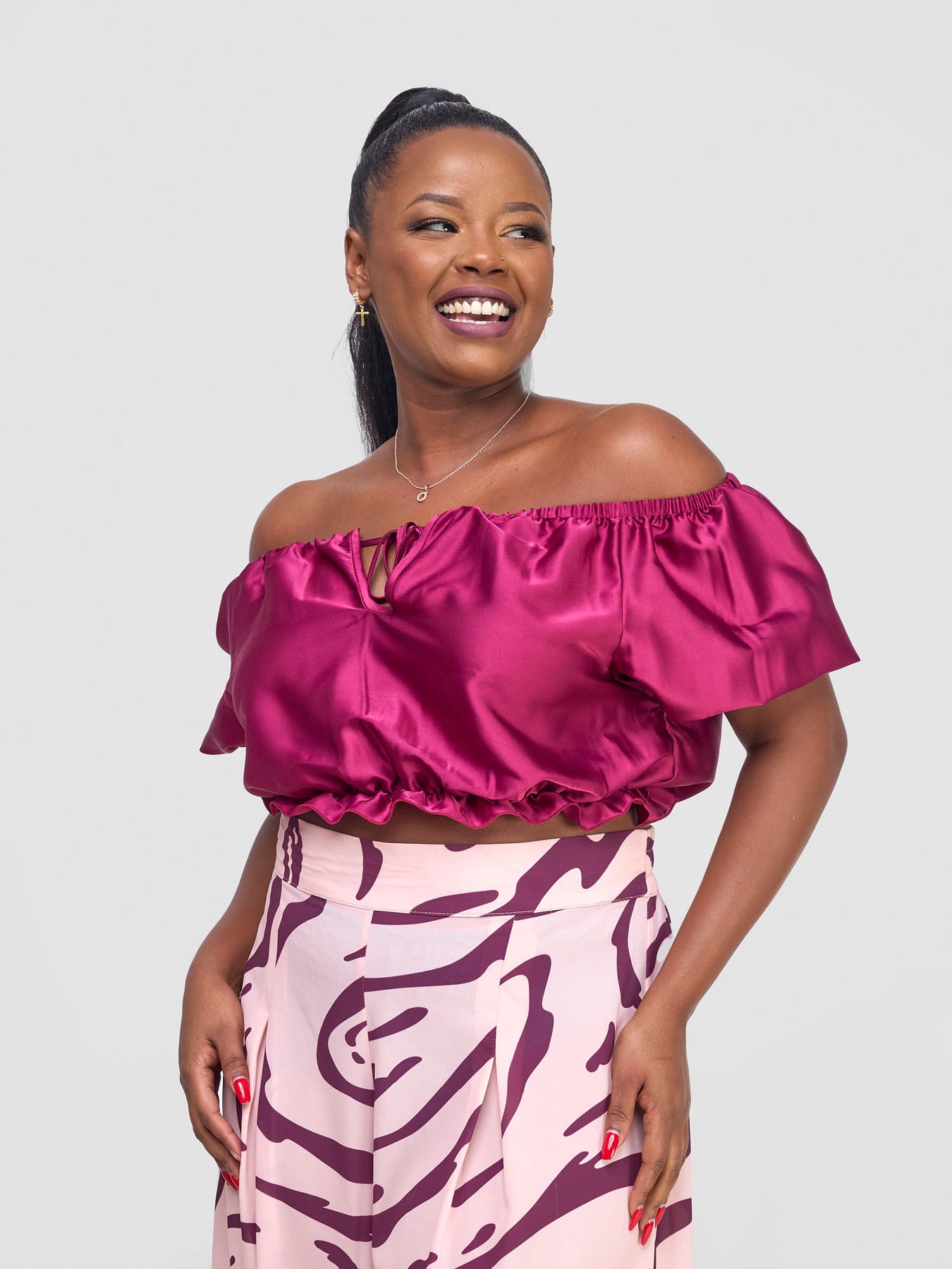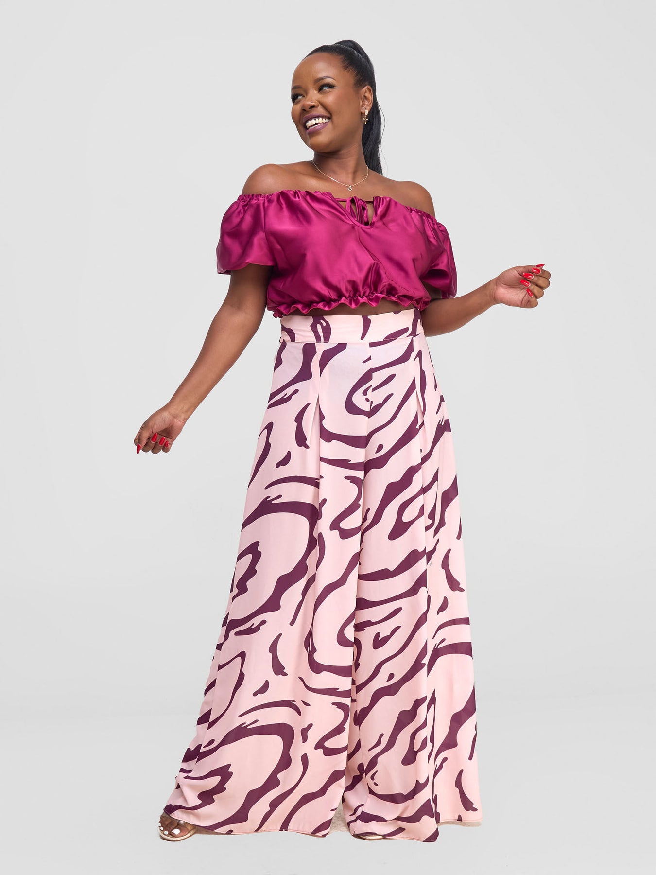 Featuring eye-catching abstract prints and a relaxed fit, this off shoulder top is your go-to for easy, breezy style. Perfect for sunny days and spontaneous adventures, add some fun to your resort wardrobe and pair it with our coordinating Zoya Shani pleated pants or shorts.