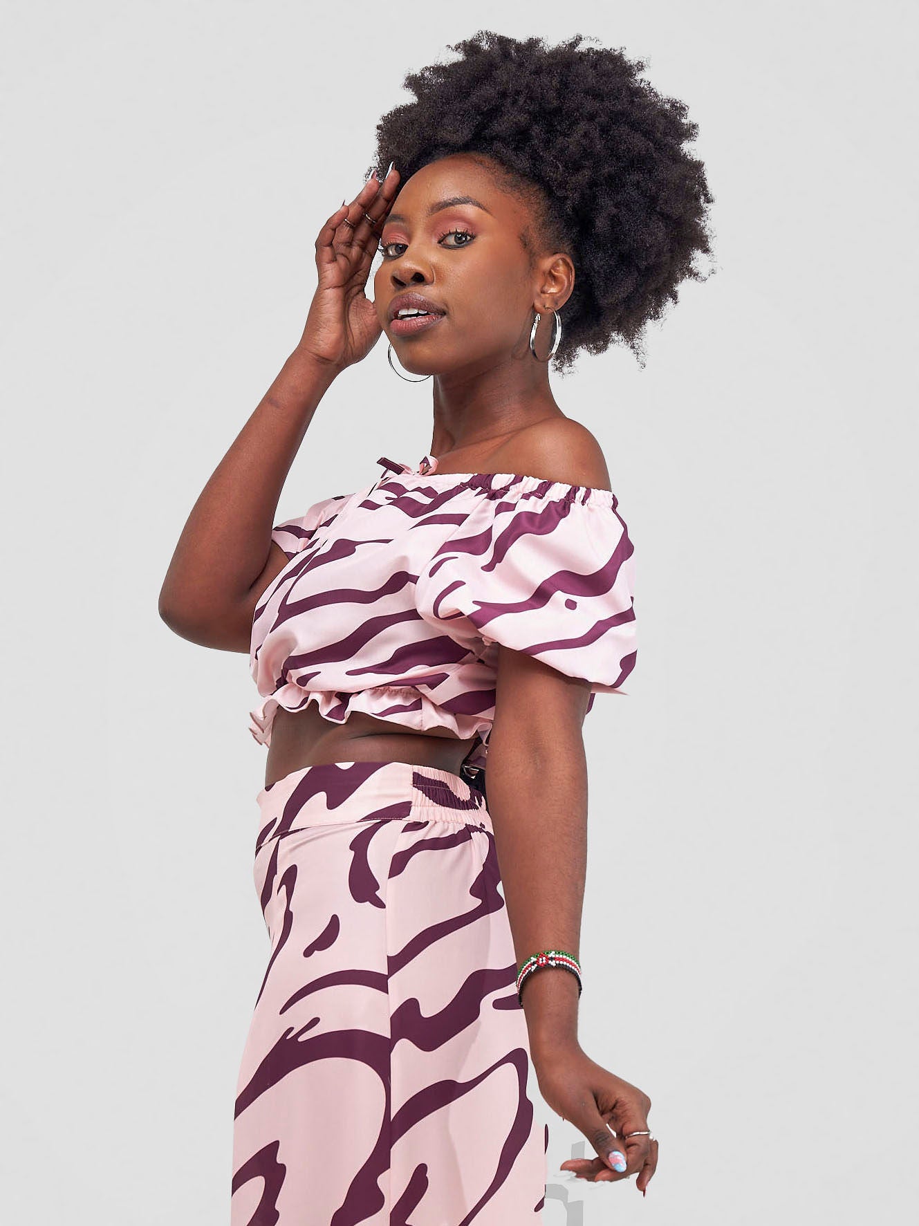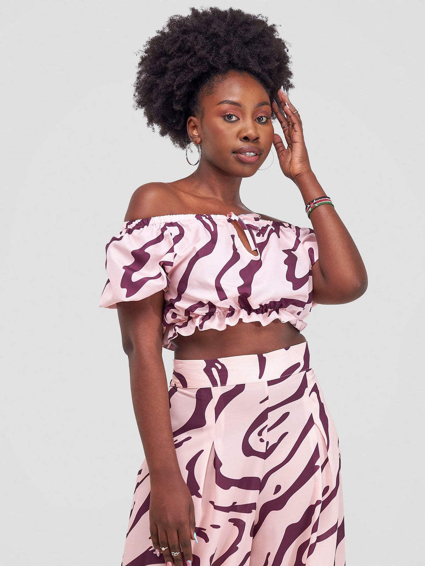 Featuring eye-catching abstract prints and a relaxed fit, this off shoulder top is your go-to for easy, breezy style. Perfect for sunny days and spontaneous adventures, add some fun to your resort wardrobe and pair it with our coordinating Zoya Shani pleated pants or shorts.