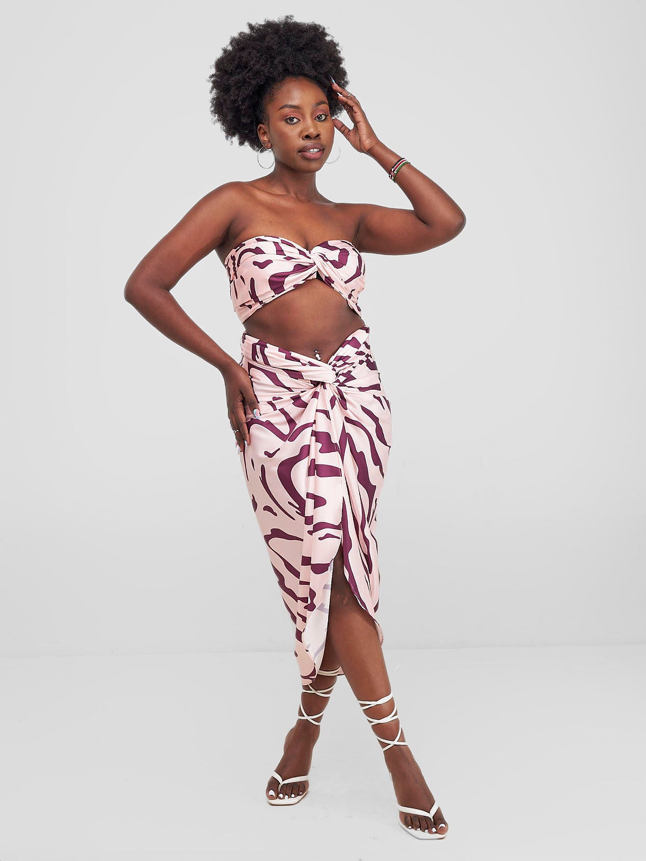 Unleash your creativity with the Zoya Shani scarf top! This versatile piece can be styled and tied in endless ways, offering a fresh look for every occasion. Paired with its matching wrap skirt, both in vibrant abstract prints, it’s your perfect resort combo for effortless, chic vibes.