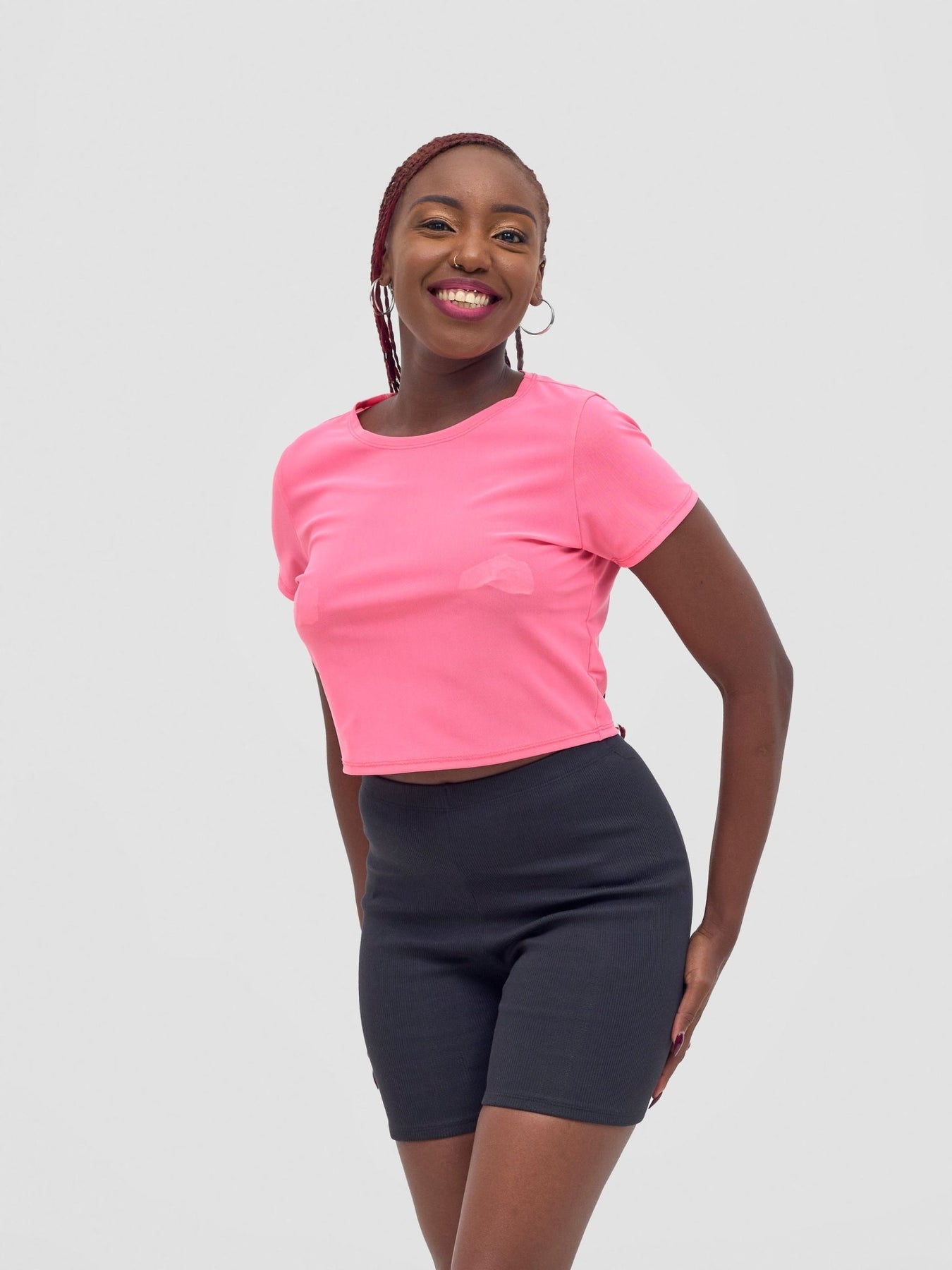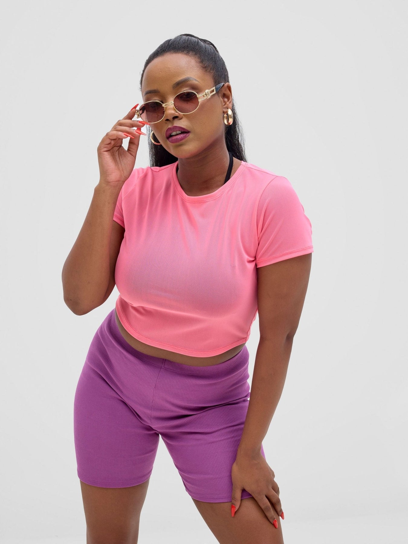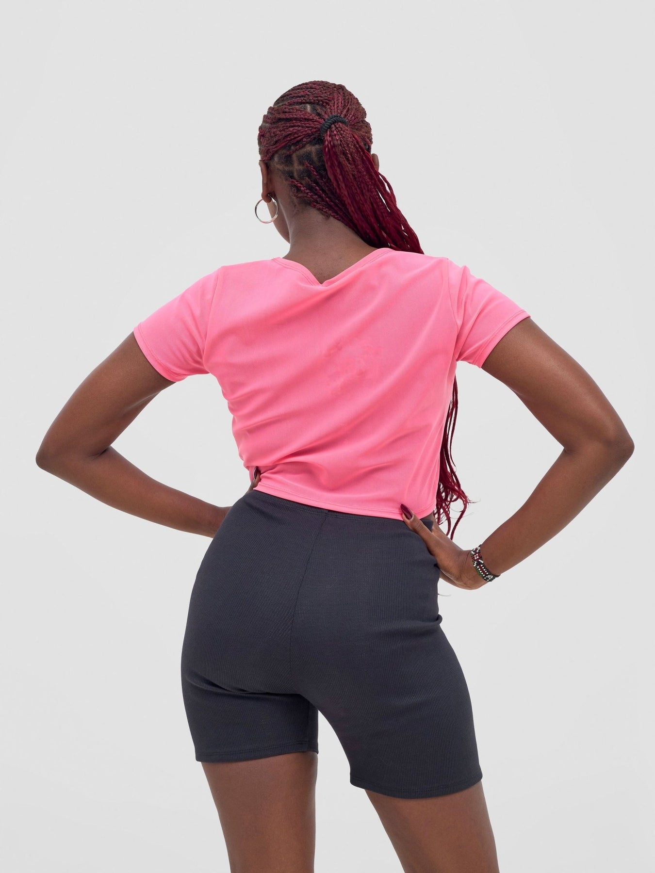Zoya Vasha Short Sleeve Mesh Top - Neon Pink - Shopzetu