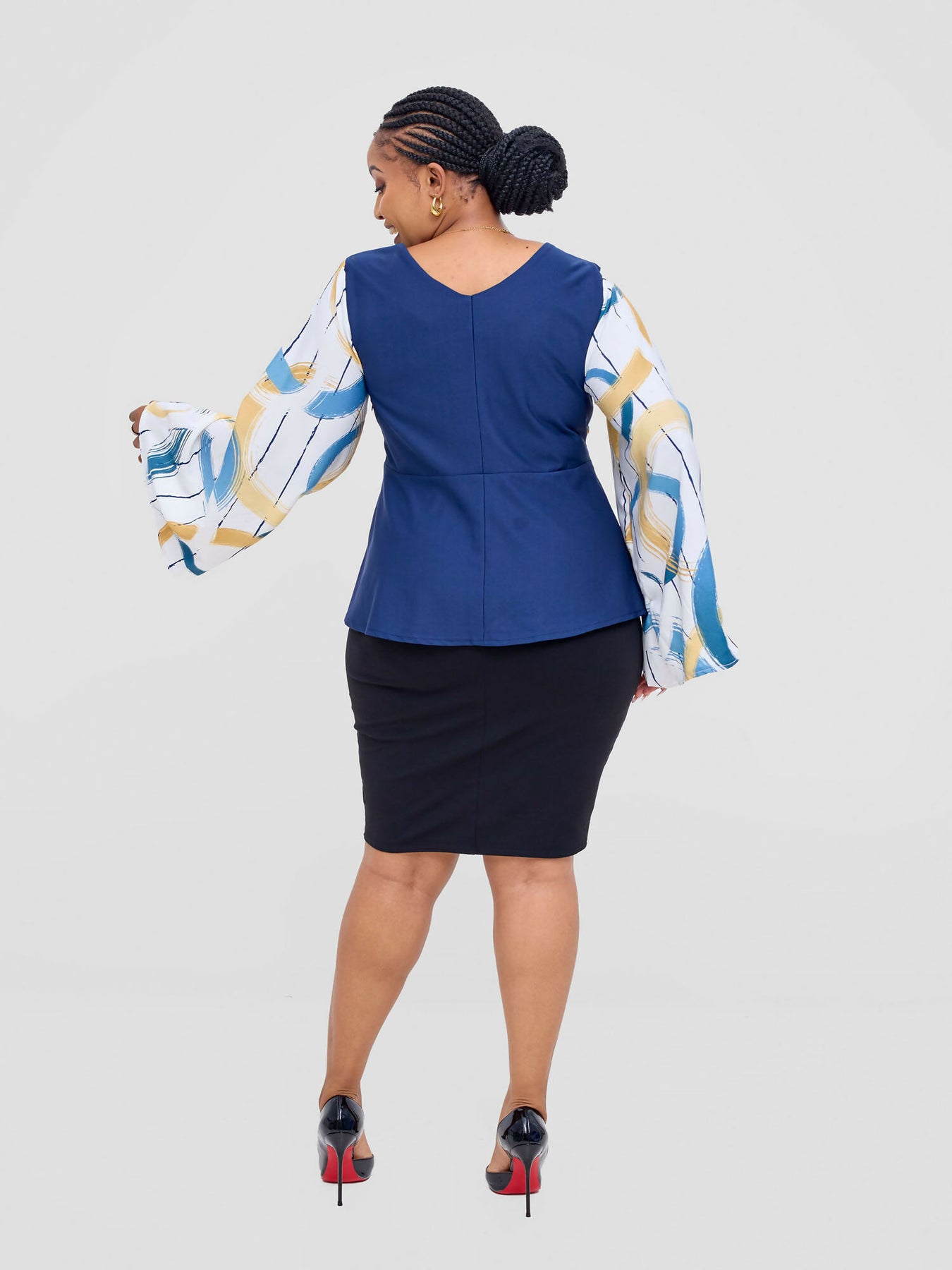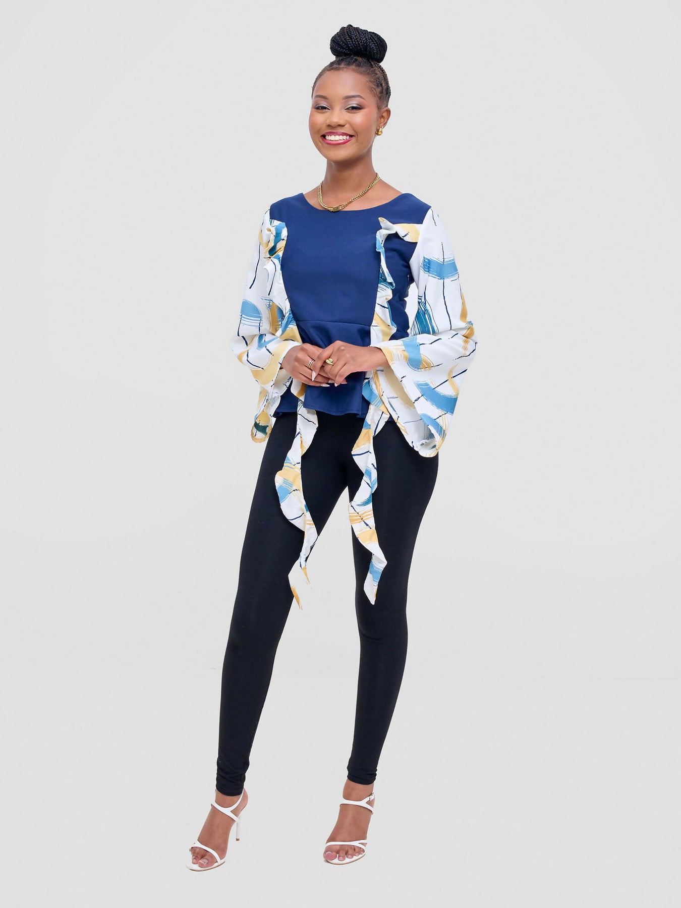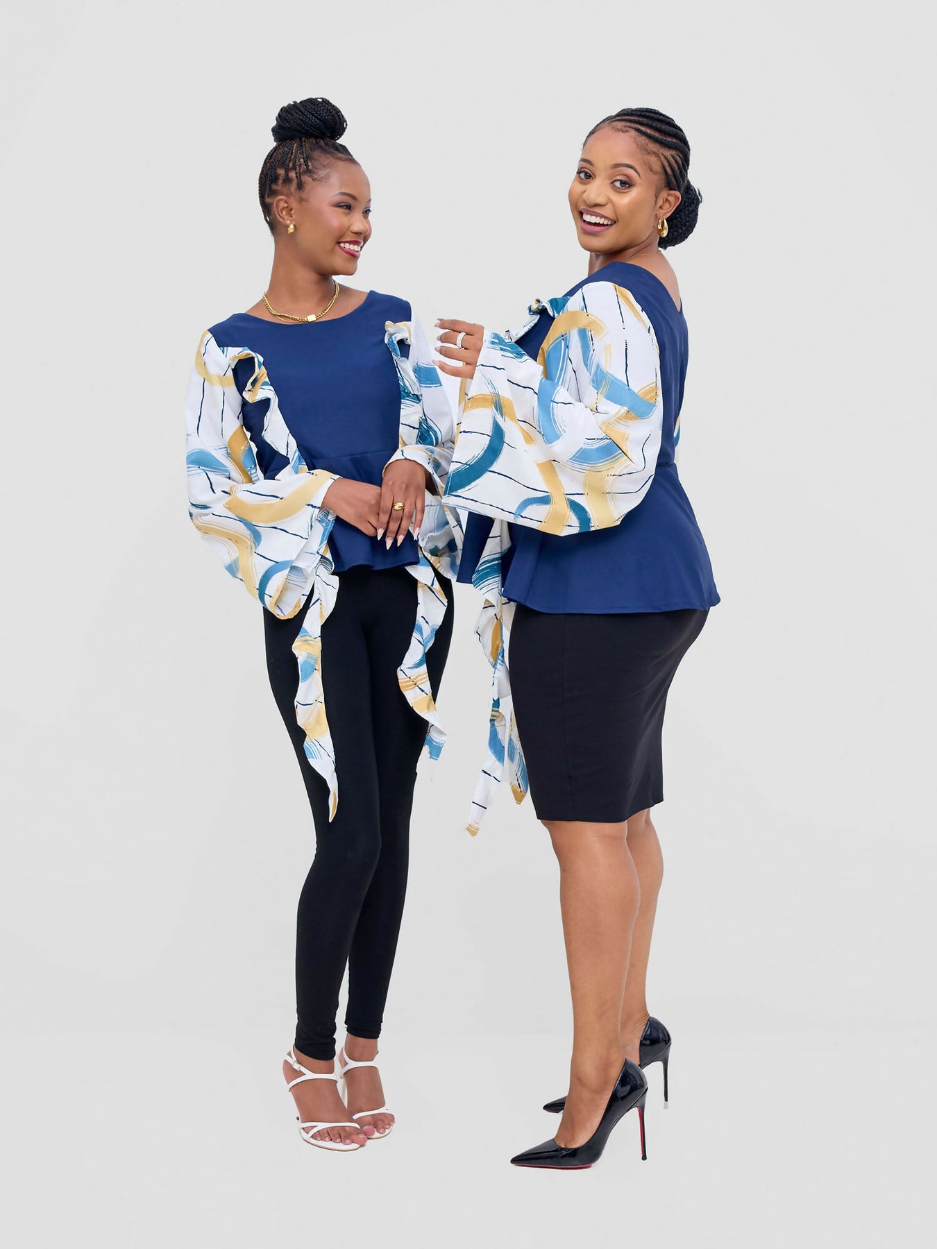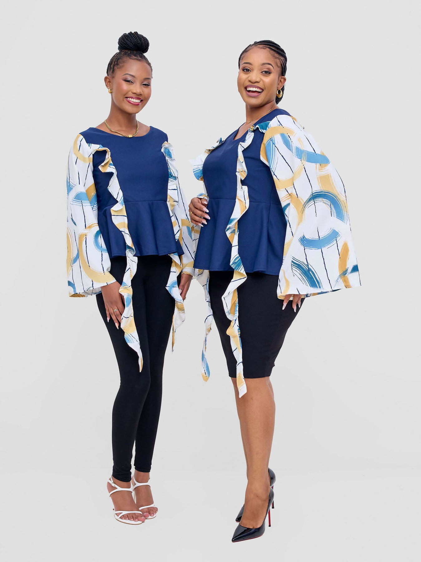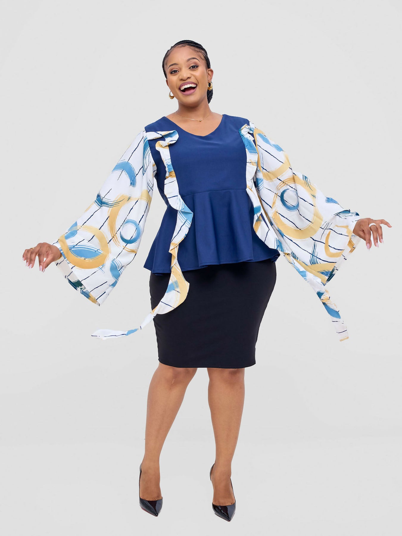 DnD Couture Didi Luxe Blouse Top - Navy Blue - Shopzetu