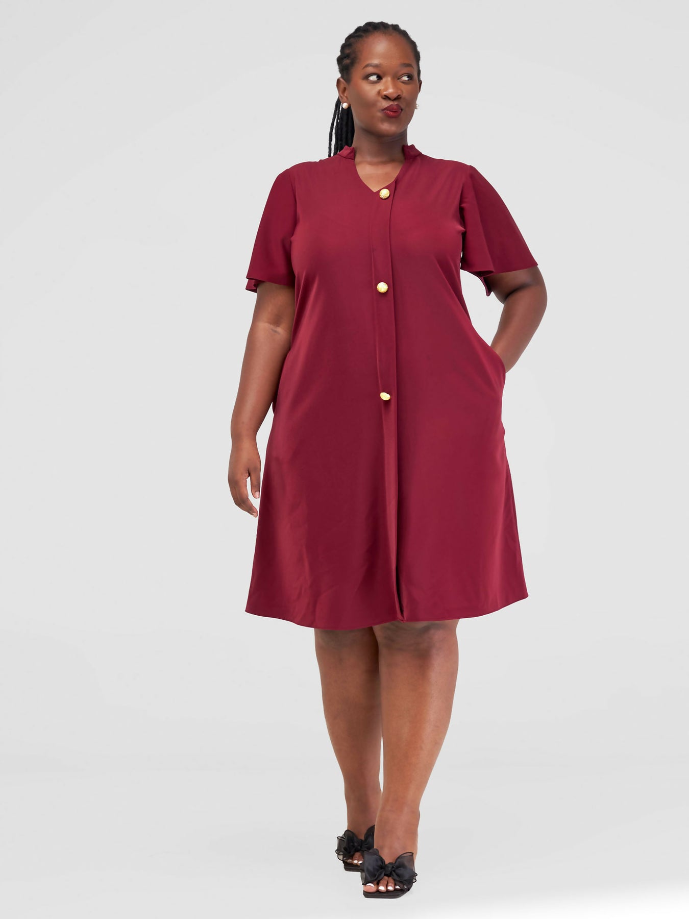 Jolly Fancy Wear Taira Shift Dress - Maroon - Shopzetu