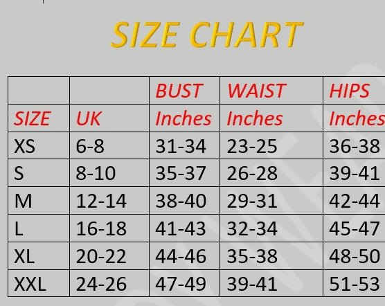 Sizes: S, M, L, XL, XXL & XXXL