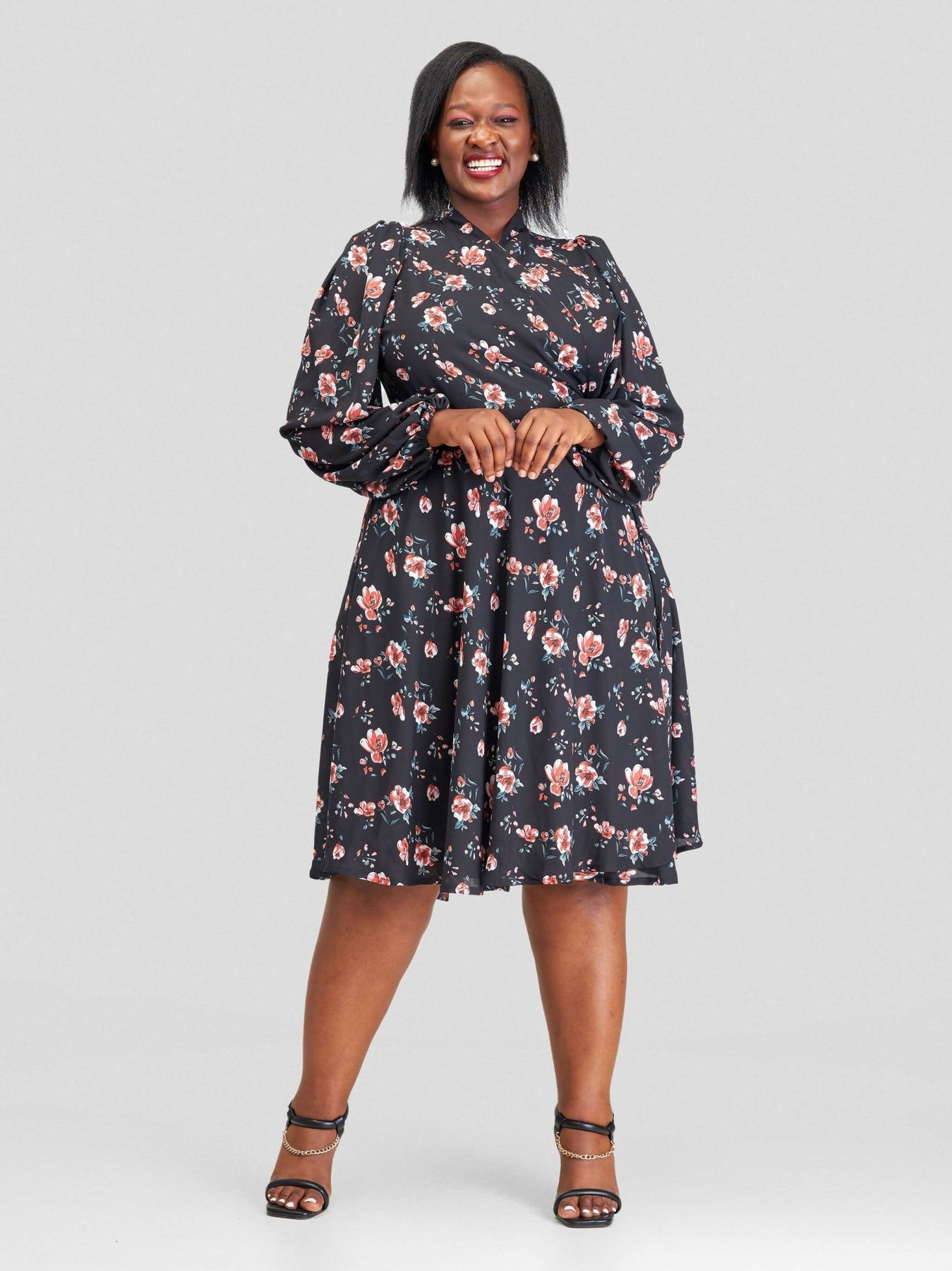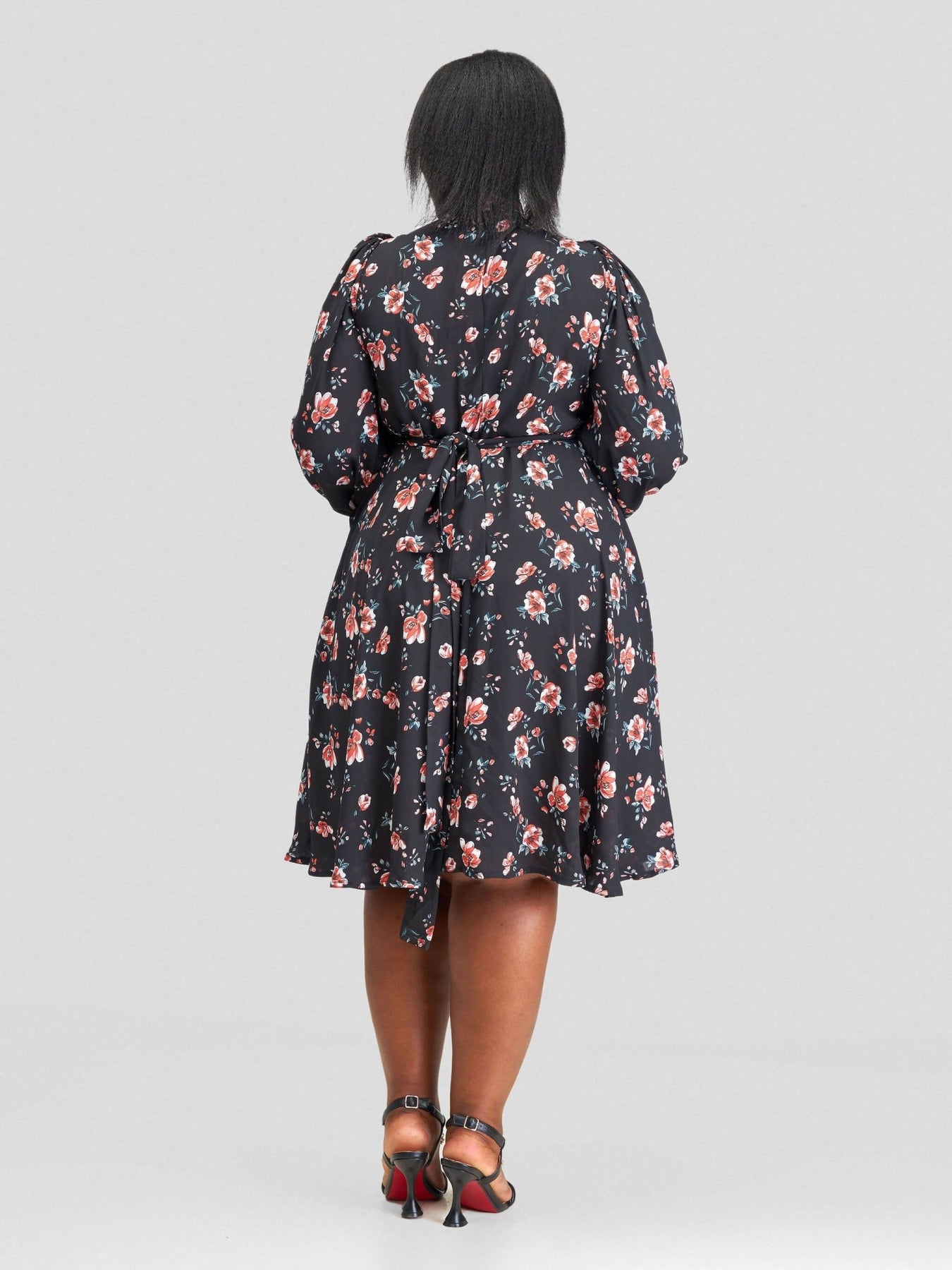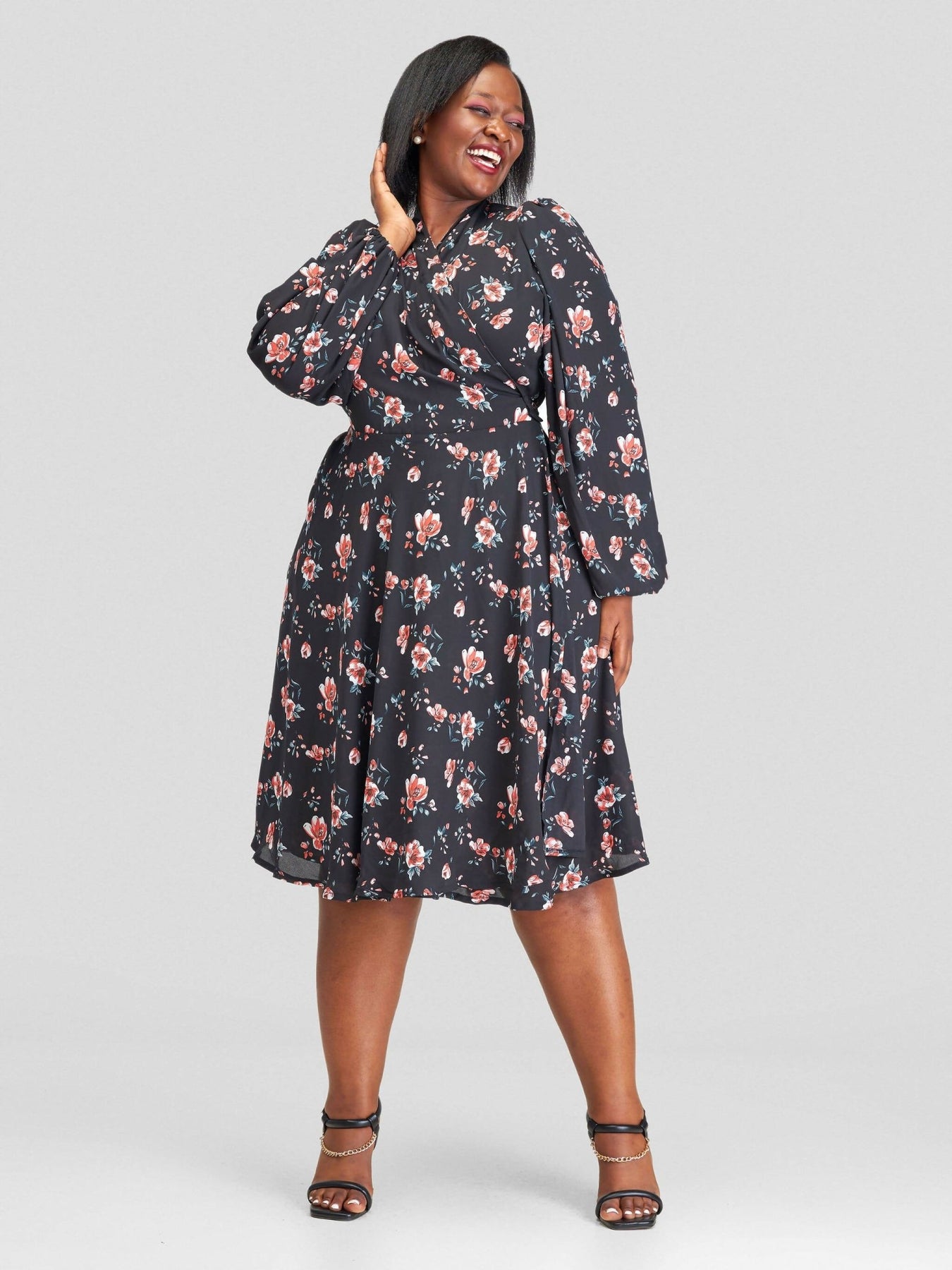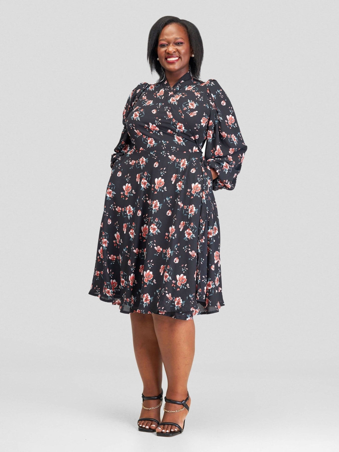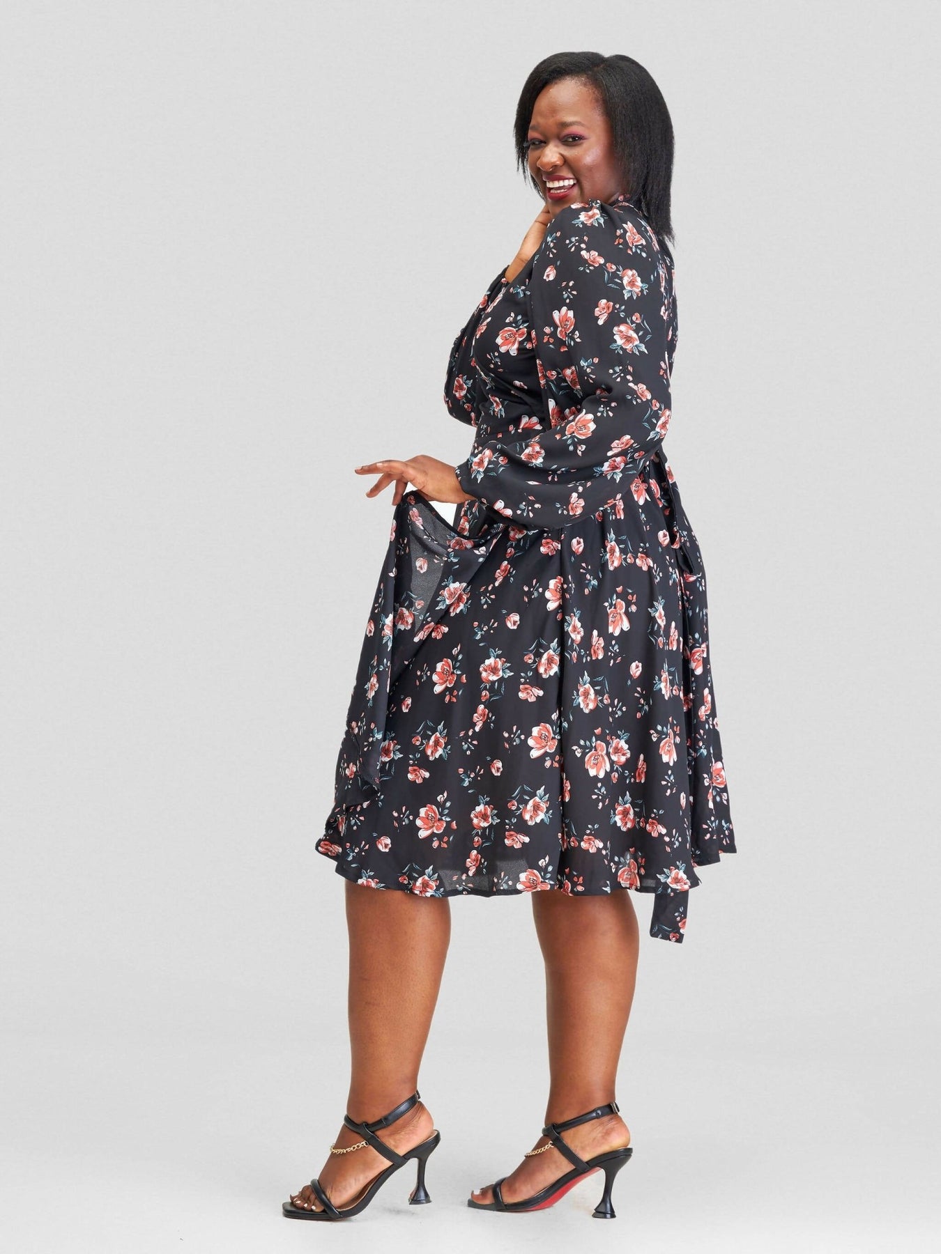 Lucille Couture Elle Floral Wrap Dress - Black - Shopzetu