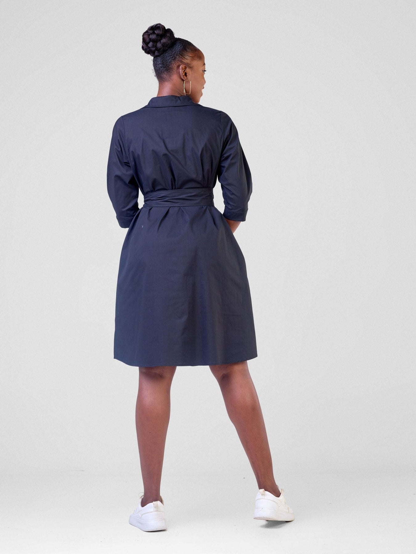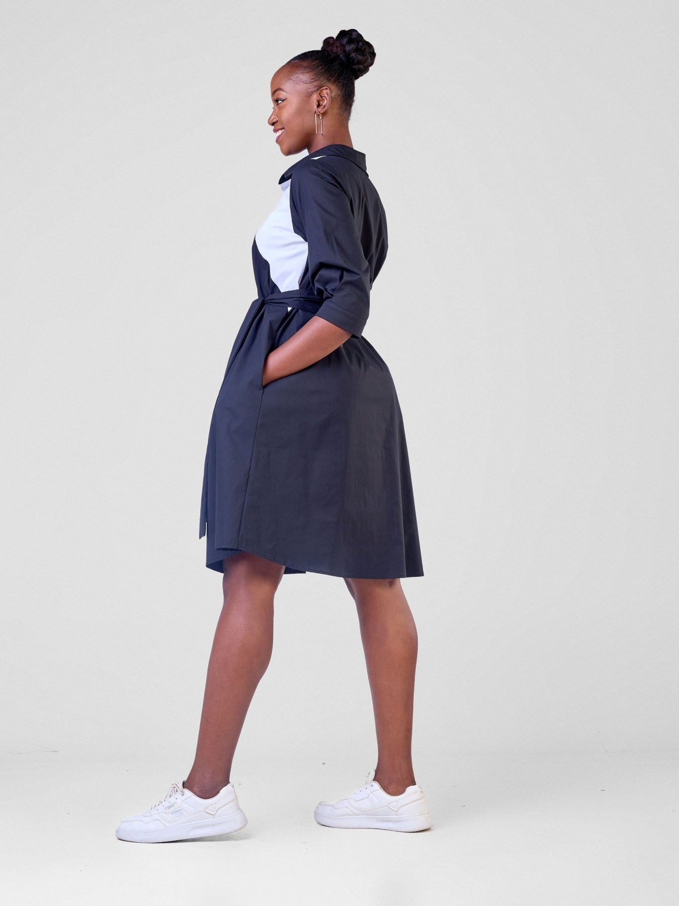 Safari Lira Front Panelled Shirt Dress - Black / White - Shopzetu