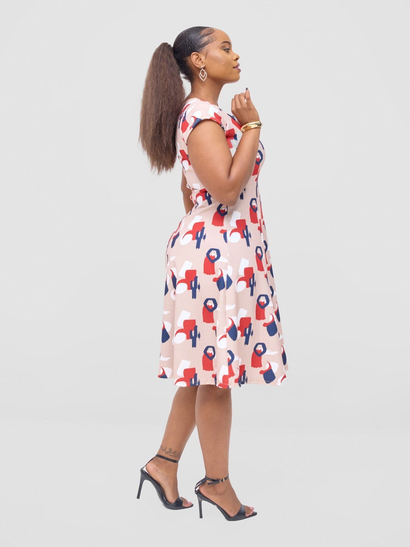 Vivo Basic Escape A-Line Dress - Taupe / Burgundy Esai Print