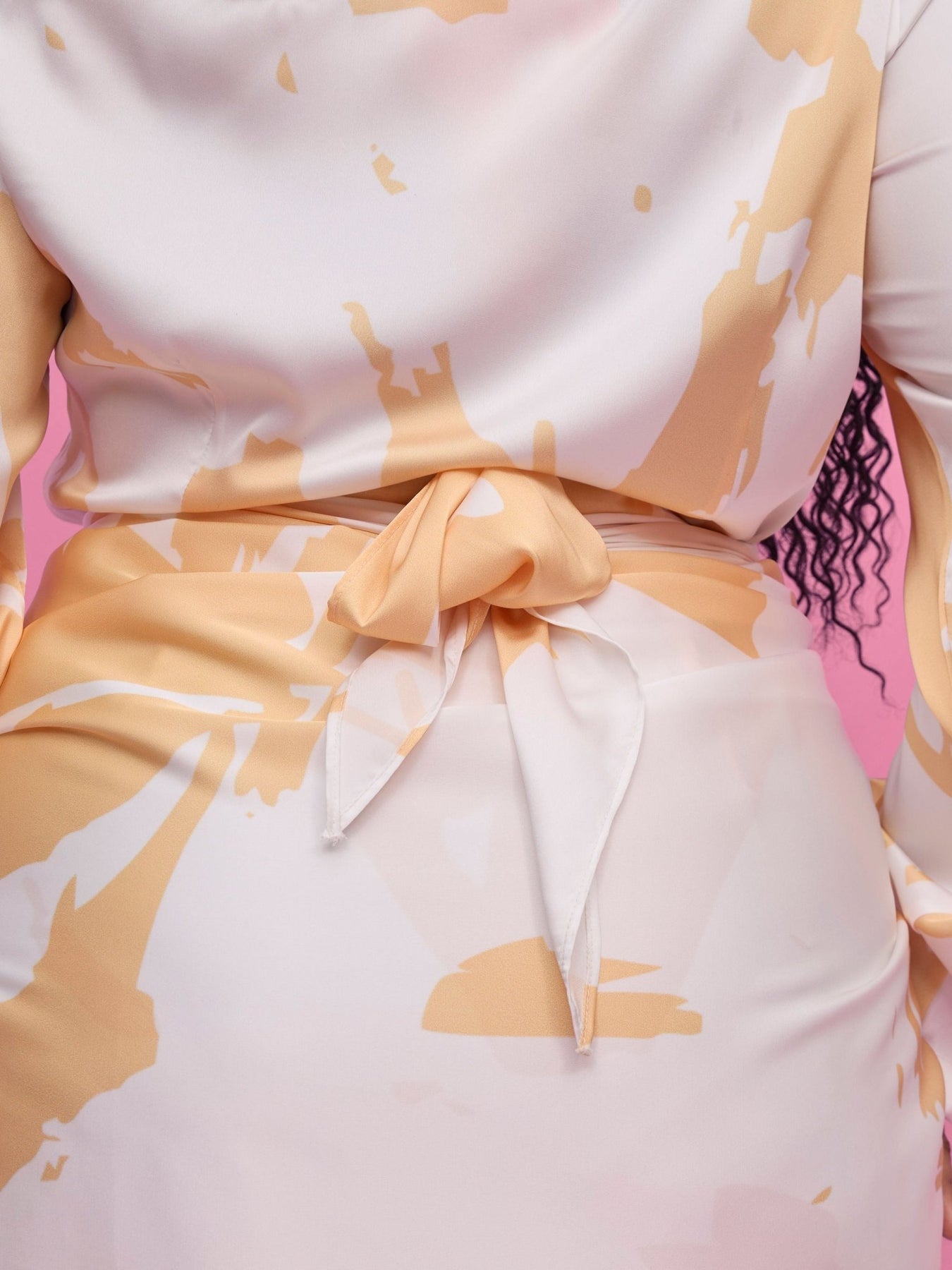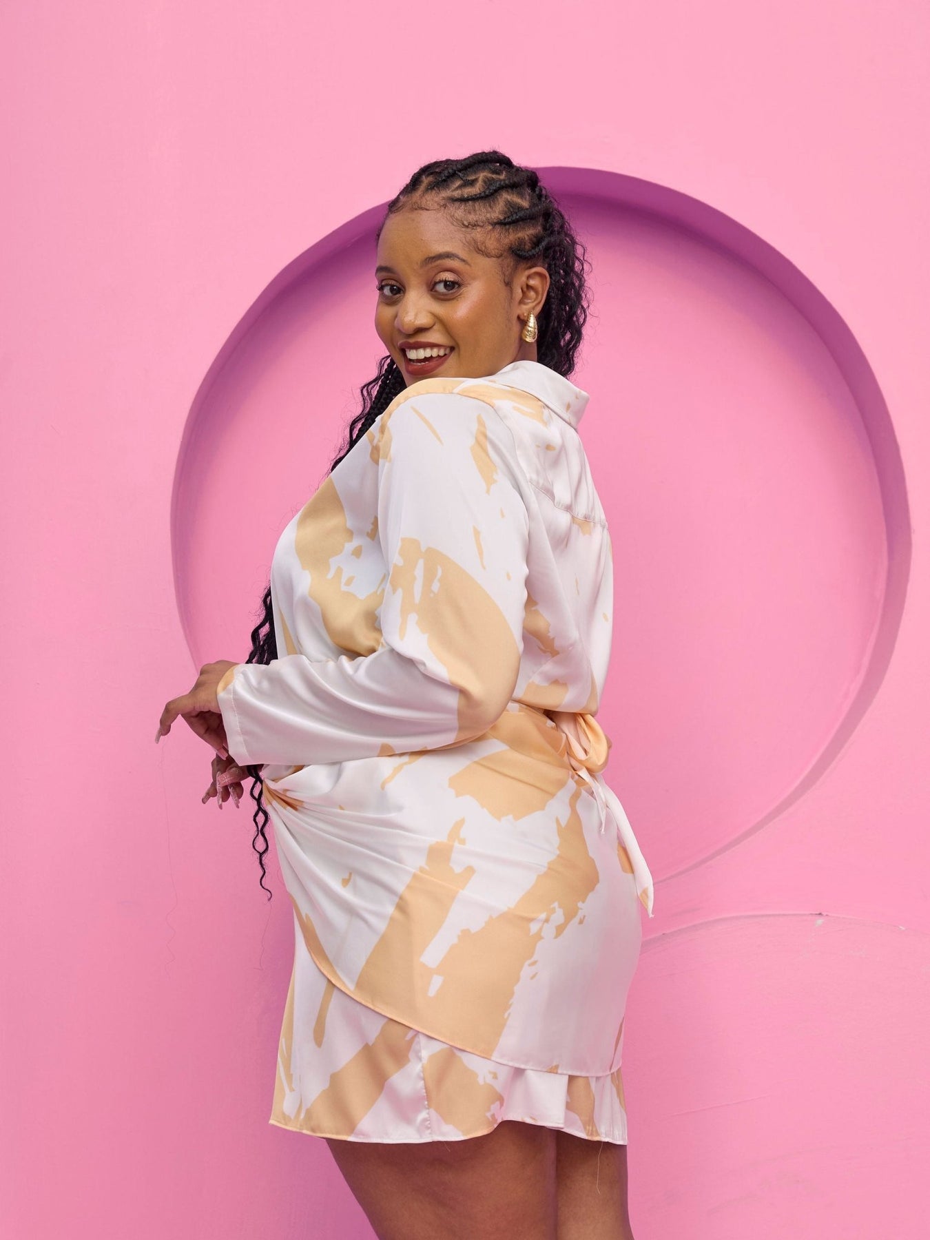 Vivo Beali Wrap Shirt Dress - White / Gold Lea Print - Shopzetu