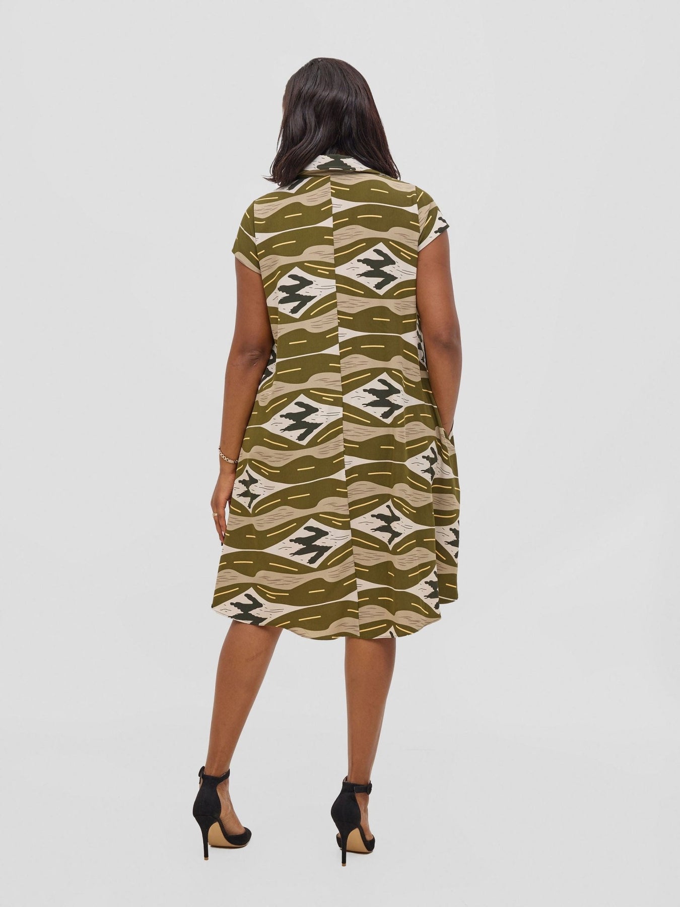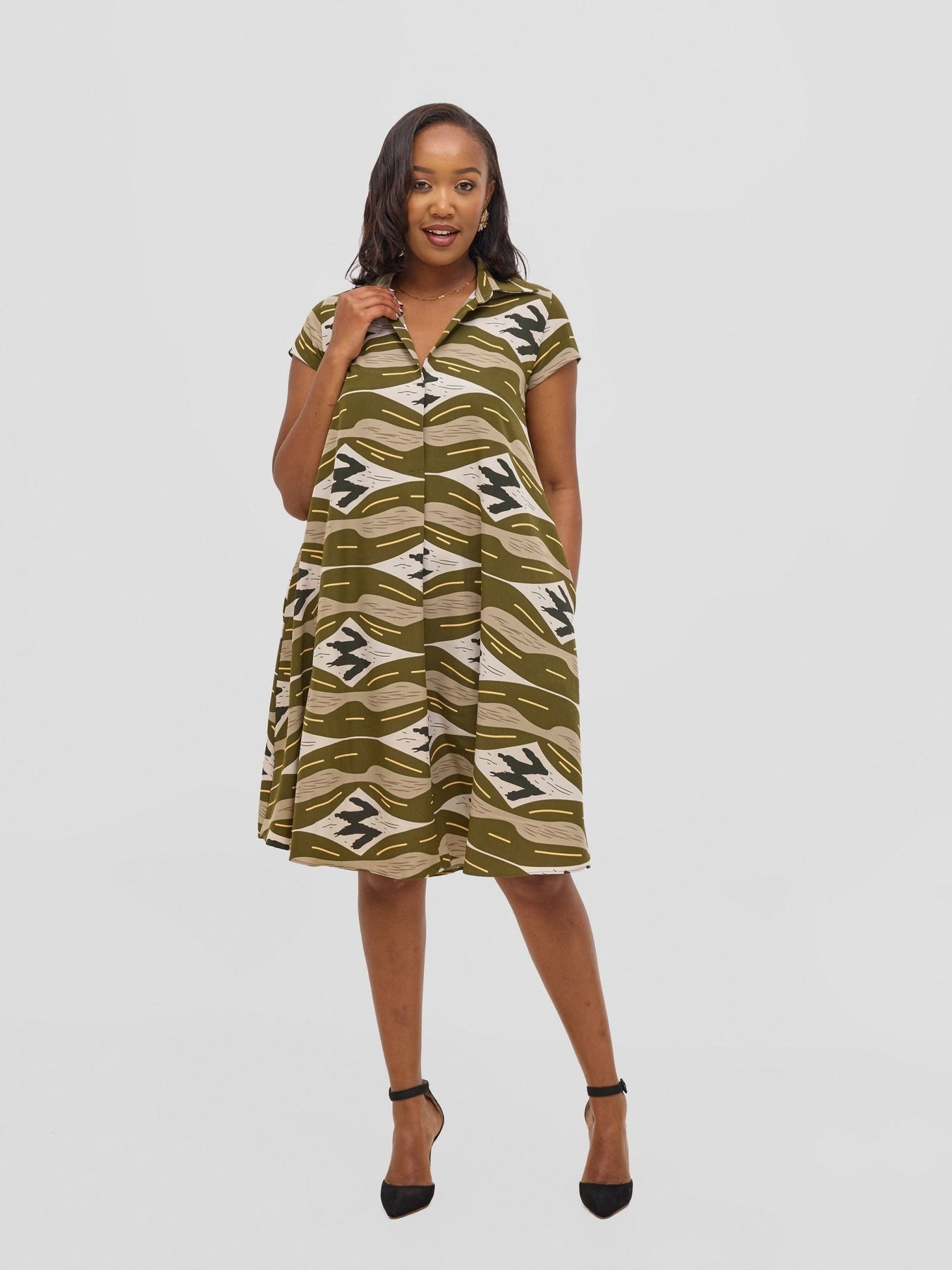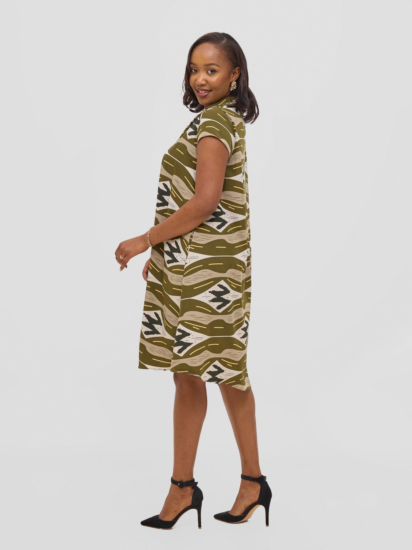 Vivo Yumi Cap Sleeve Dress - Hunters / White Print