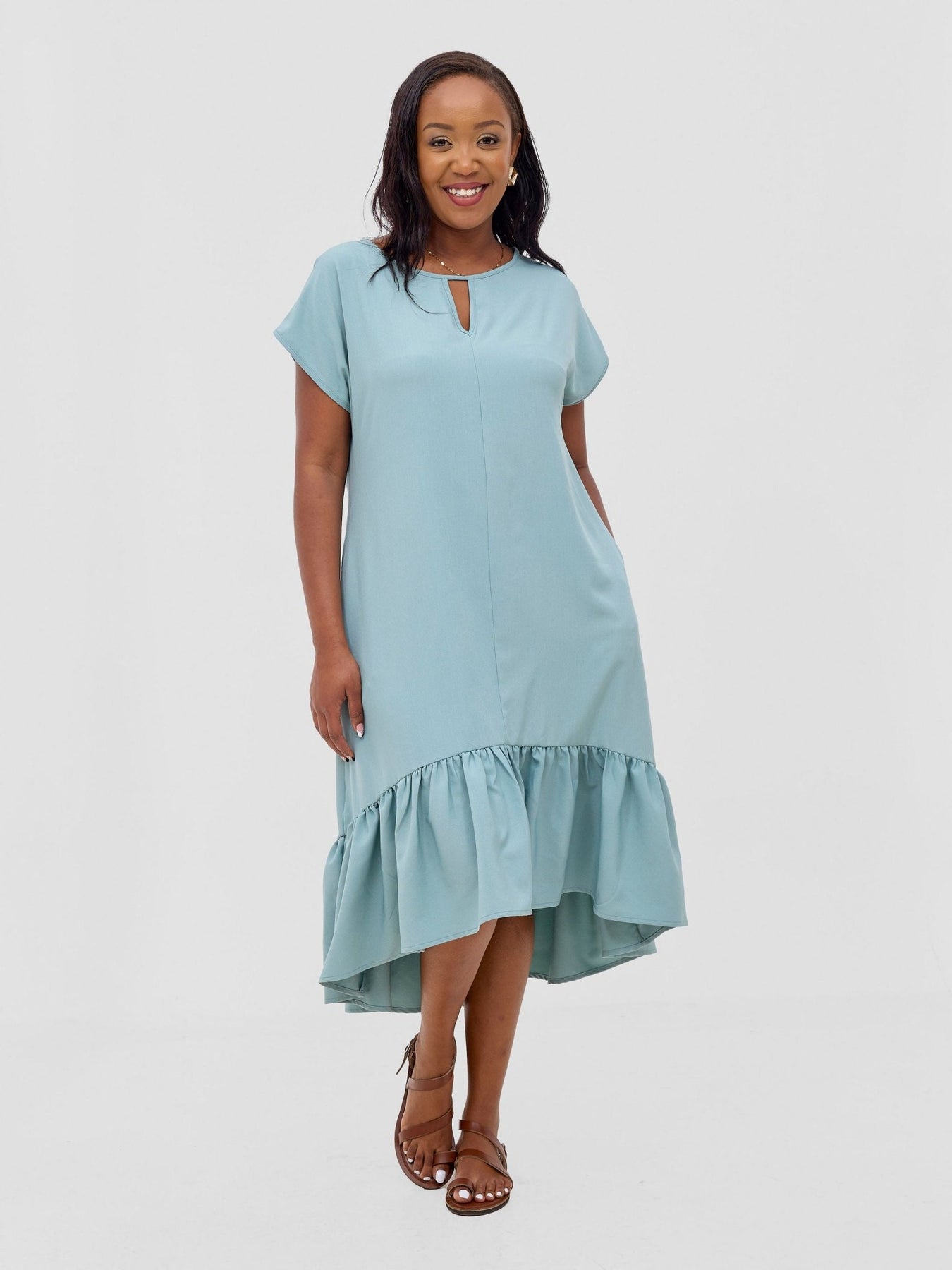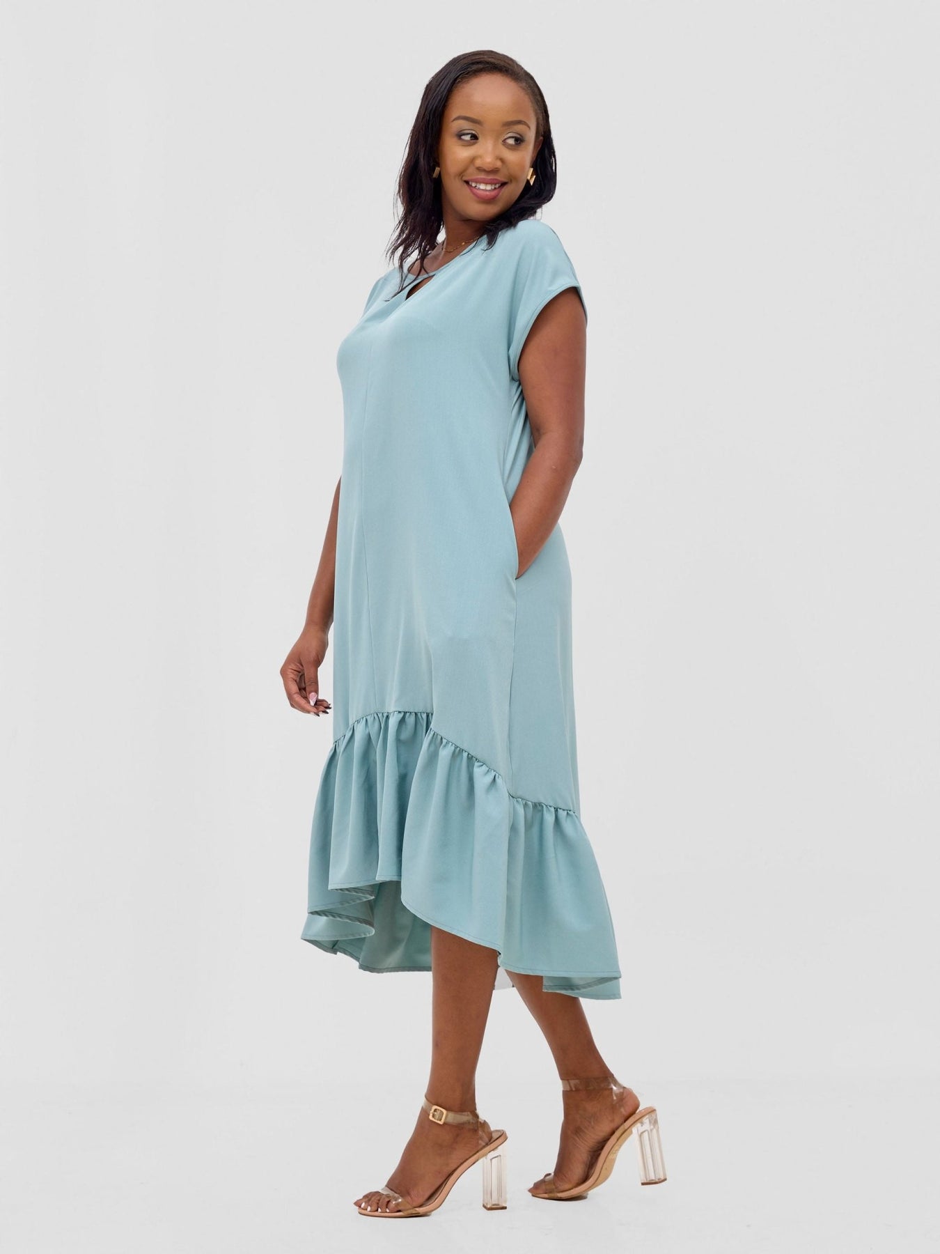 Vivo Zahari Drop Shoulder High Low Dress - Mint - Shopzetu