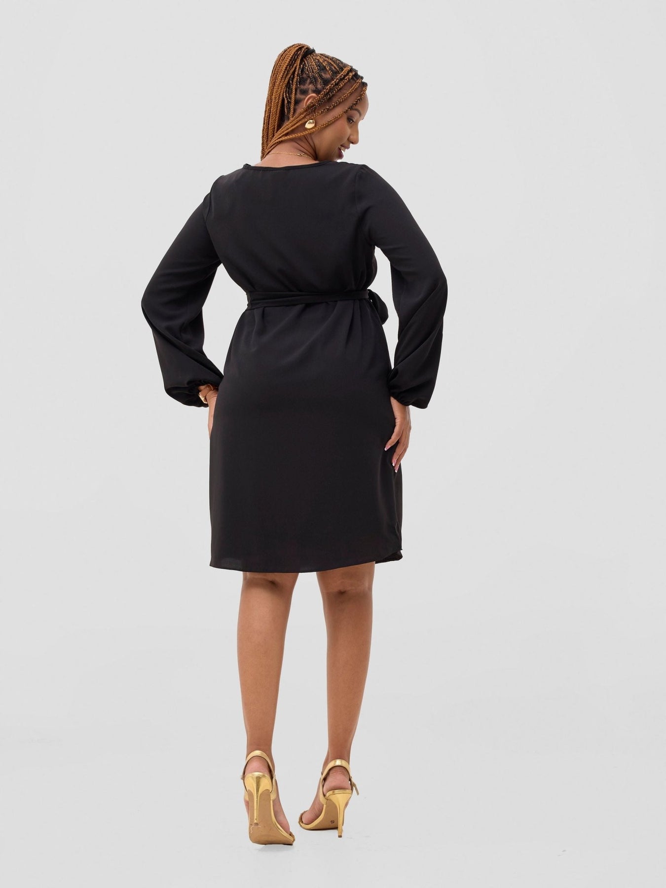 Vivo Zawadi Crepe Shift Dress - Black - Shopzetu