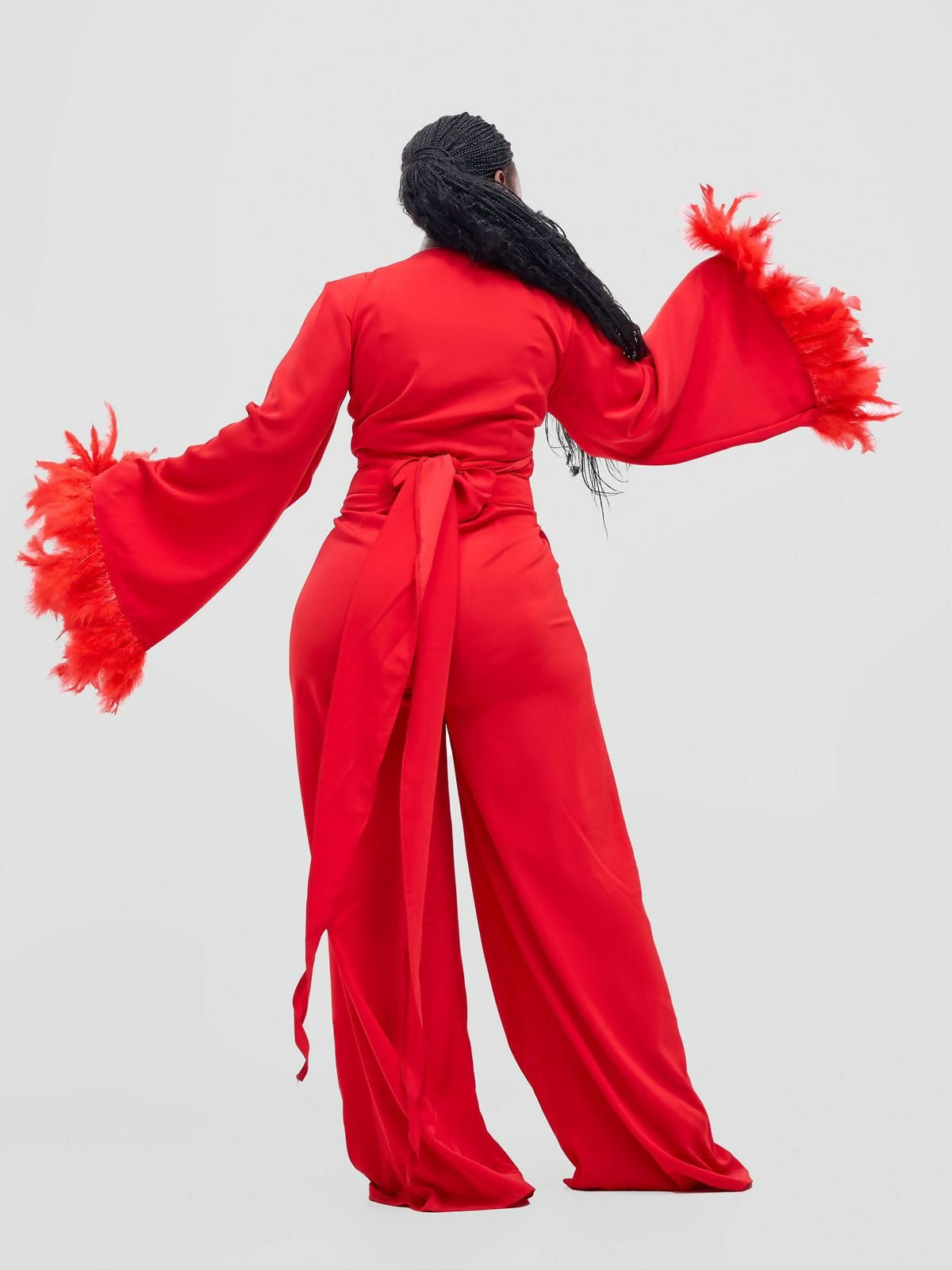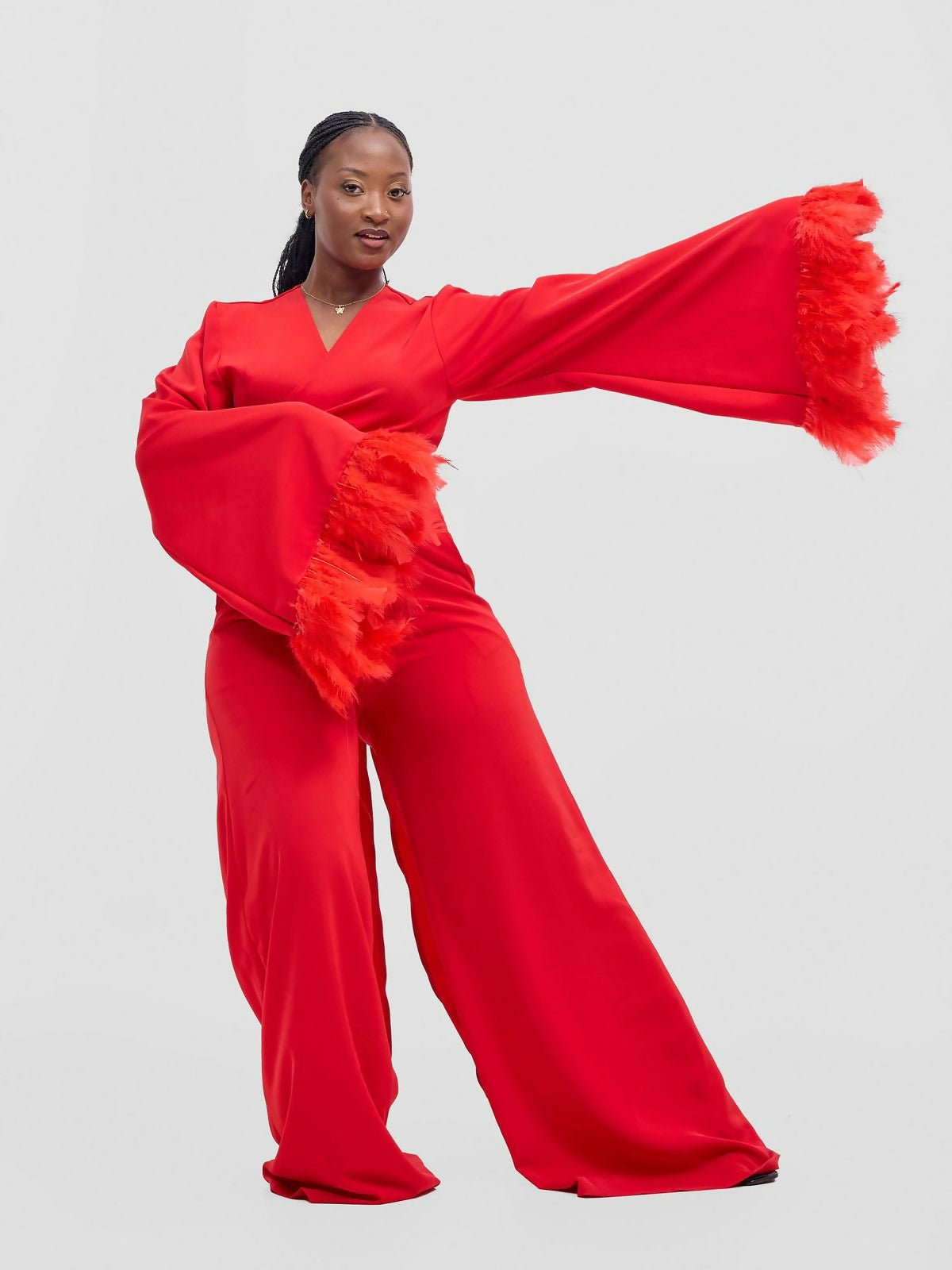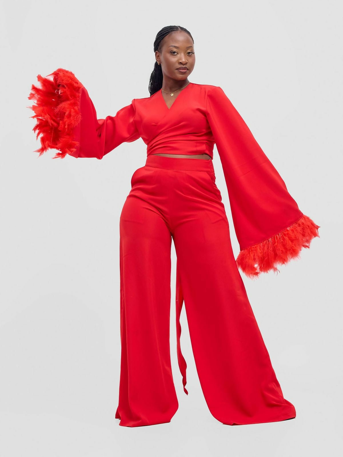 Merli Africa Flamingo Only Zaz Wrap Top - Red - Shopzetu