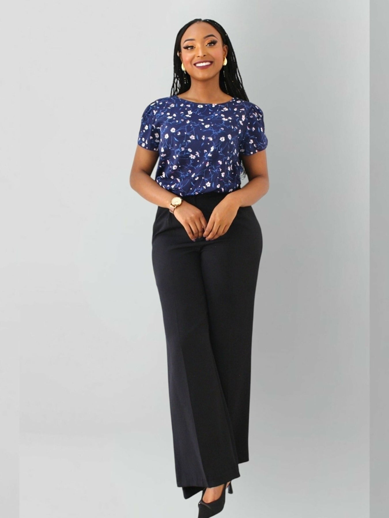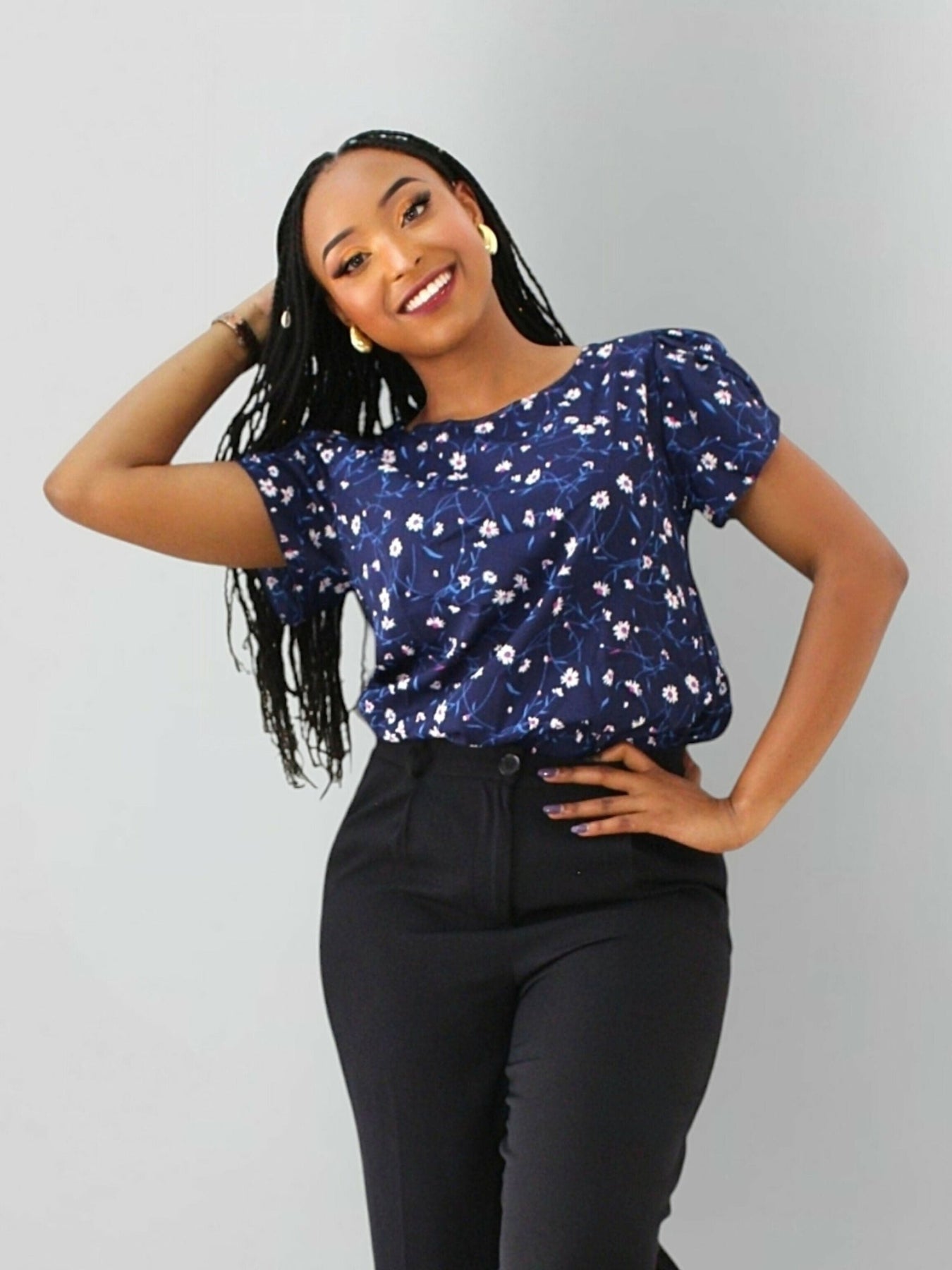 This blue floral blouse is the perfect blend of casual and official style. With a vibrant floral print and a flattering fit, it’s versatile enough to wear to the office or for a laid-back weekend look. Made from soft, breathable fabric, it provides all-day comfort while keeping you stylish. Model wears size S.