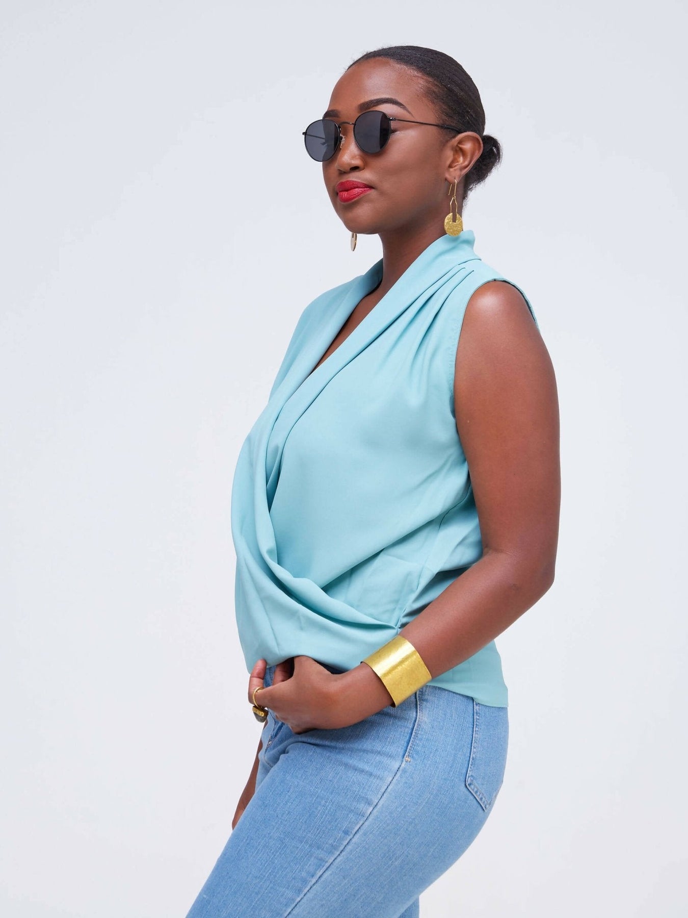 For girly vibes that also mean business, this teal V-neck sleeveless blouse is your new BFF. Lightweight for easy wear and comfort. We love how it transitions from work to weekend with minimal fuss and maximum impact.