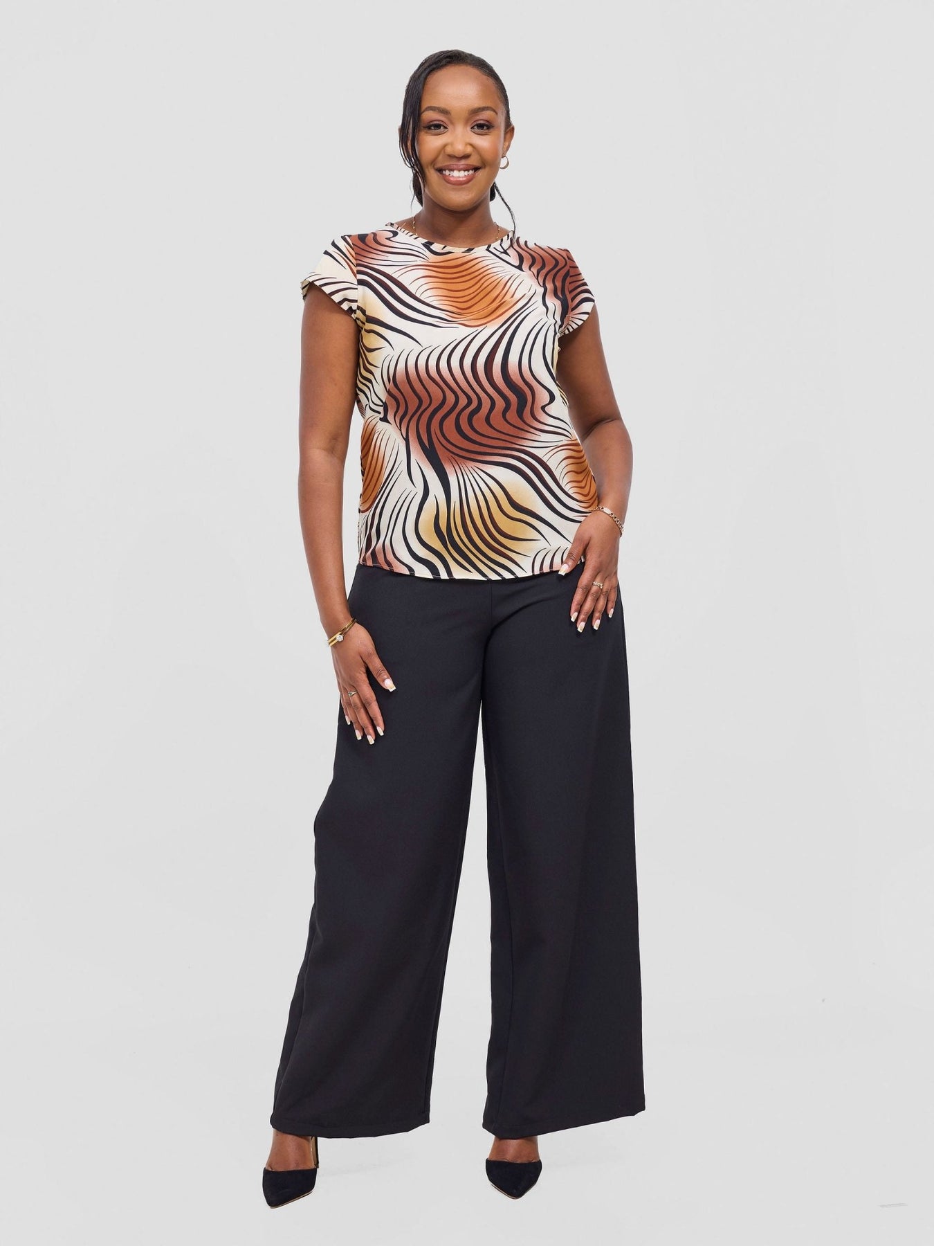 Vivo Basic Crepe Cap Sleeved Top - Cream Jazah Print - Shopzetu