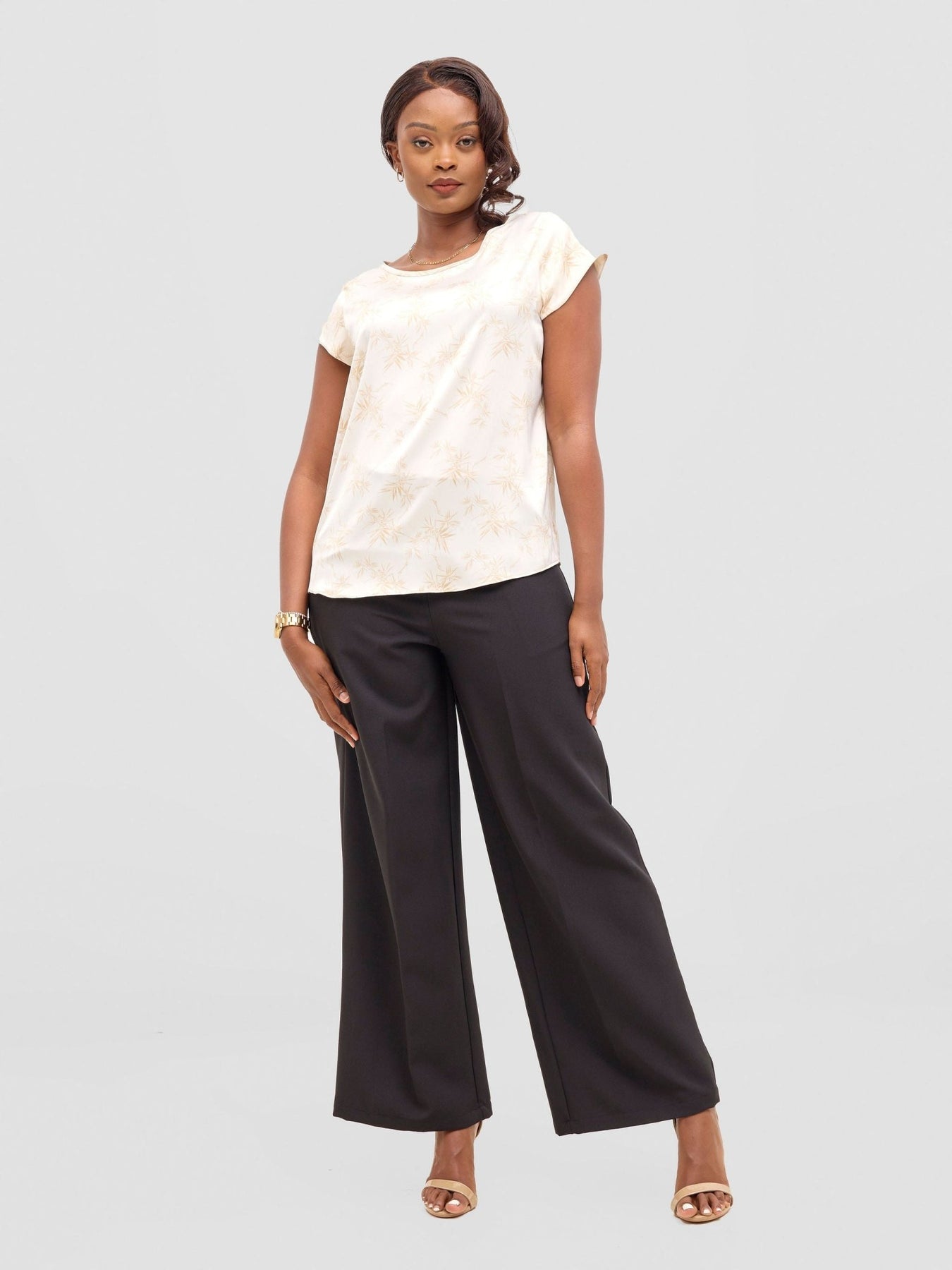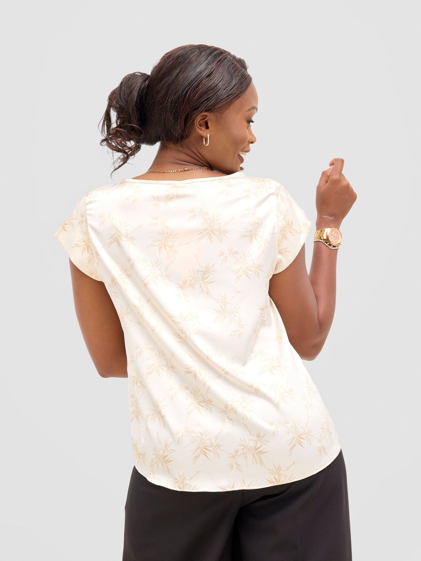 Vivo Basic Satin Cap Sleeve Top - White / Olive Bia Print