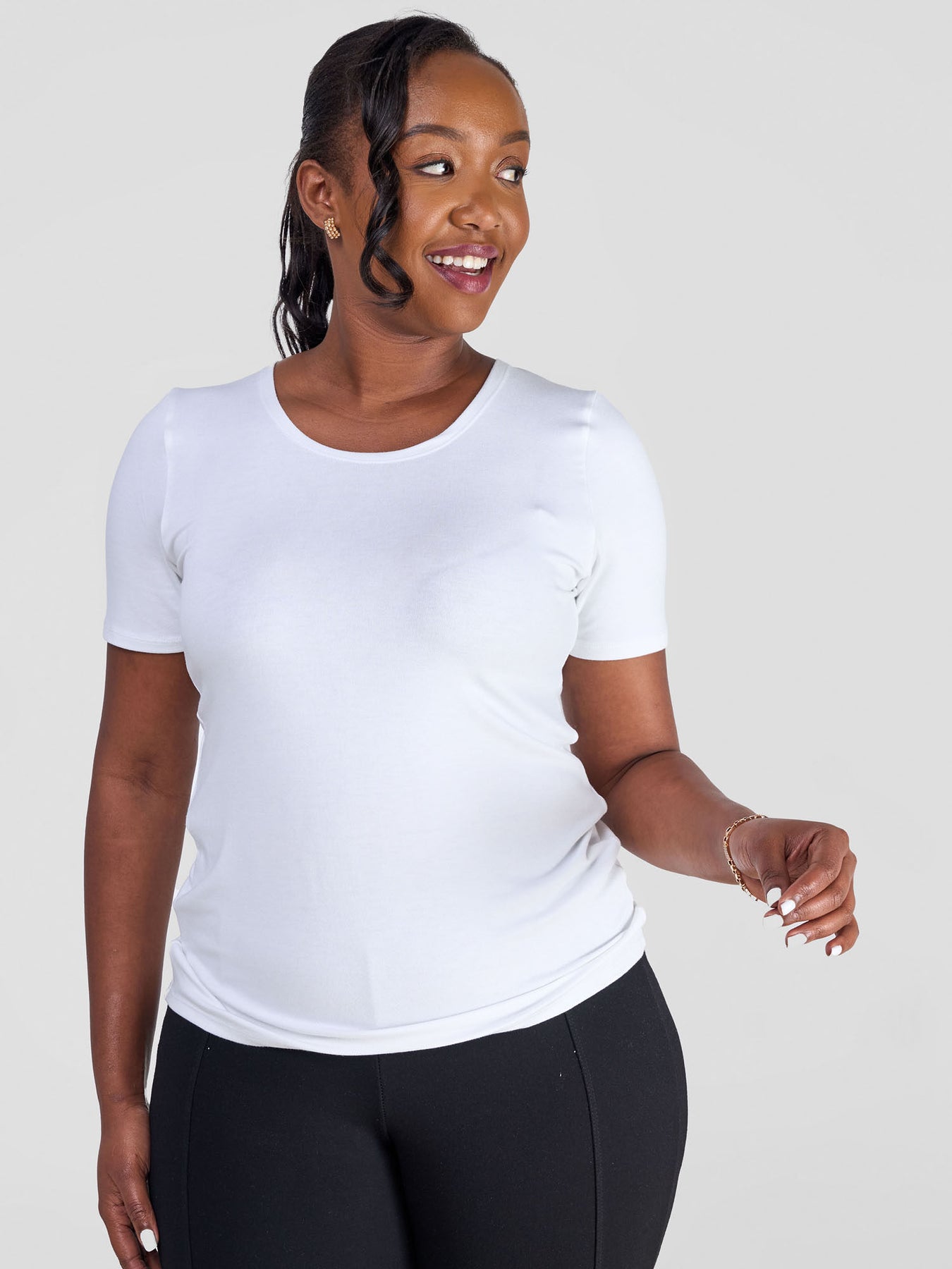 Not your average staple. Cut from breathable jersey, our basic short sleeve top makes for the perfect companion to patterned layers. Pairs perfectly with floaty summery skirts or shorts for warm days spent out to brunch with friends.