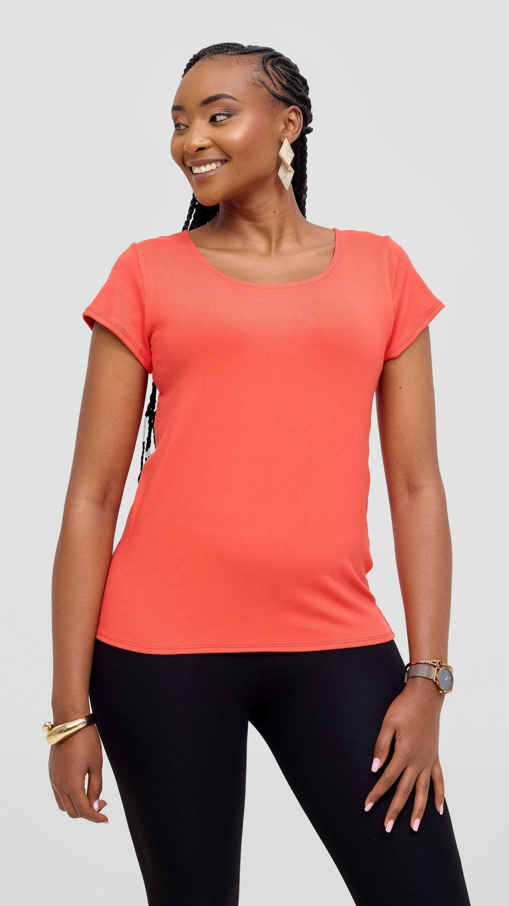 The Vivo Everyday Cap Sleeve Top in orange combines timeless elegance with everyday comfort. Its tailored cap sleeves and rich color create a refined silhouette, perfect for elevating your daily wardrobe with a touch of sophistication. Ideal for both work and leisure, this top offers a seamless blend of style and ease.