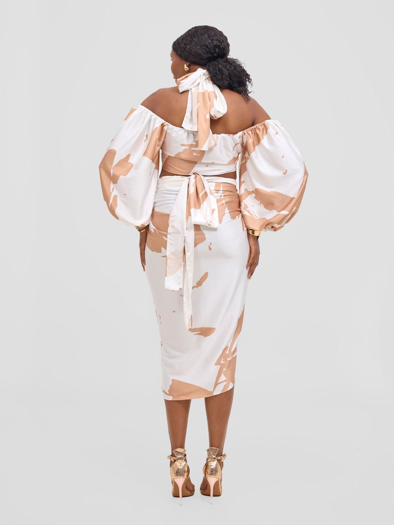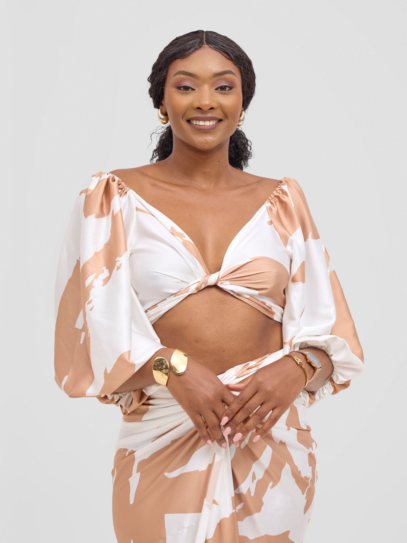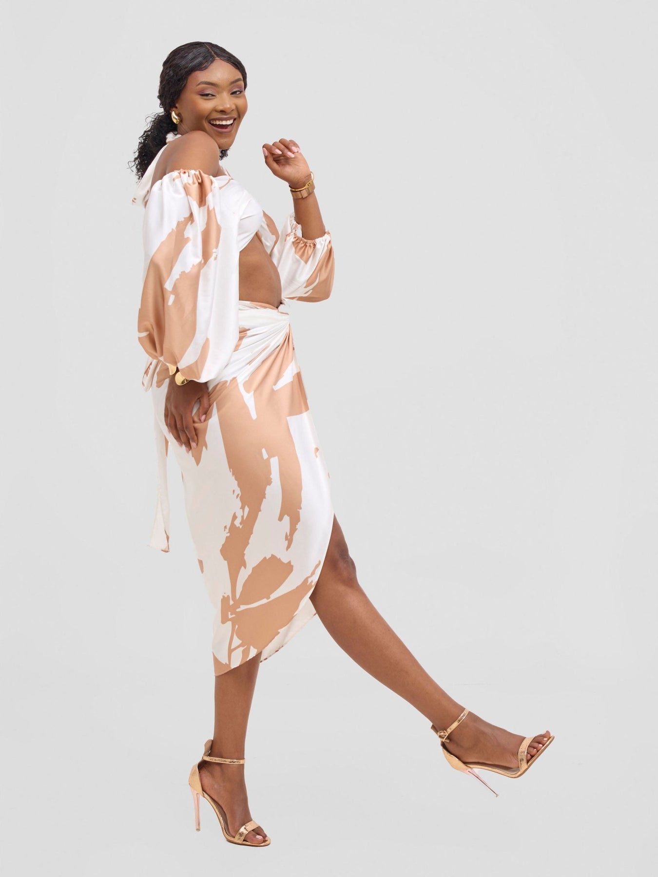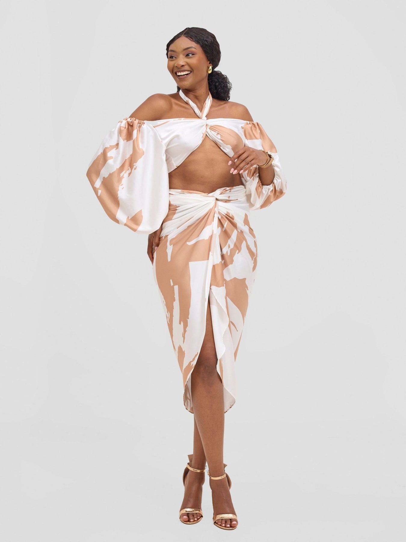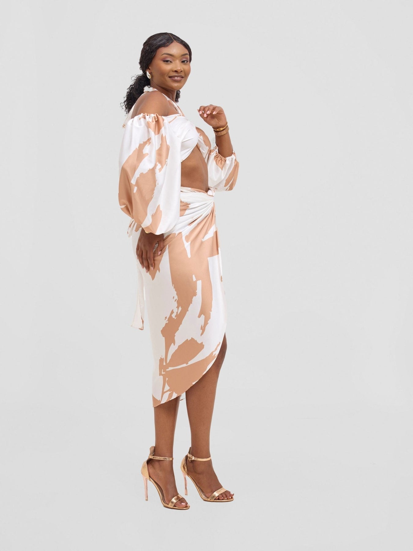 Vivo Beali Two Way Wrap Top - White / Taupe Lea Print - Shopzetu